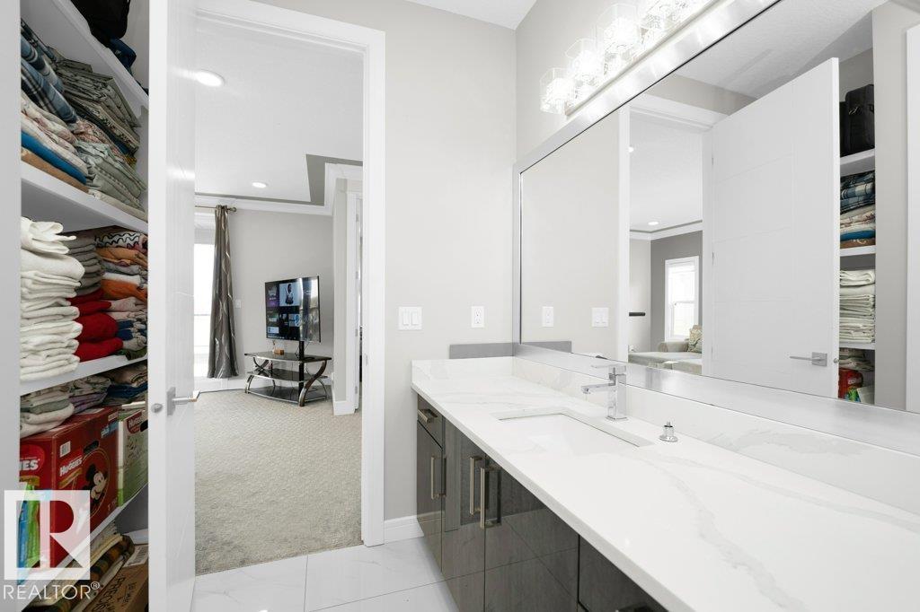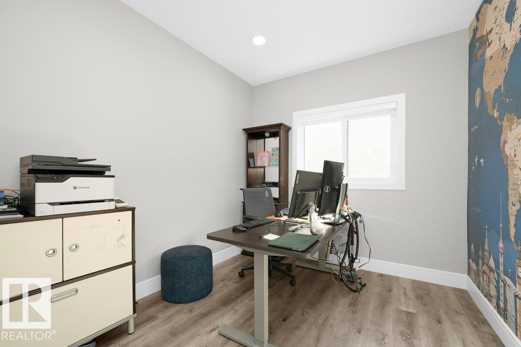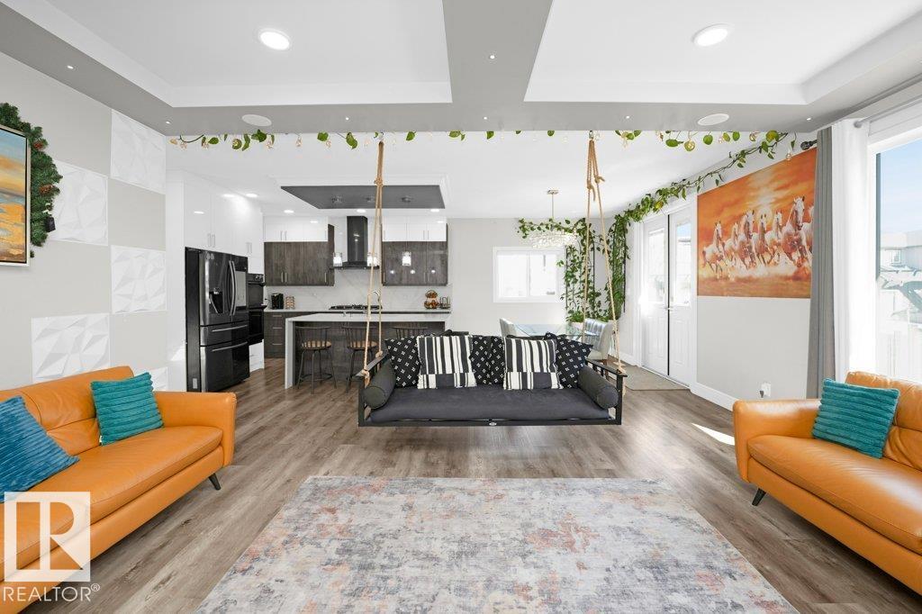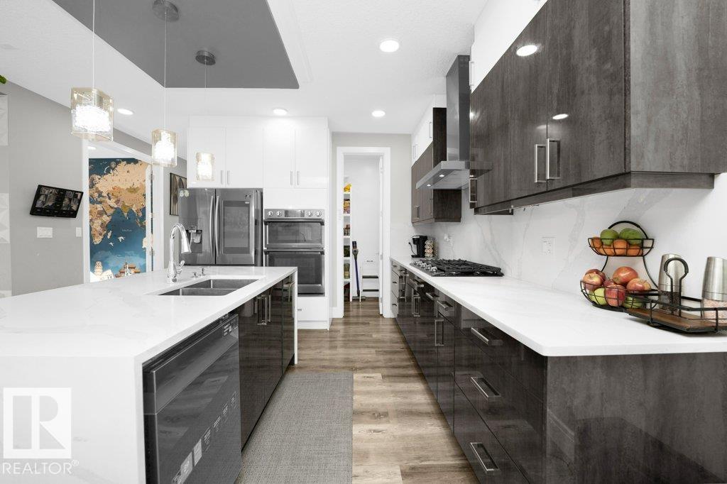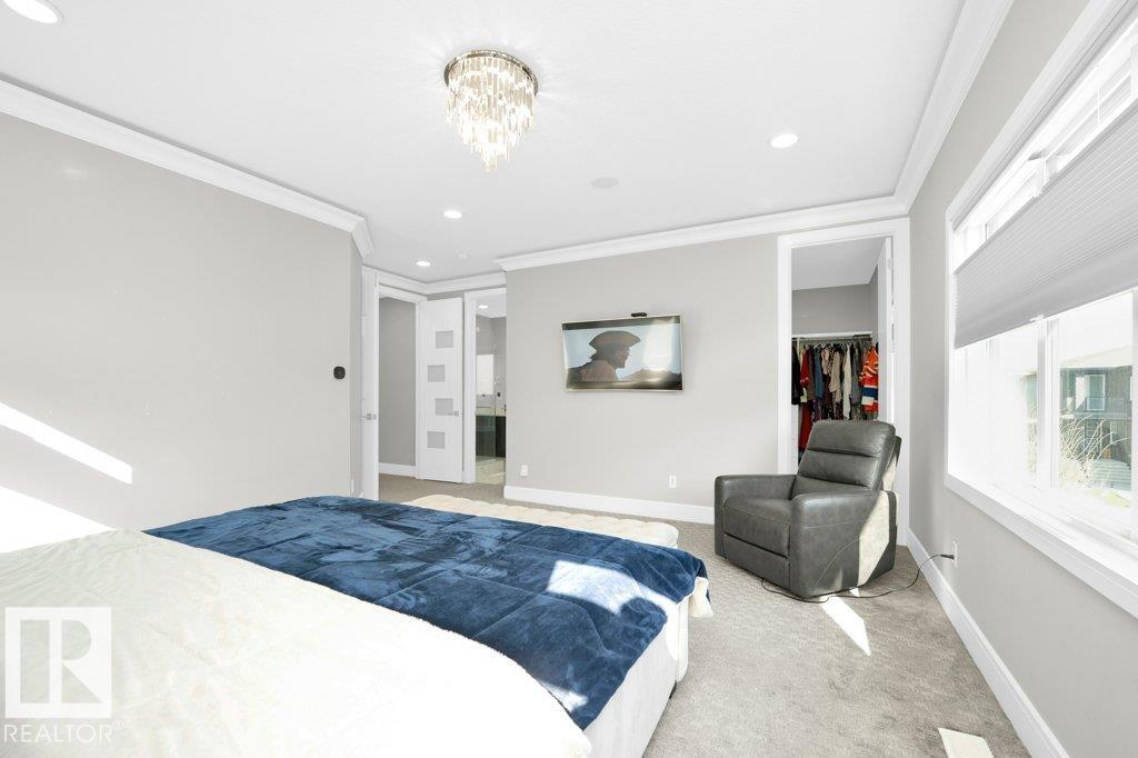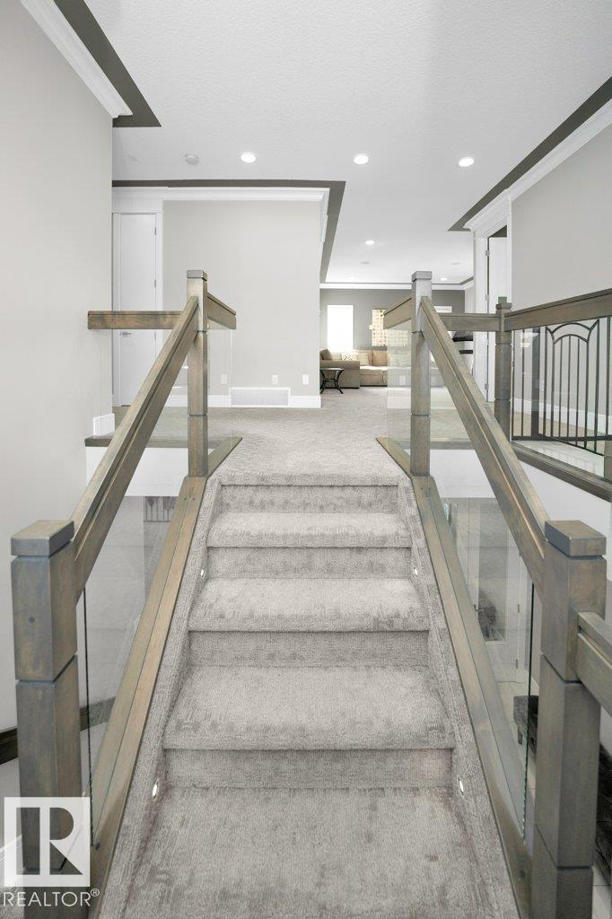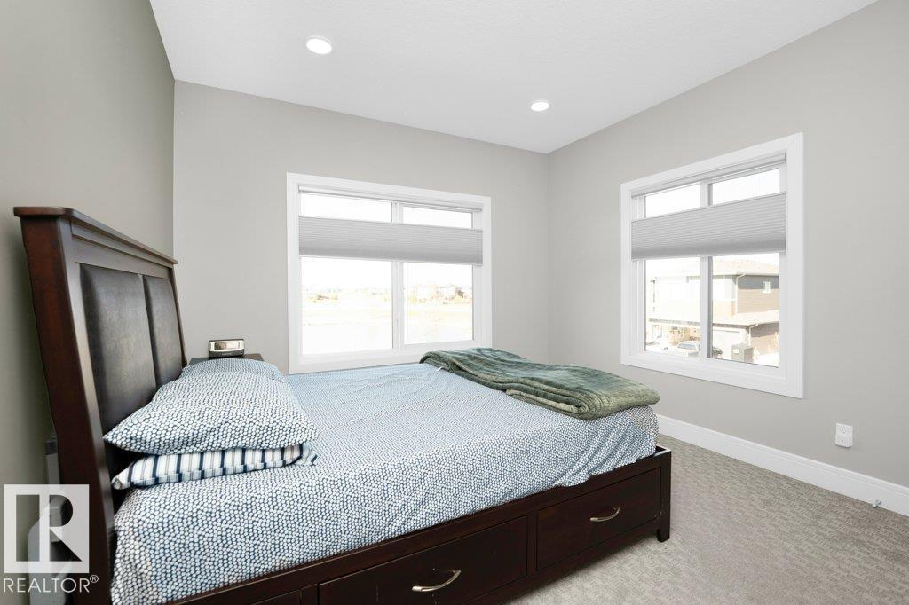 LUXURY, COMFORT, VASTU Harmony come together beautifully on a prized corner lot in Beaumont. Step through the grand 8-ft DOUBLE DOORS into bright, airy spaces framed by 9-ft ceilings & an inviting open layout. The main floor offers a cozy office, a welcoming living room with FIREPLACE & swing, & a CHEF's kitchen designed for gathering?complete with GAS cooktop, waterfall granite island, premium cabinetry, & walk-in pantry. Upstairs, unwind with PEACEFUL LAKEVIEW from the BALCONY & retreat to a serene primary suite featuring a spa-inspired 5-pc ensuite, jetted tub, shower panel, & meditation nook. A dedicated Laundry room adds everyday ease. The HEATED TRIPLE Garage includes a 220V EV charger, hot/cold sink & floor drain. The FINISHED BASEMENT extends your living space with a Party room, Wet Bar, Bedroom, Bath. Outdoors, enjoy LOW-Maintenance living with Artificial Grass, concrete pad, Built-in Deck with Gasline & custom GAZEBO. Enhanced with A/C, Water Softener, ceiling speakers & CCTV. Welcome to HOME !