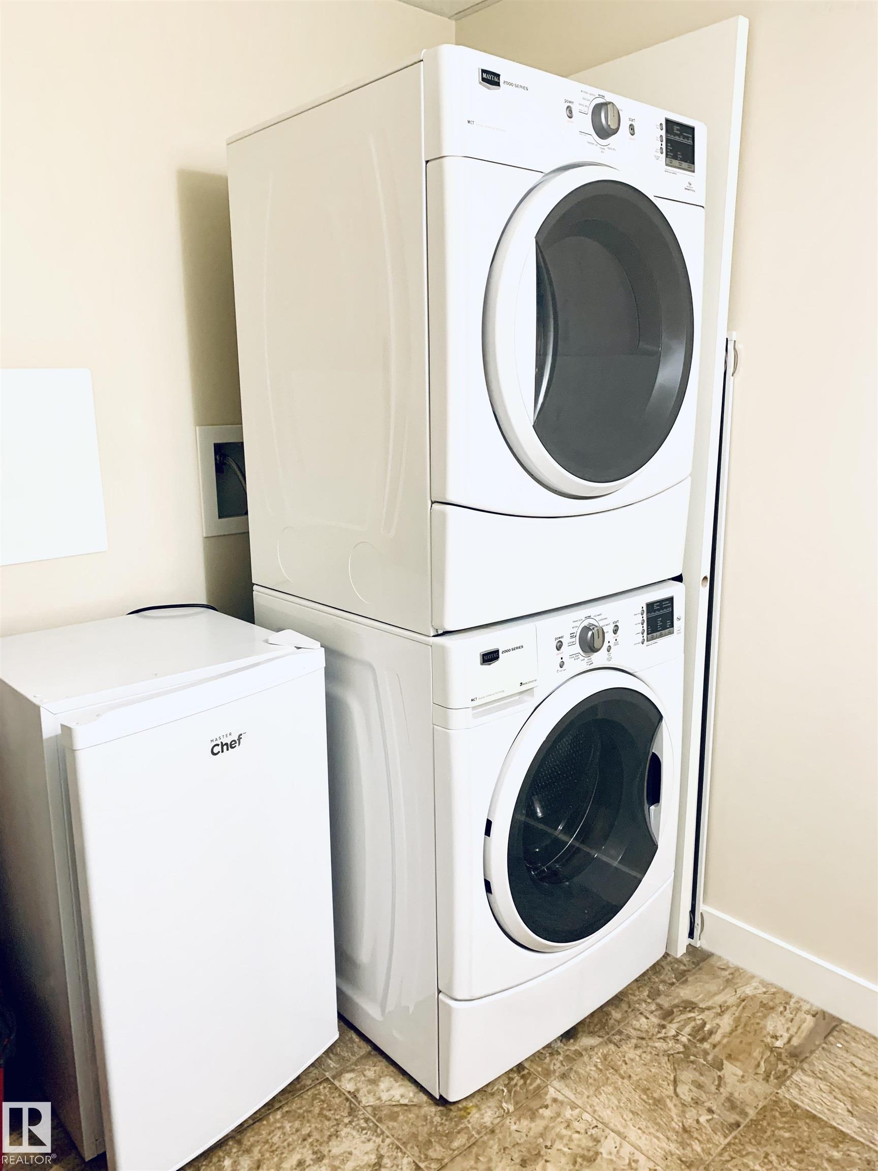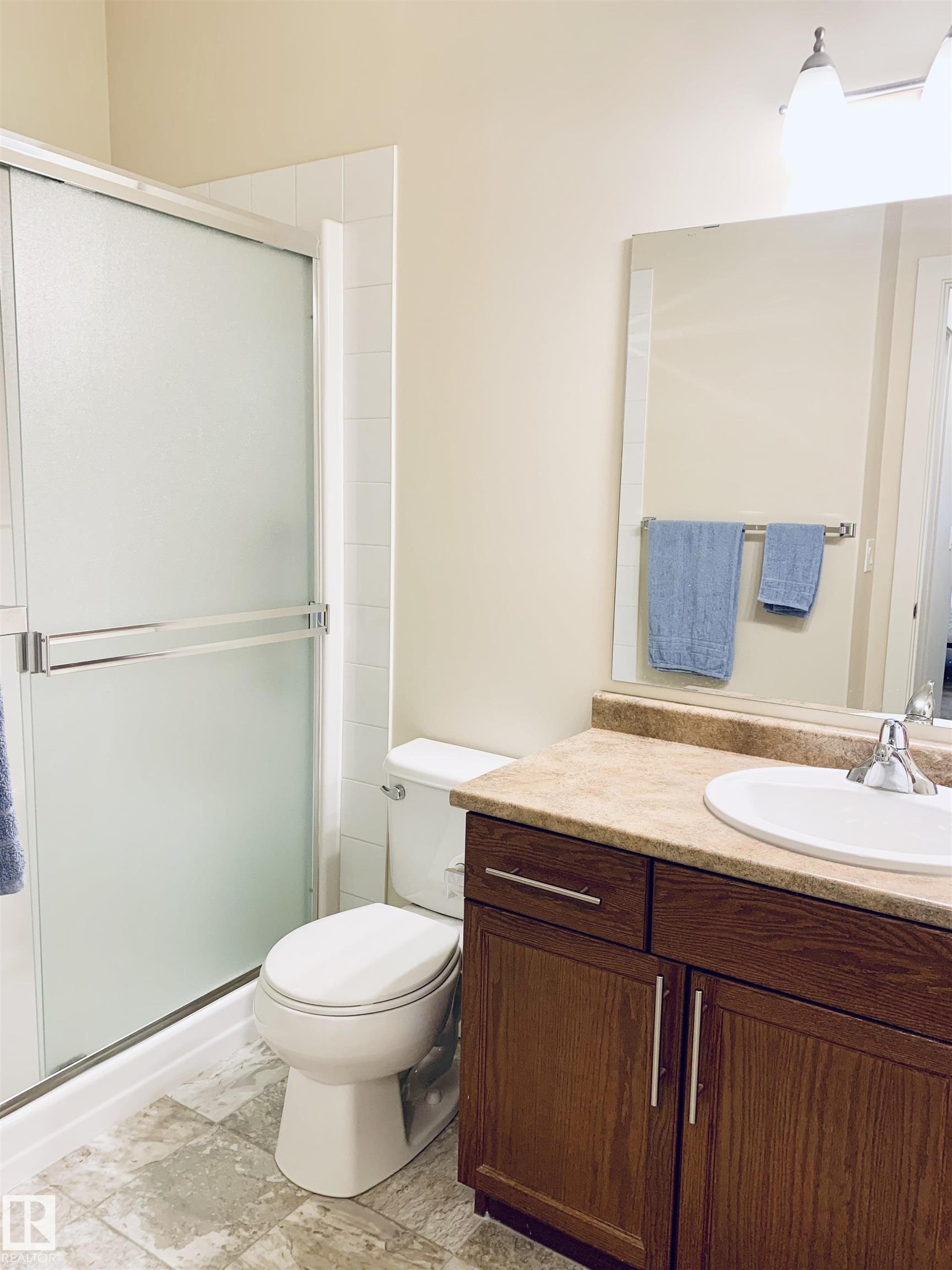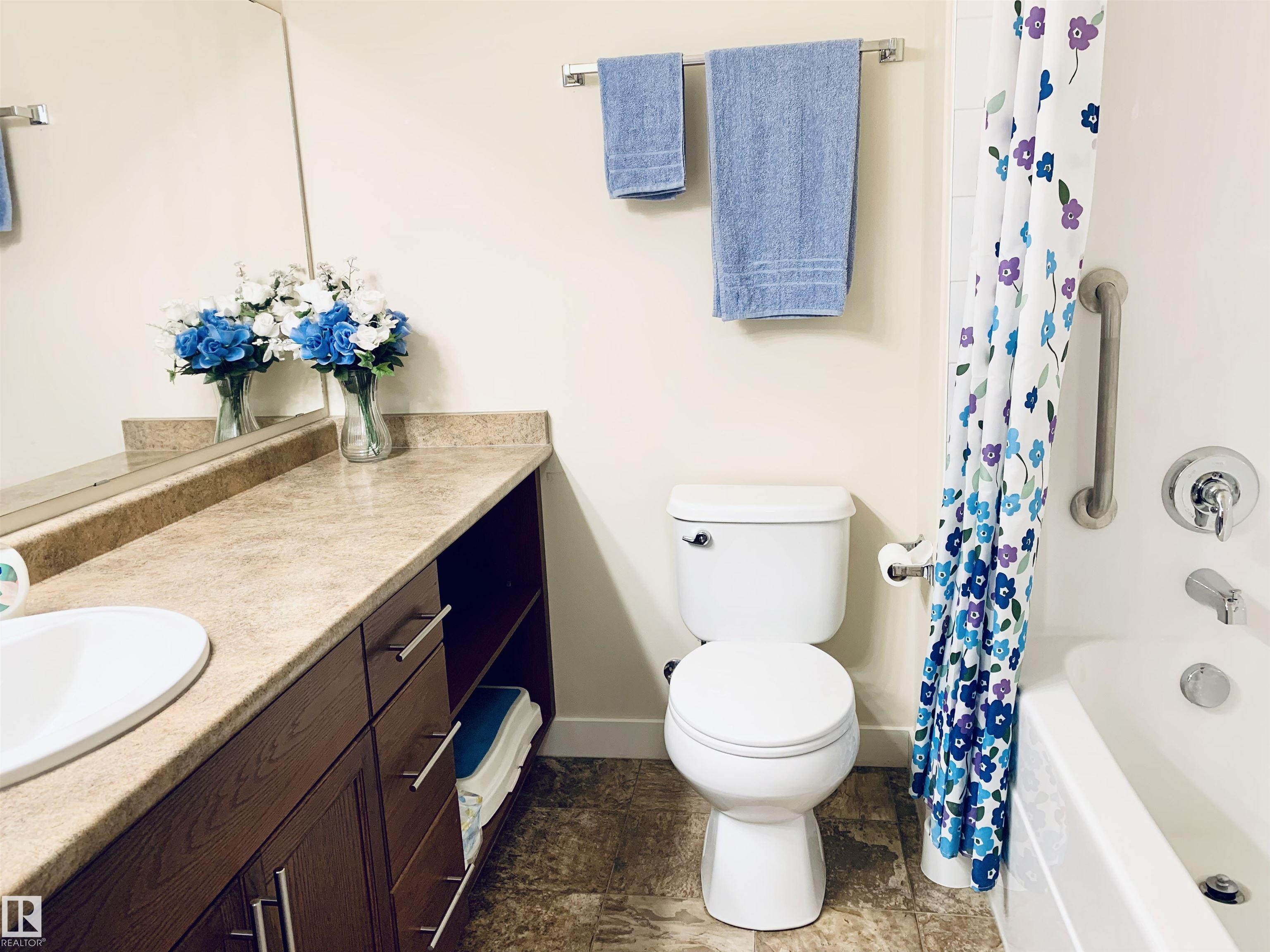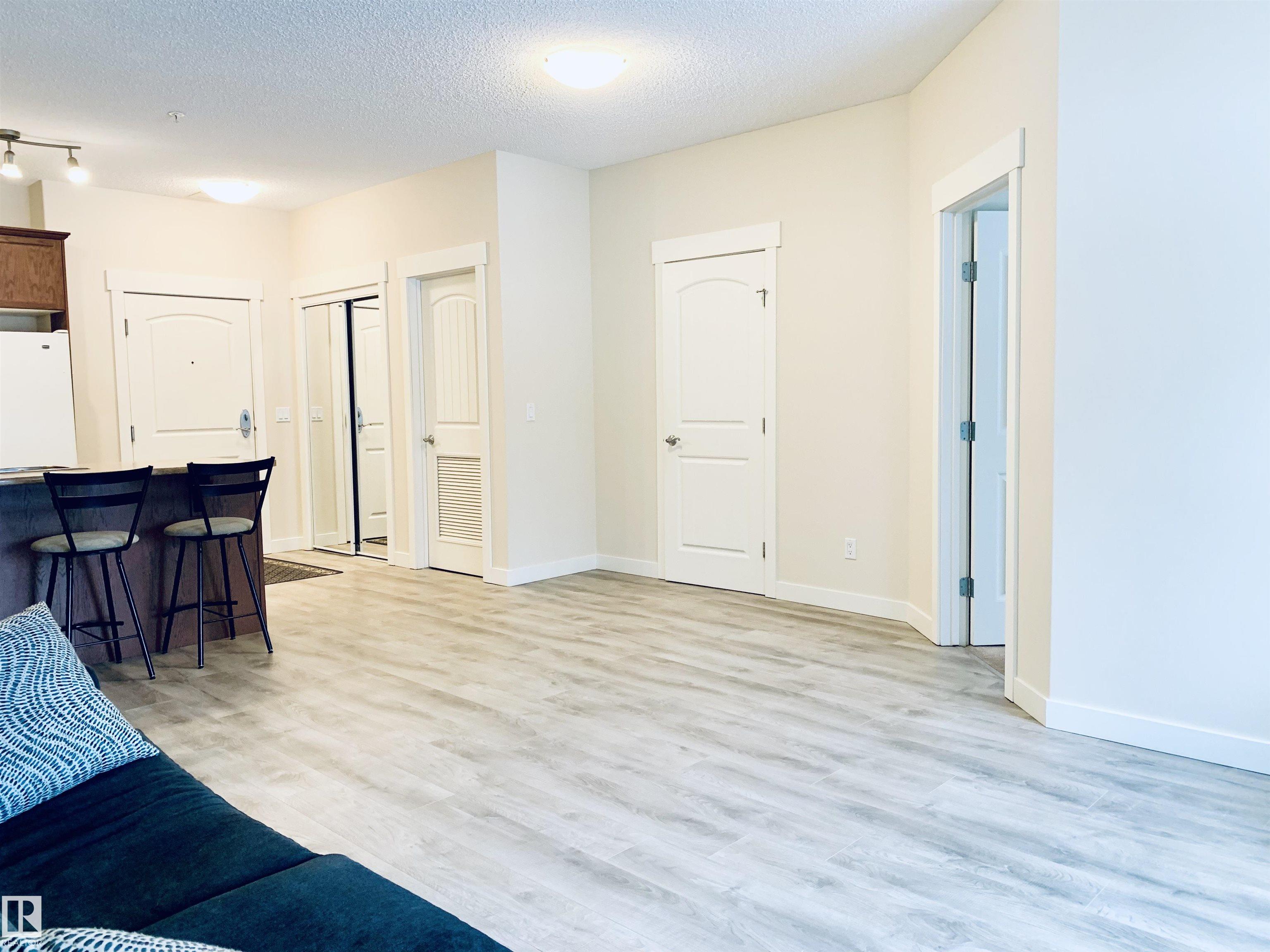 Welcome to #116 at Windsor Estates, a well-maintained 55+ adult living condo in Spruce Grove. This bright 2-bedroom, 2-bathroom home offers 891 sq. ft. of functional living space. The primary bedroom features a walk-in closet and 3-piece ensuite with walk-in shower, while the second bedroom is steps from the 4-piece main bath. Upgraded flooring and fresh paint were completed in Fall 2024. Enjoy large windows, an extra-large west-facing covered balcony, in-suite laundry with storage cabinetry, air conditioning, and heated underground parking with secured storage. Included appliances: refrigerator, stove, built-in dishwasher, built-in microwave/range hood fan, washer, dryer, stand-up deep freezer, and window coverings. Building amenities include a theatre room, exercise room, social room, games area, guest suites, and car wash. Walking distance to downtown Spruce Grove and Queen Street Place.