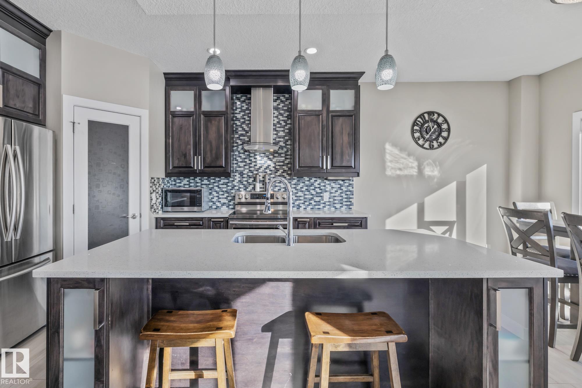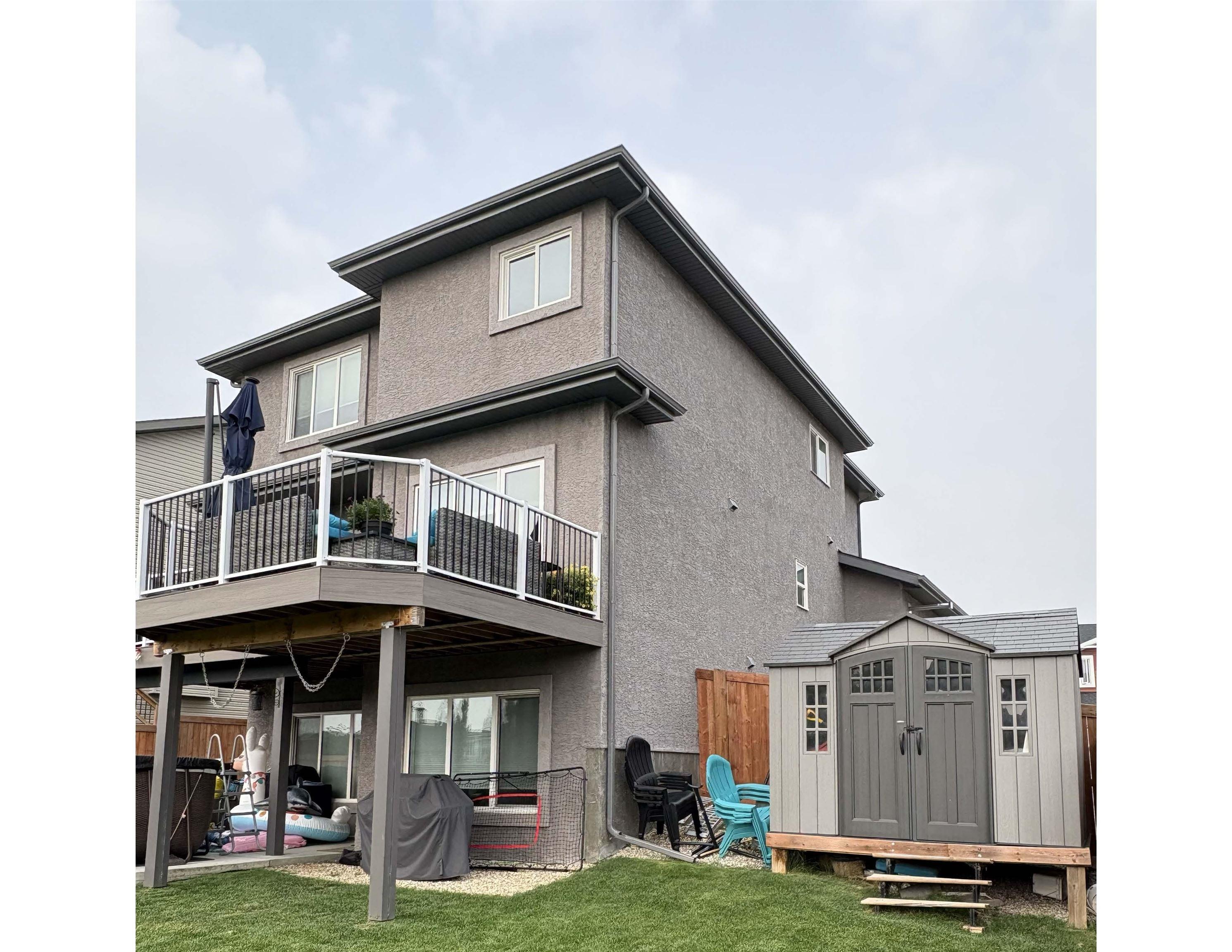 Tranquillity! Enjoy small-town living with big-city access in this beautiful 2-storey WALKOUT & POND BACKING home in Calmar. The main level offers a bright open-concept layout perfect for entertaining, highlighted by stunning full-picture views of the pond fountains. Step right off the dining area onto your NEW COMPOSITE DECK complete with a BBQ GAS LINE. The double attached HEATED GARAGE connects through a convenient LAUNDRY/MUDROOM and there?s an oversized TRIPLE PARKING PAD for extra vehicles & RV 30 AMP POWER. Upstairs you?ll find even more space to unwind in the front-facing bonus room. The upper level also features three bedrooms, a 4-piece bathroom and a spacious primary retreat with DOUBLE SINKS and a luxurious FREESTANDING TUB. The fully finished walkout basement adds even more living space with an additional bedroom, another 4-piece bath and a large rec room that opens directly to the backyard with beautiful landscaping throughout the front and back of the home. Bussing to all 3 schools avail!