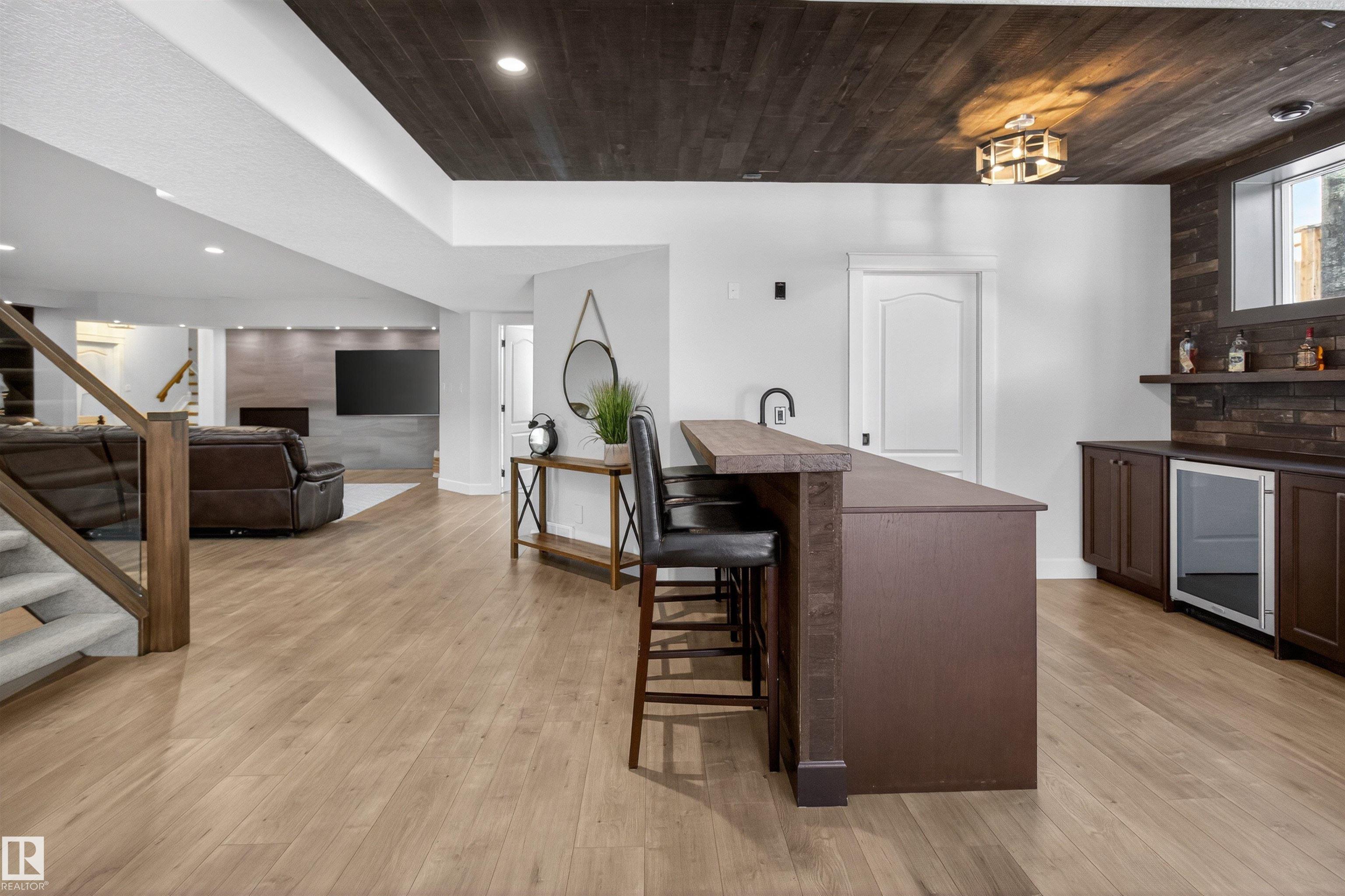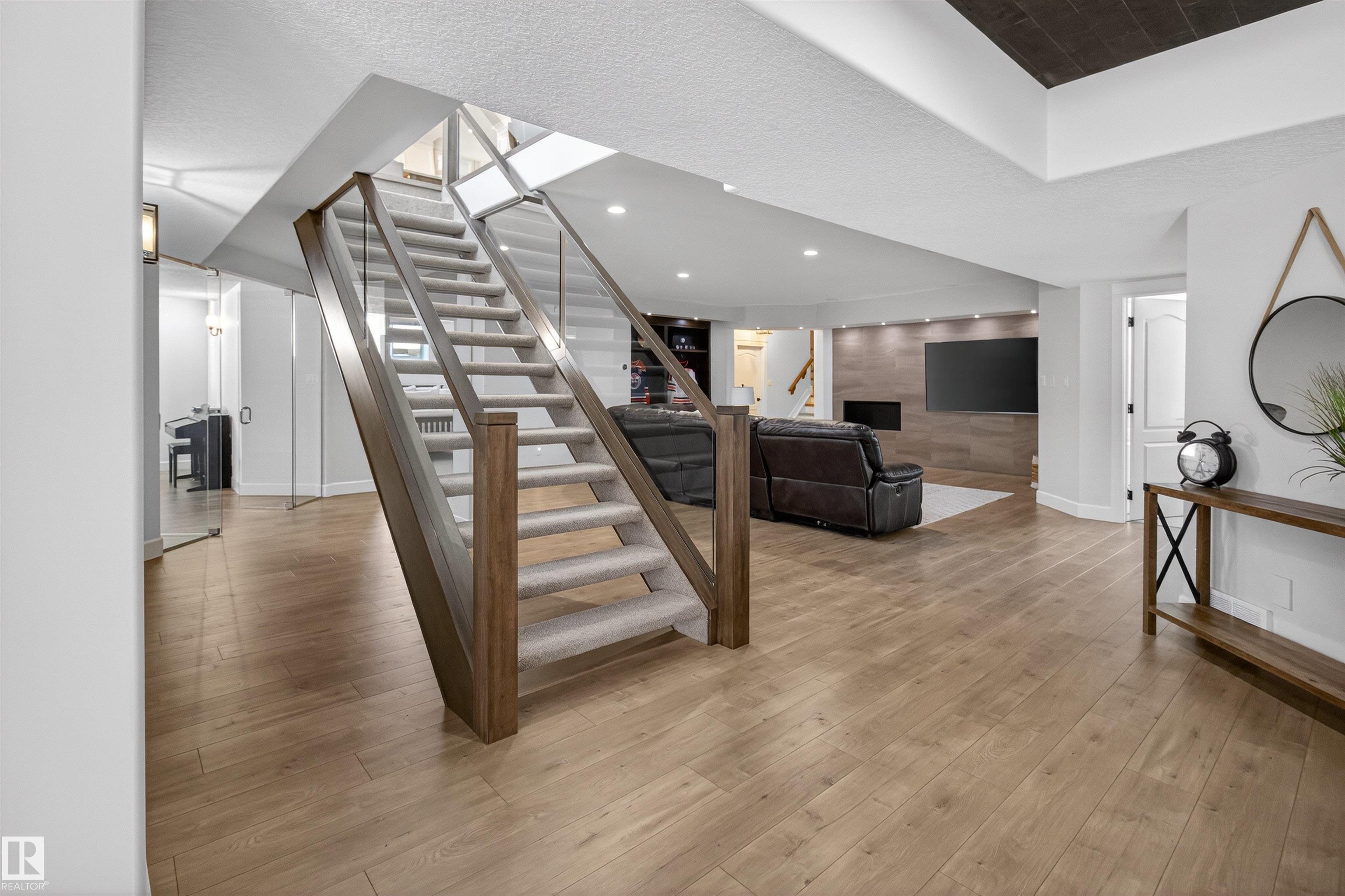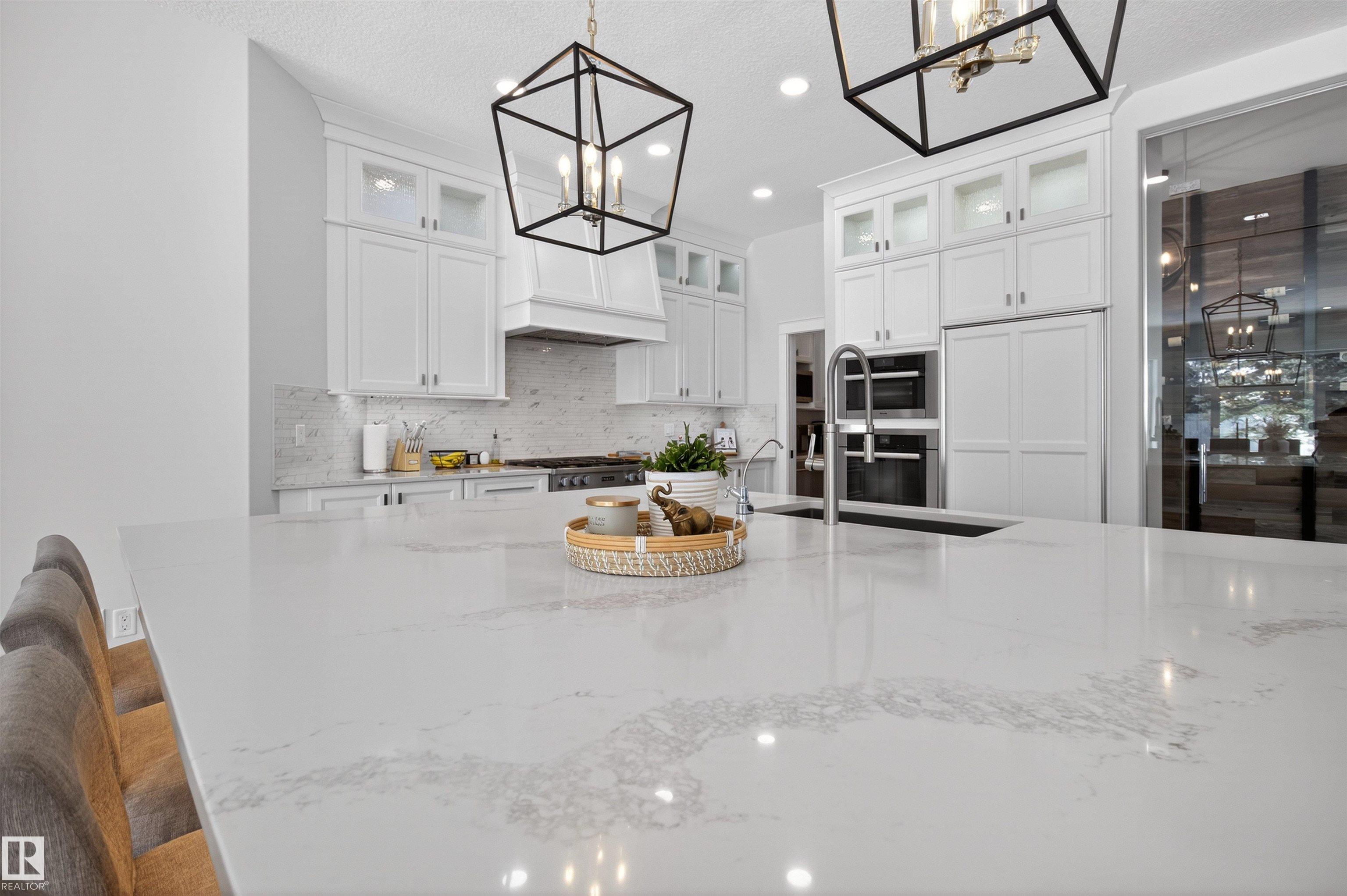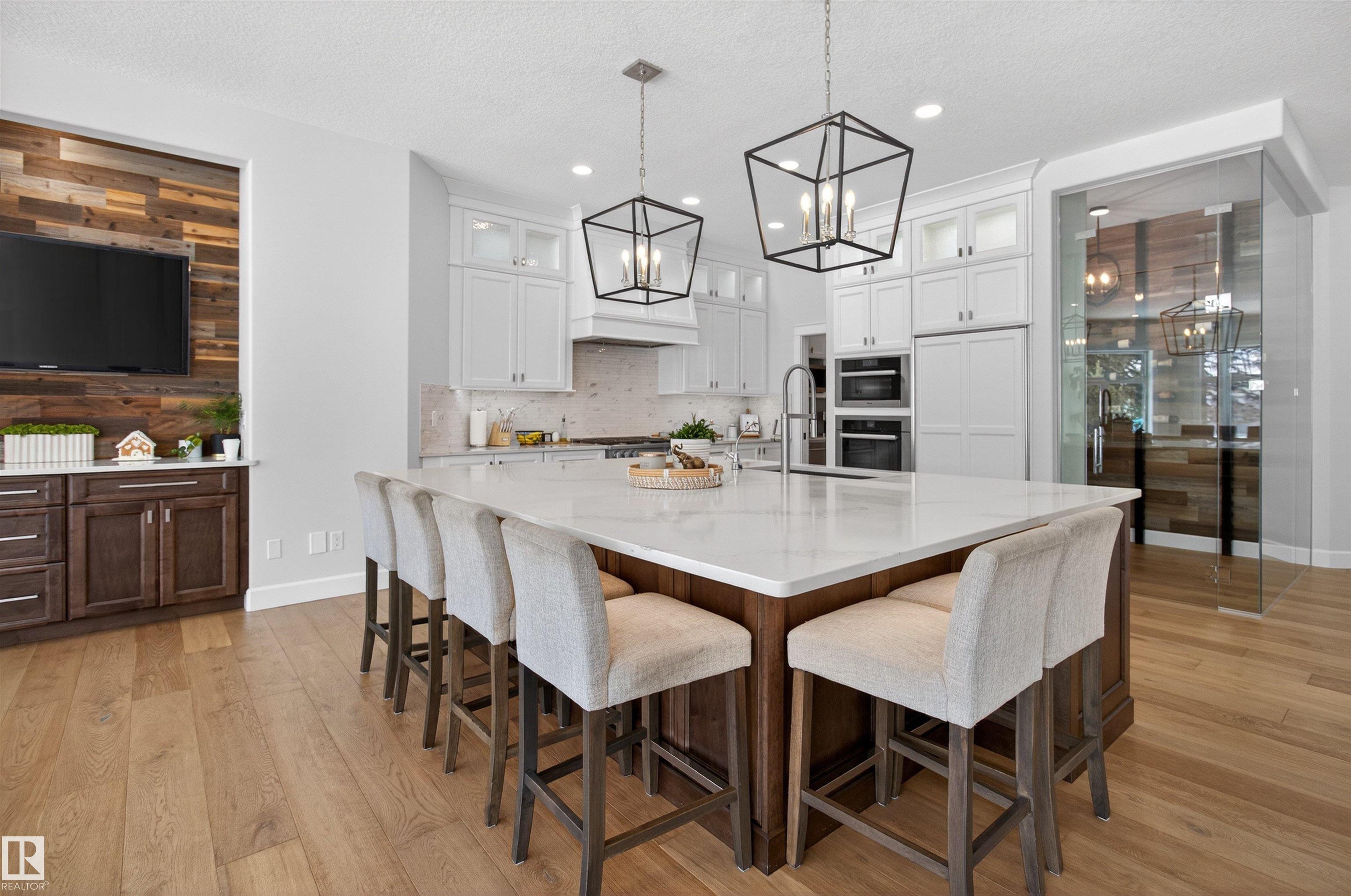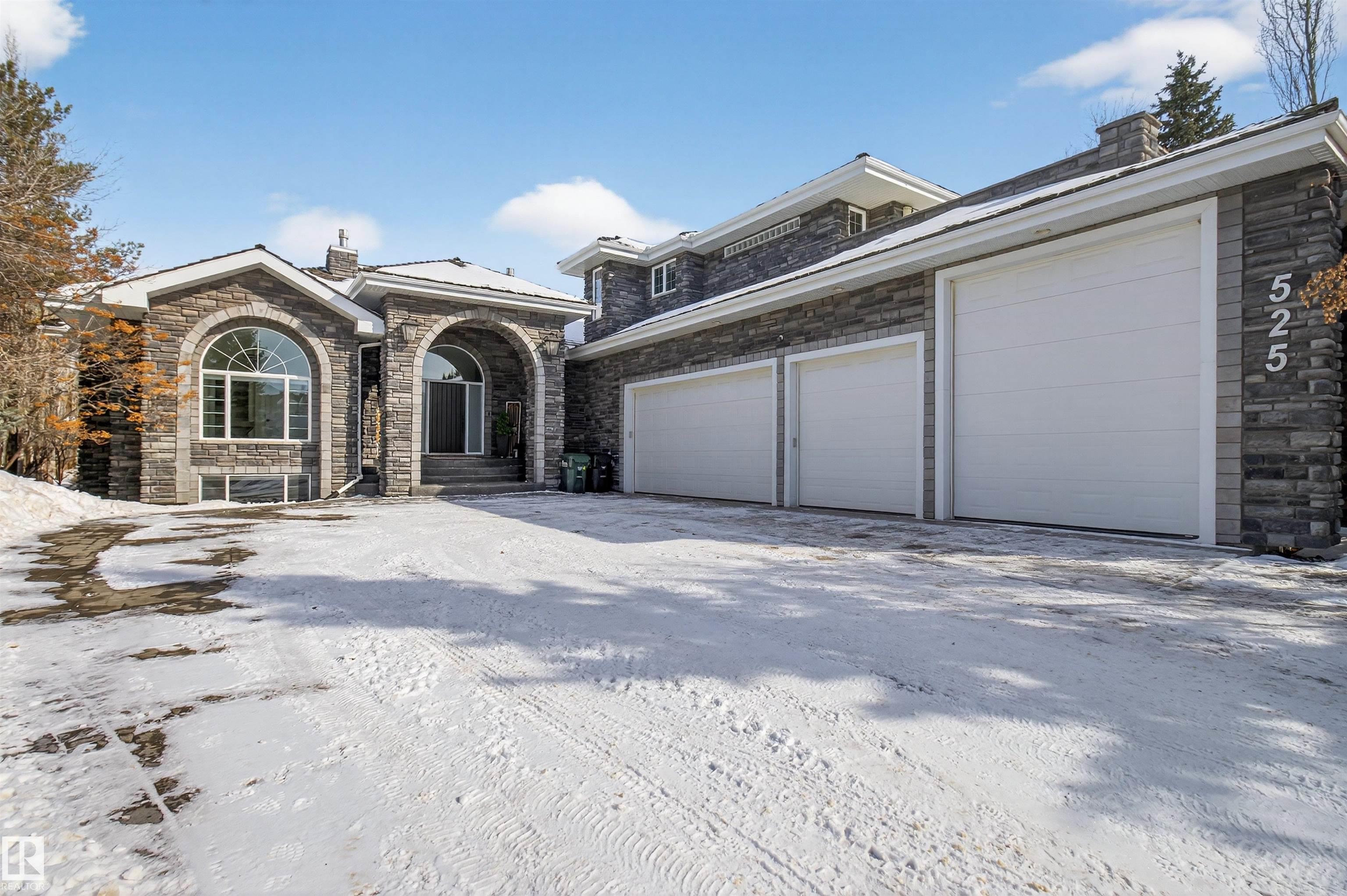 LUXURY LIVING! Welcome to 525 Estate Drive! This spectacular EXTENSIVELY RENOVATED BUNGALOW is situated on 0.50 acres in one of Sherwood Park?s most prestigious communities. Offering 3259 sq ft plus a fully finished WALKOUT BASEMENT, this exceptional home was designed for luxury living and unforgettable entertaining. The stunning open-concept layout features a DREAM GOURMET KITCHEN with a massive island, quartz countertops, high-end appliances, butler?s walk-through pantry, and a private wine room. The spacious living room with gas fireplace flows beautifully into the large dining area. 4 bedrooms and 4 bathrooms, including a luxurious primary retreat with a gorgeous ensuite and cozy fireplace. A unique upper loft bedroom with ROOFTOP PATIO adds an incredible private escape. IMPRESSIVE walkout basement featuring a large family room, wet bar, gym, 2 bedrooms, full bathroom & storage. Private backyard oasis with mature trees, a large deck & hot tub. Complete with stunning curb appeal and a 5 CAR GARAGE!!