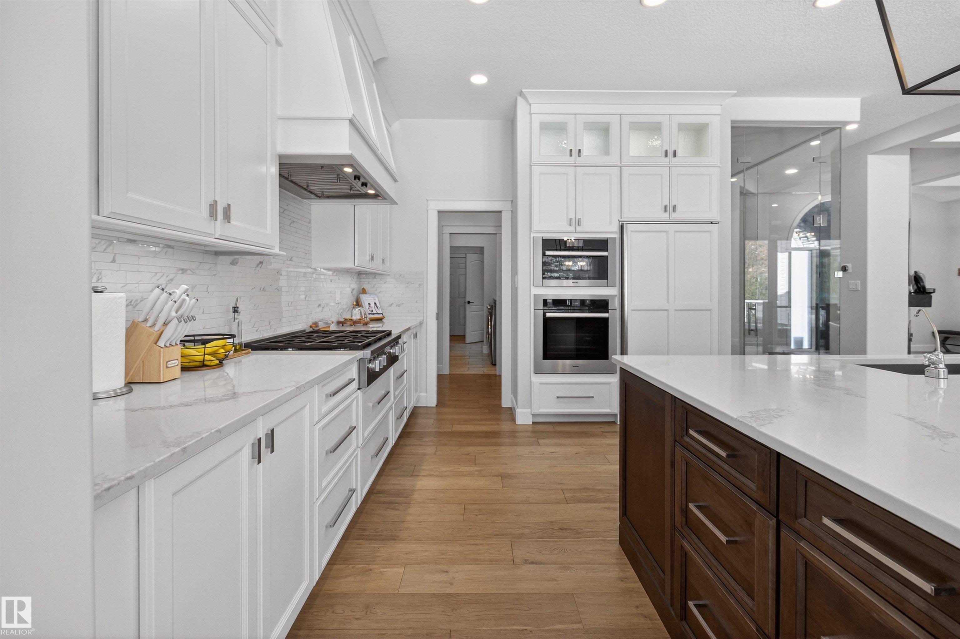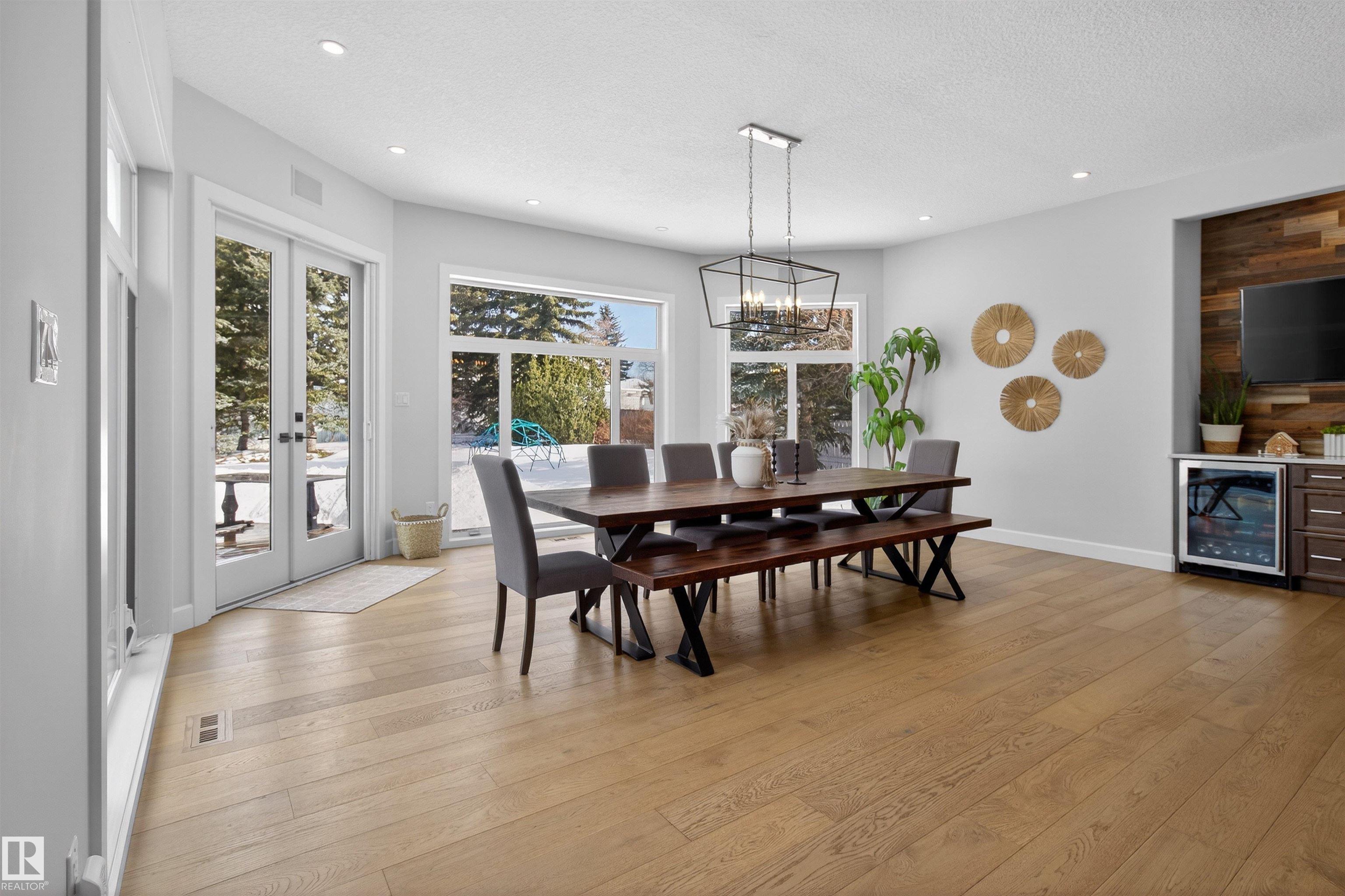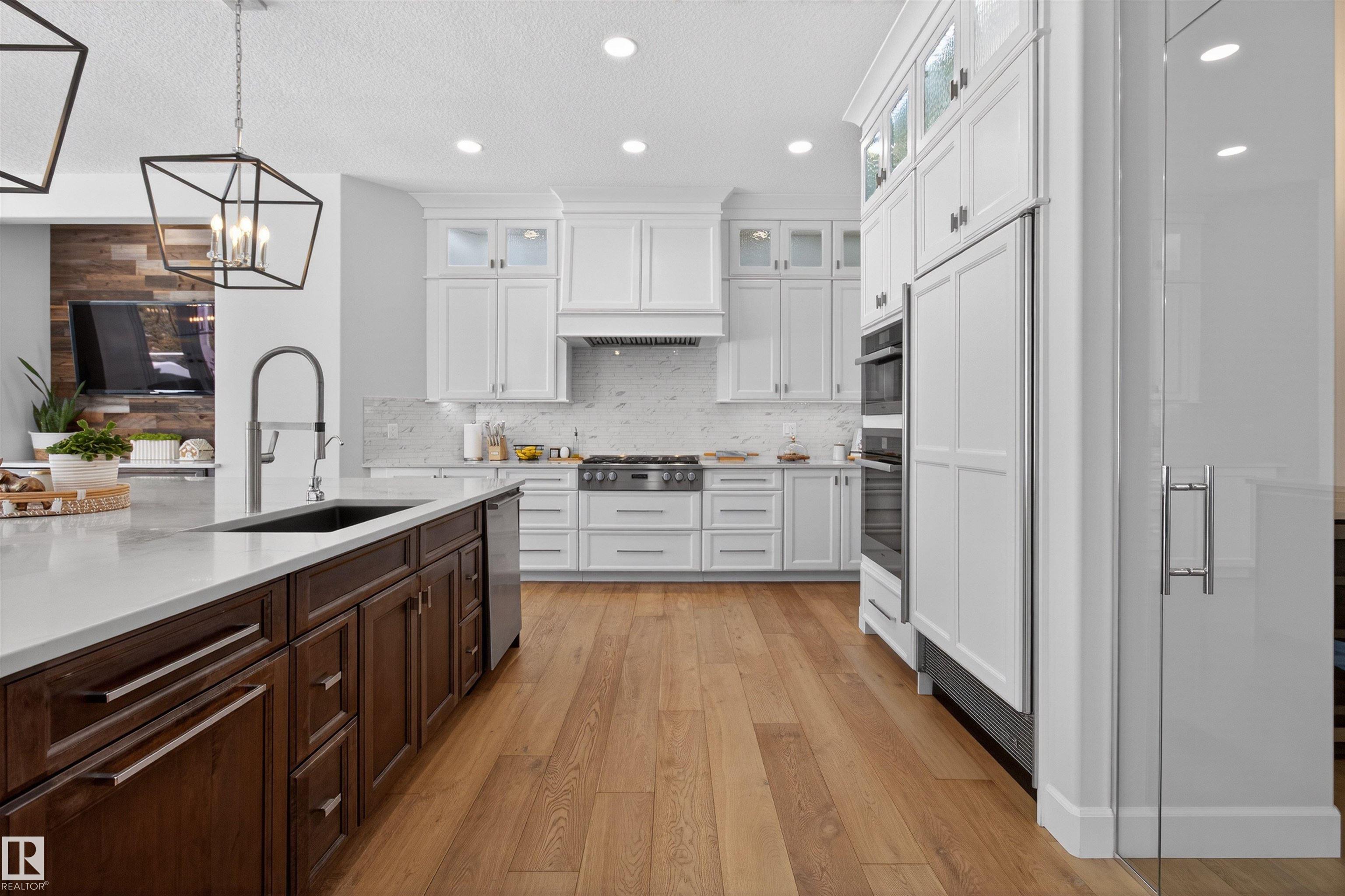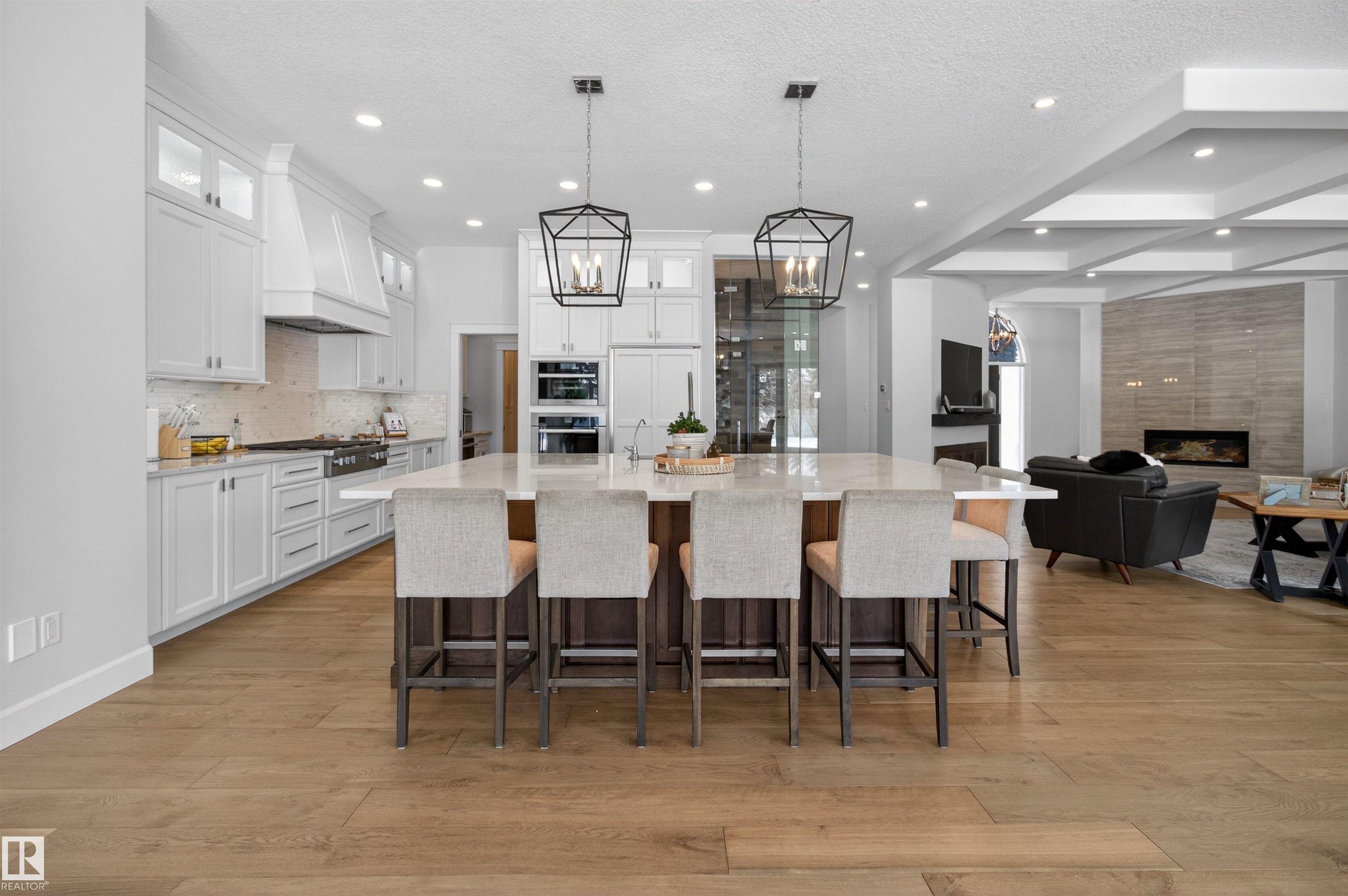 LUXURY LIVING! Welcome to 525 Estate Drive! This spectacular EXTENSIVELY RENOVATED BUNGALOW is situated on 0.50 acres in one of Sherwood Park?s most prestigious communities. Offering 3259 sq ft plus a fully finished WALKOUT BASEMENT, this exceptional home was designed for luxury living and unforgettable entertaining. The stunning open-concept layout features a DREAM GOURMET KITCHEN with a massive island, quartz countertops, high-end appliances, butler?s walk-through pantry, and a private wine room. The spacious living room with gas fireplace flows beautifully into the large dining area. 4 bedrooms and 4 bathrooms, including a luxurious primary retreat with a gorgeous ensuite and cozy fireplace. A unique upper loft bedroom with ROOFTOP PATIO adds an incredible private escape. IMPRESSIVE walkout basement featuring a large family room, wet bar, gym, 2 bedrooms, full bathroom & storage. Private backyard oasis with mature trees, a large deck & hot tub. Complete with stunning curb appeal and a 5 CAR GARAGE!!
