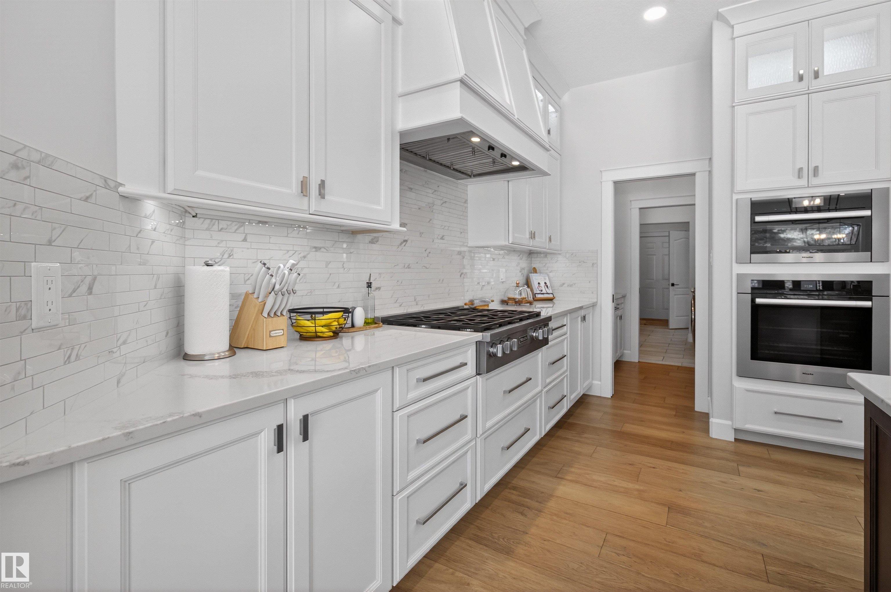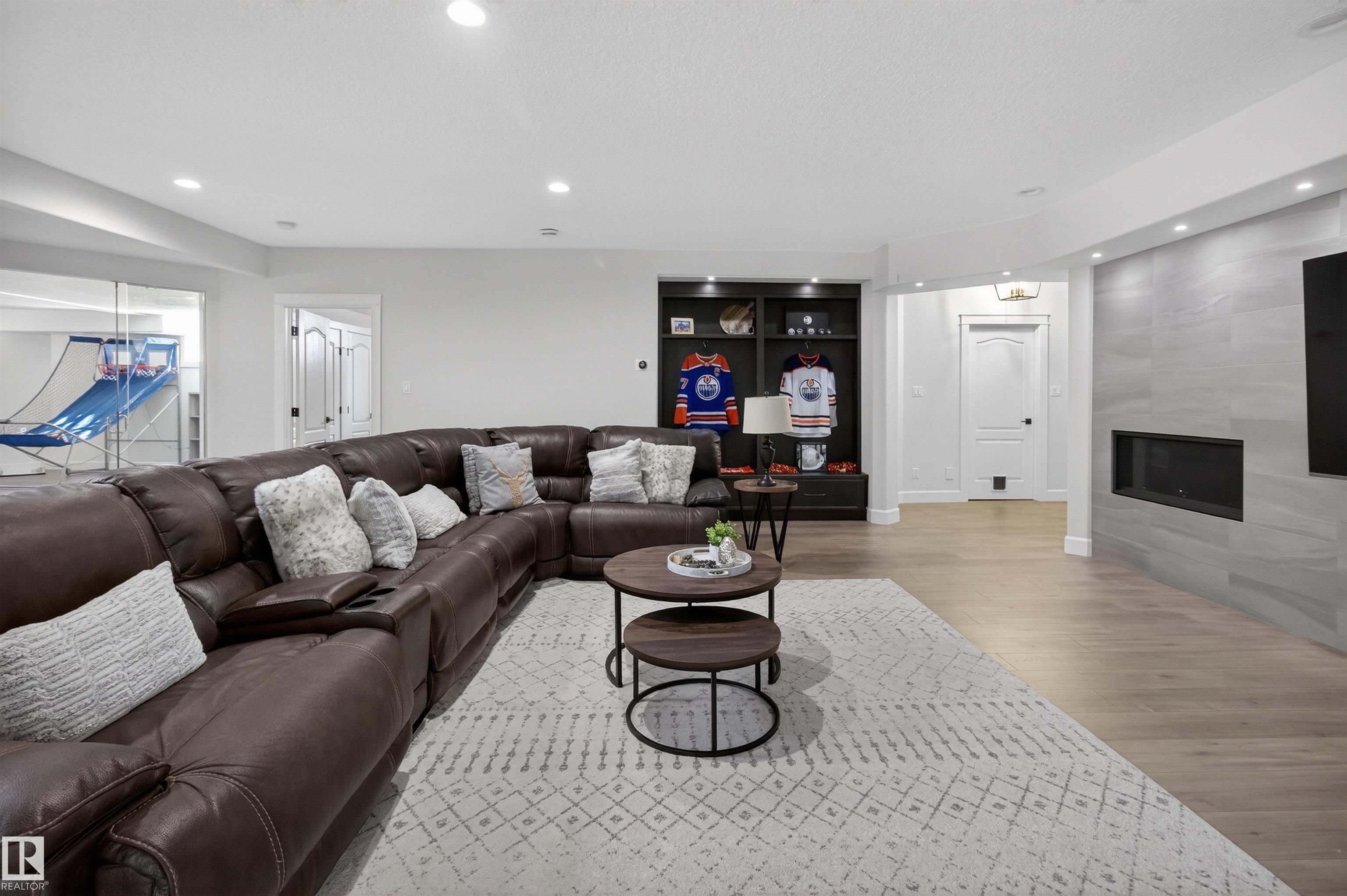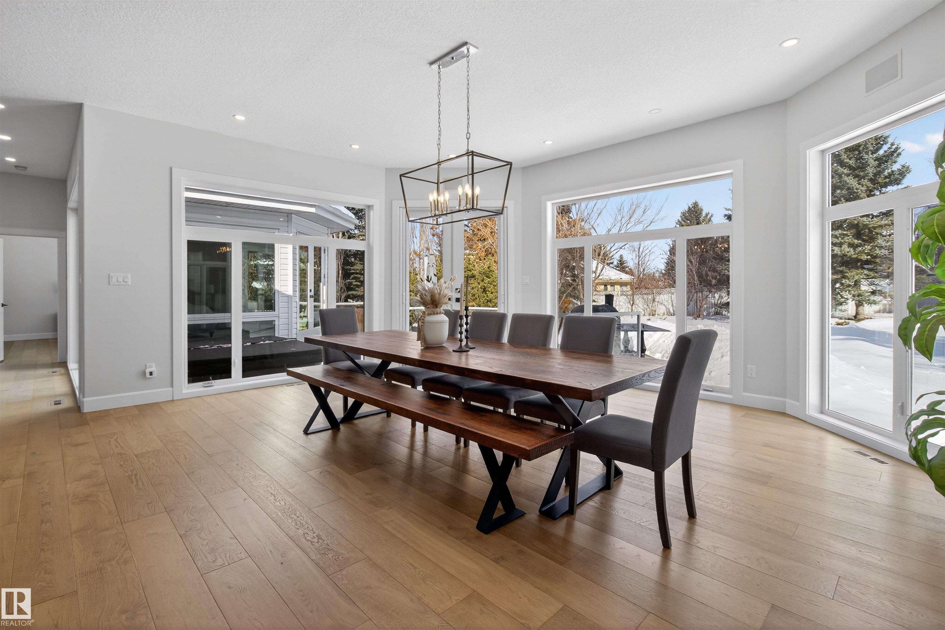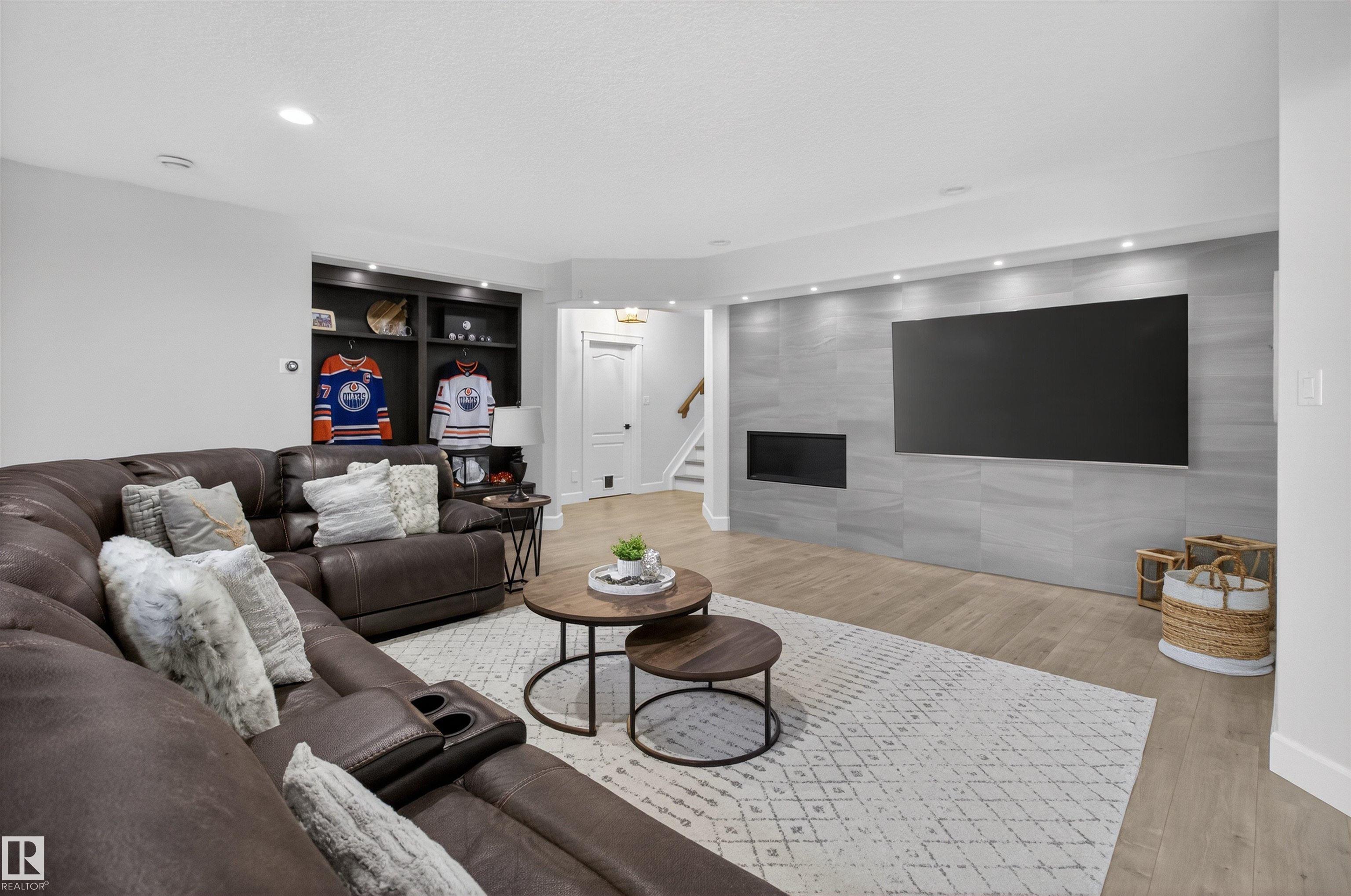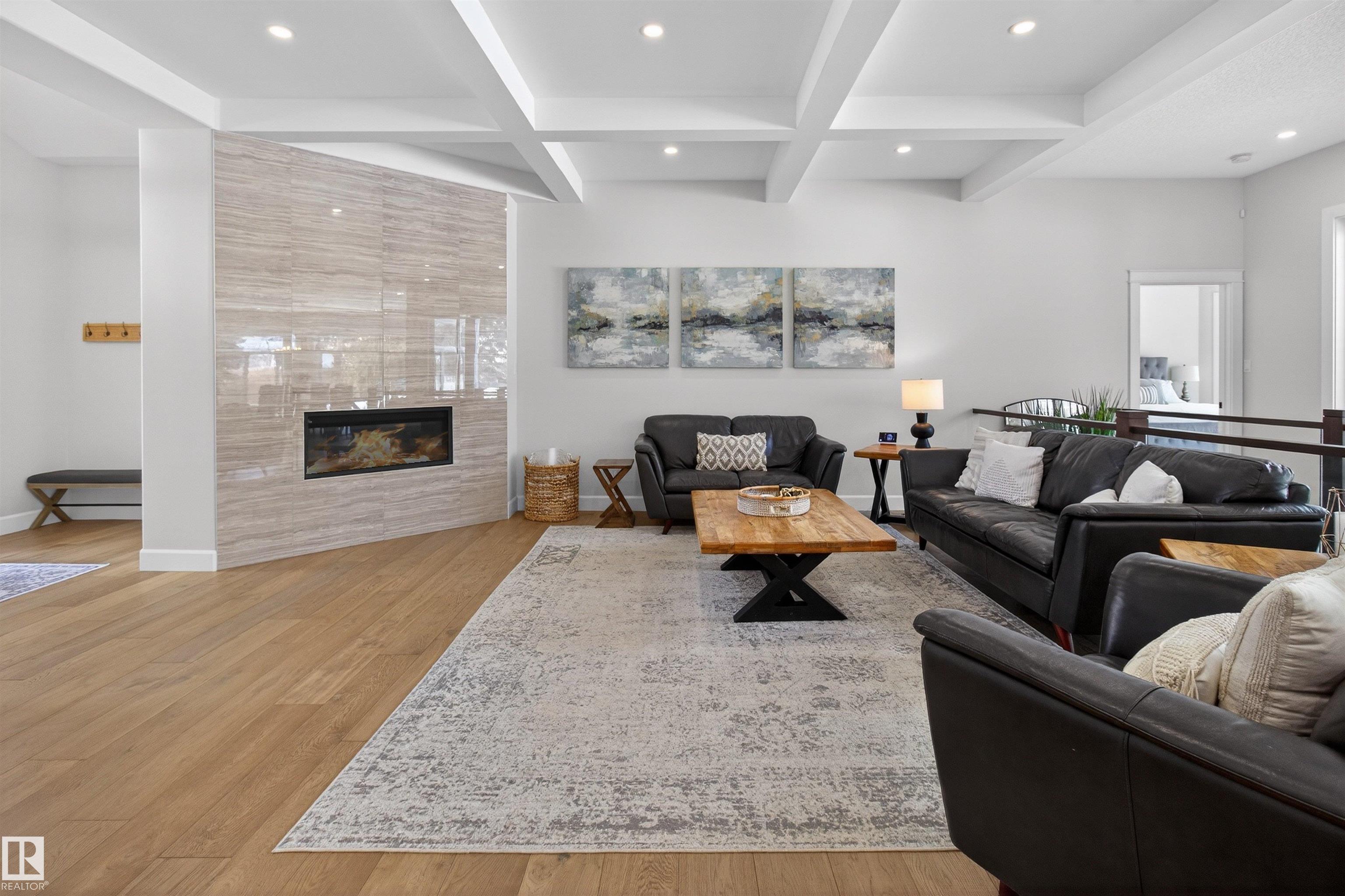LUXURY LIVING! Welcome to 525 Estate Drive! This spectacular EXTENSIVELY RENOVATED BUNGALOW is situated on 0.50 acres in one of Sherwood Park?s most prestigious communities. Offering 3259 sq ft plus a fully finished WALKOUT BASEMENT, this exceptional home was designed for luxury living and unforgettable entertaining. The stunning open-concept layout features a DREAM GOURMET KITCHEN with a massive island, quartz countertops, high-end appliances, butler?s walk-through pantry, and a private wine room. The spacious living room with gas fireplace flows beautifully into the large dining area. 4 bedrooms and 4 bathrooms, including a luxurious primary retreat with a gorgeous ensuite and cozy fireplace. A unique upper loft bedroom with ROOFTOP PATIO adds an incredible private escape. IMPRESSIVE walkout basement featuring a large family room, wet bar, gym, 2 bedrooms, full bathroom & storage. Private backyard oasis with mature trees, a large deck & hot tub. Complete with stunning curb appeal and a 5 CAR GARAGE!!