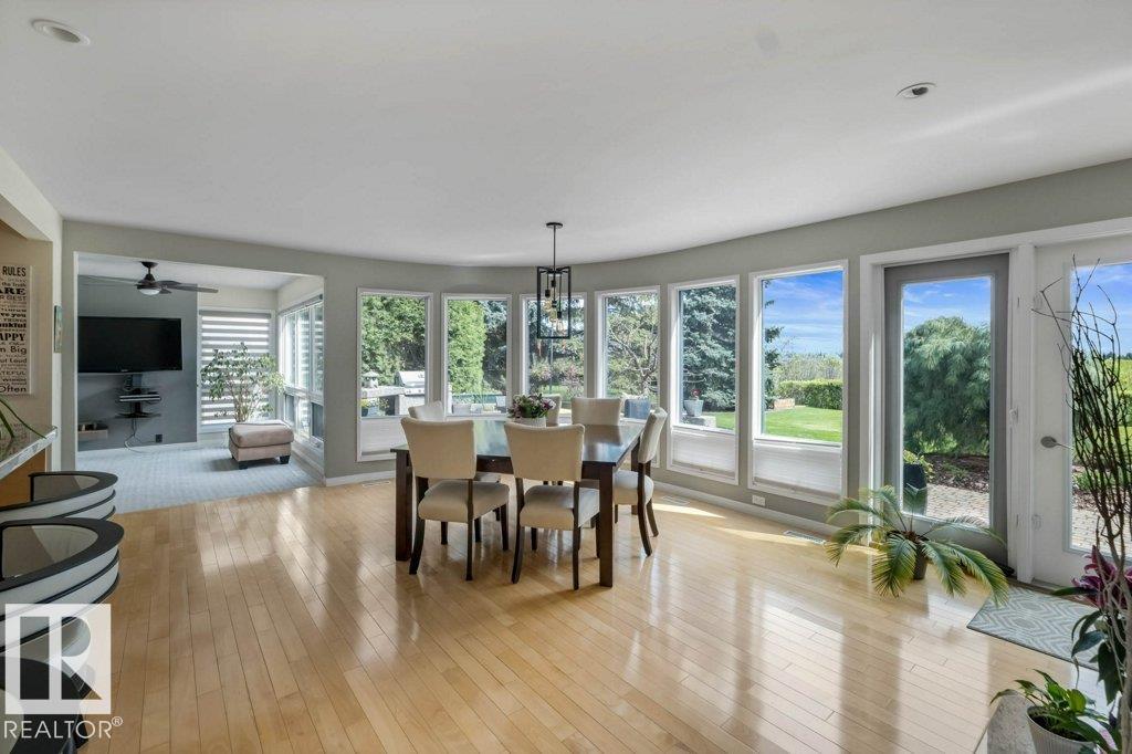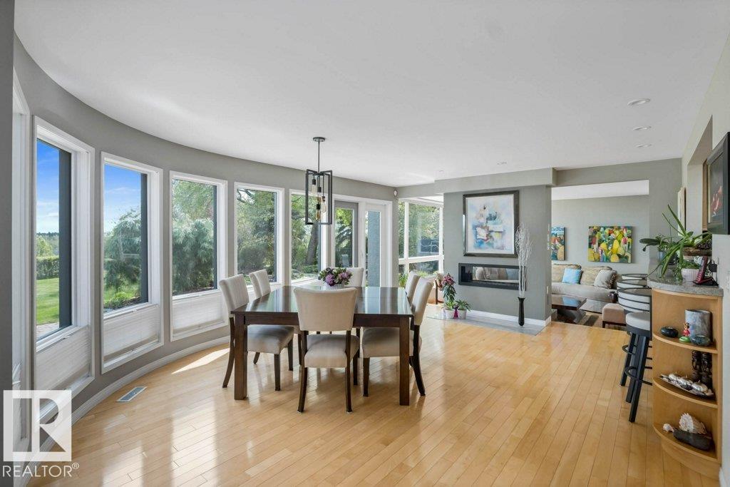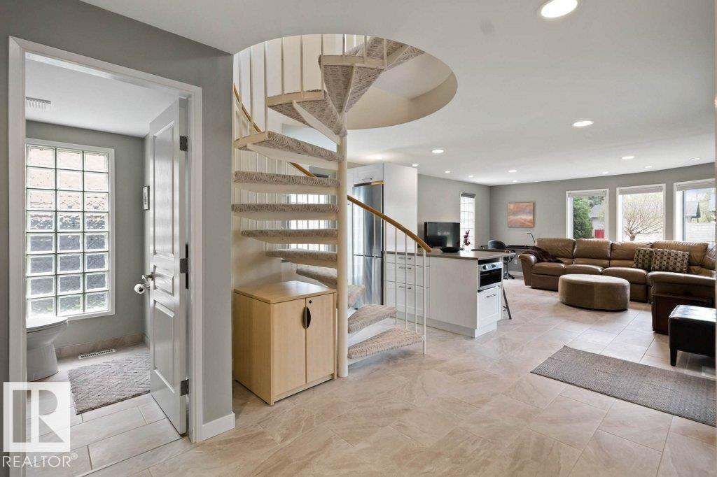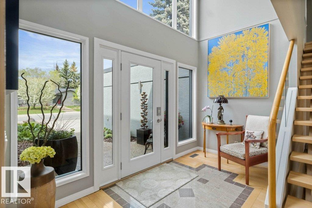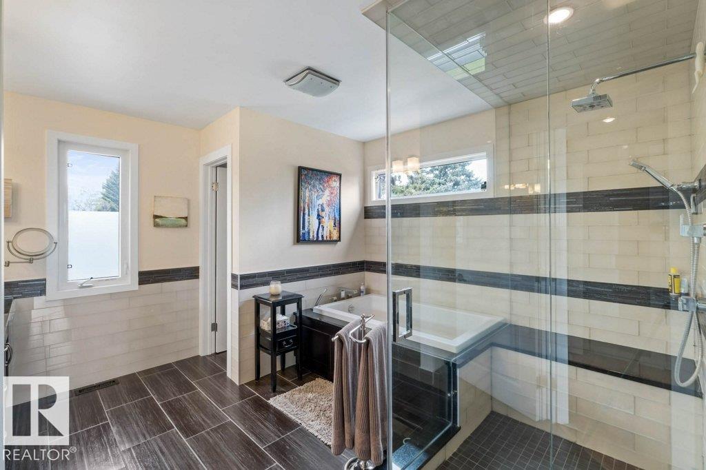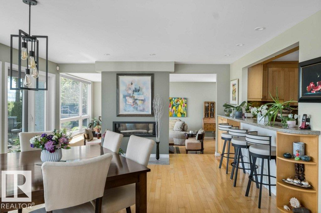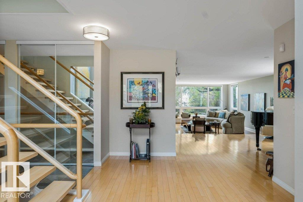 Peaceful. Private. River Valley Views. Elevated living on one of Rio Terrace Drive?s most coveted River view lot. This architectural West Coast modern 4+1 bedroom, 5 Bath home offers a rare blend of river valley views and serene, garden-wrapped seclusion for privacy. Expansive south-facing grounds are beautifully landscaped, creating intimate spaces for quiet moments or unforgettable entertaining. Inside, curated living areas are filled with natural light through oversized windows, while a 500 sq ft rooftop patio showcases stunning views and a seamless connection to nature. Meticulously maintained and highly livable, the home can be enjoyed as-is while you design your future dream home on this exceptional hard-to-replace lot. A 2-storey guest suite provides flexibility to suit your needs; use it for multi-generational living, as an in-home caregiver/nanny suite or a home business space. Minutes to central Edmonton, yet worlds away.