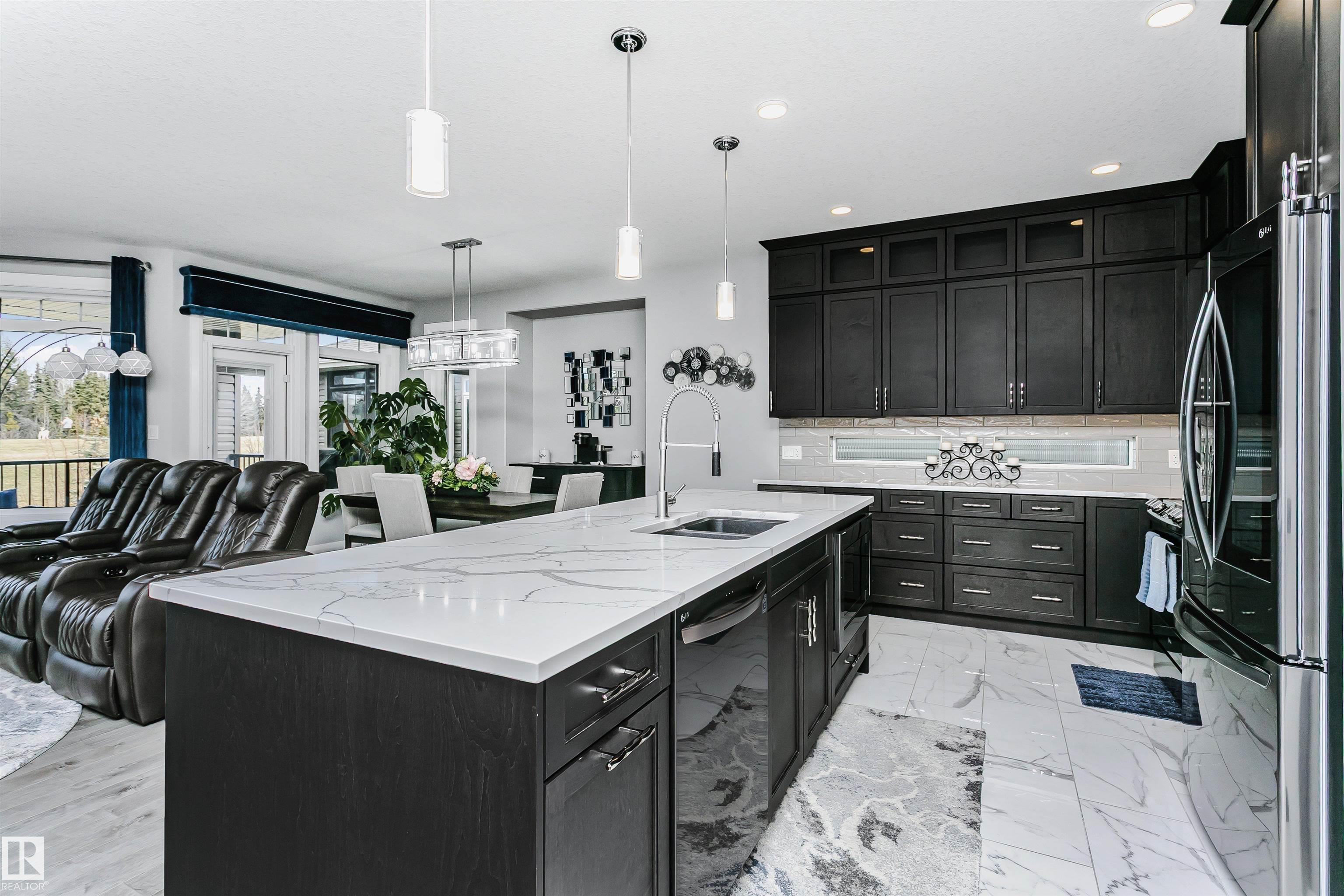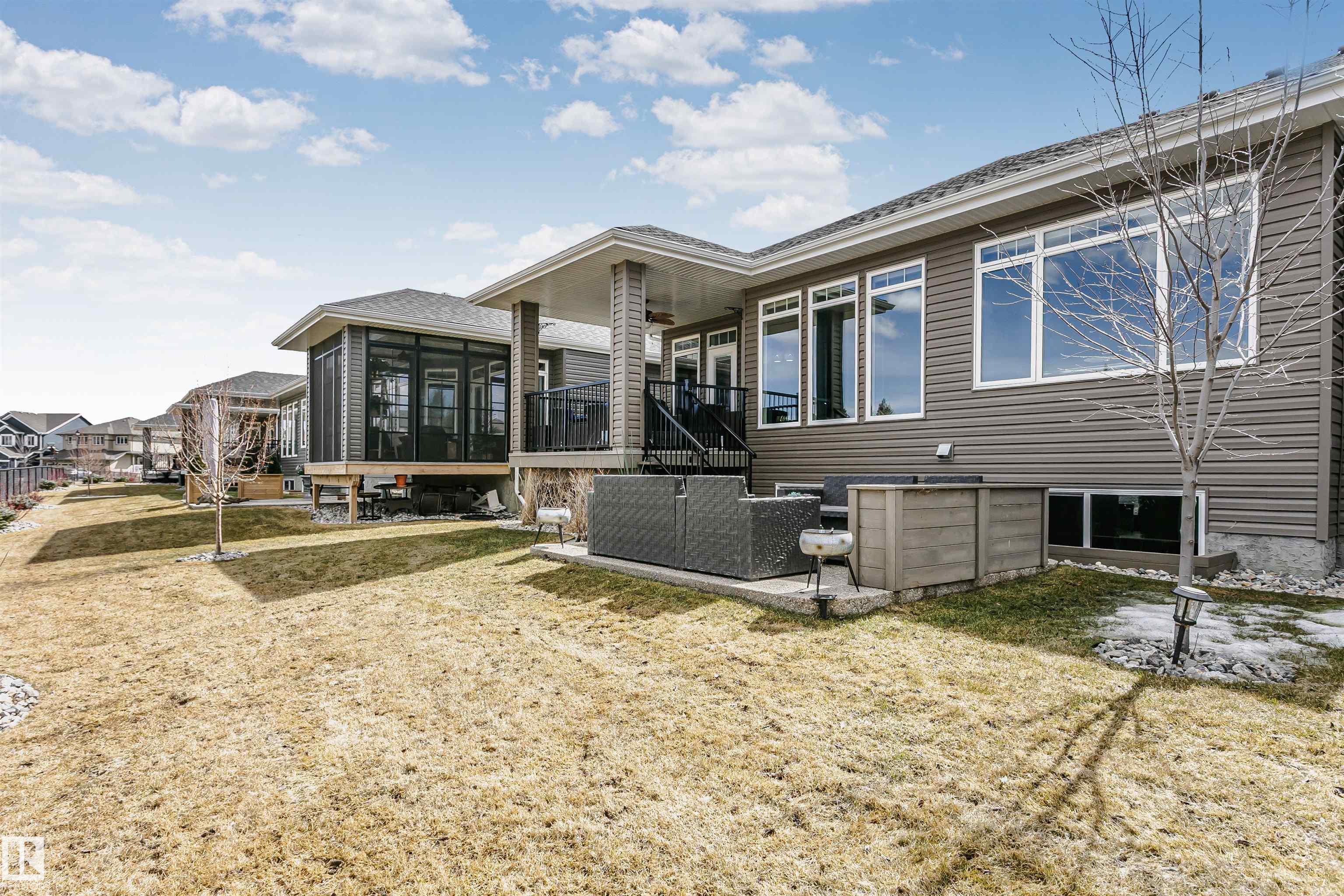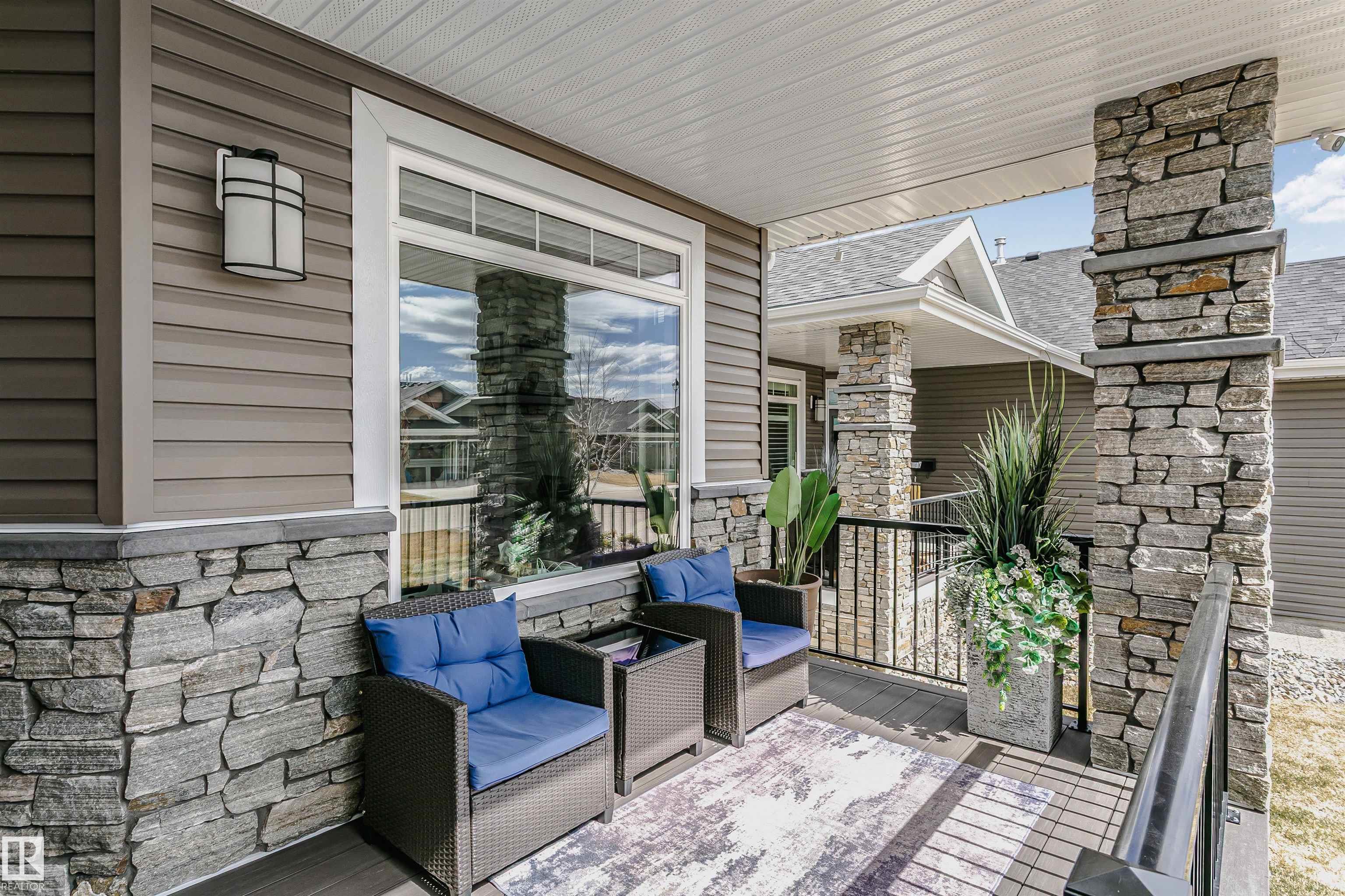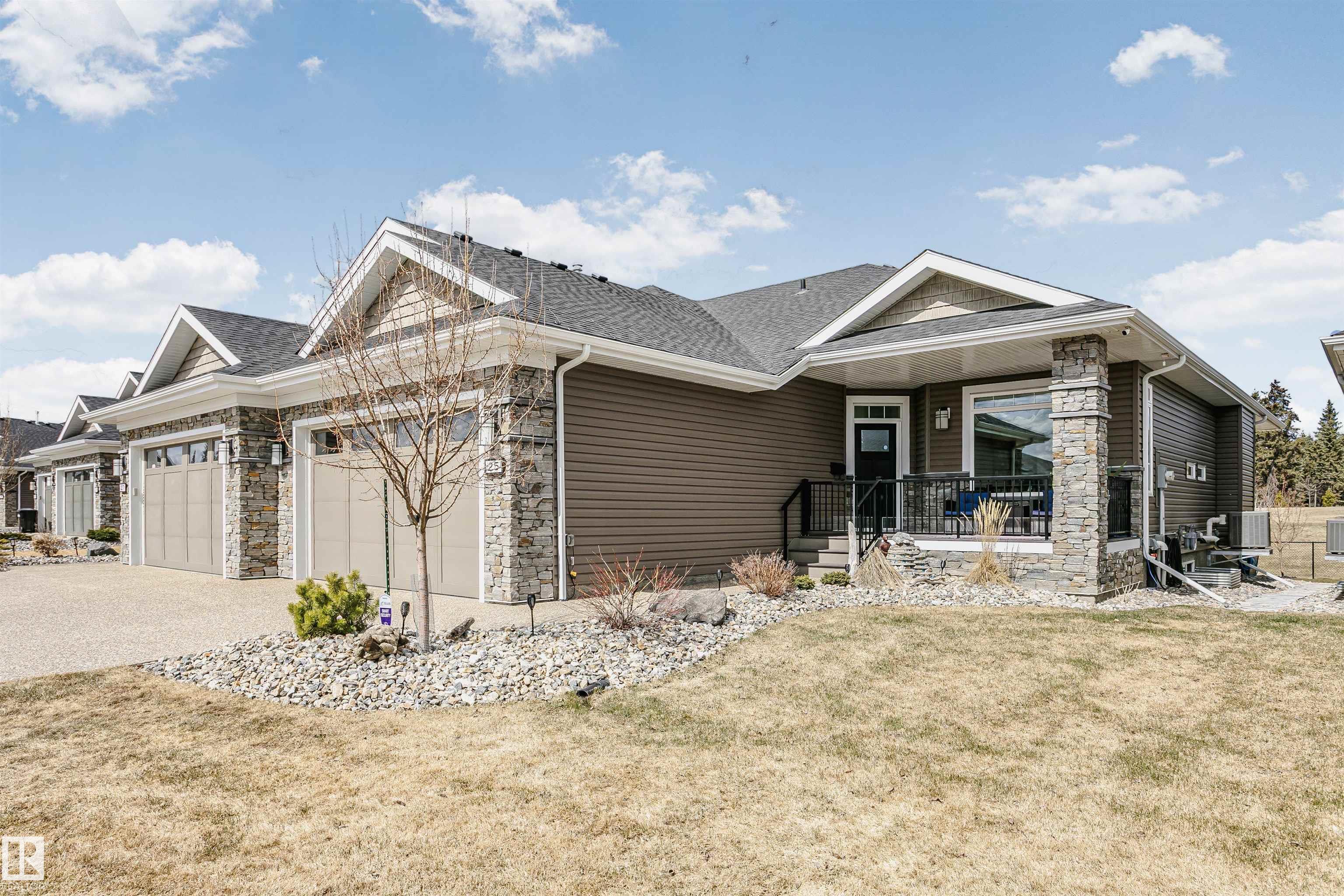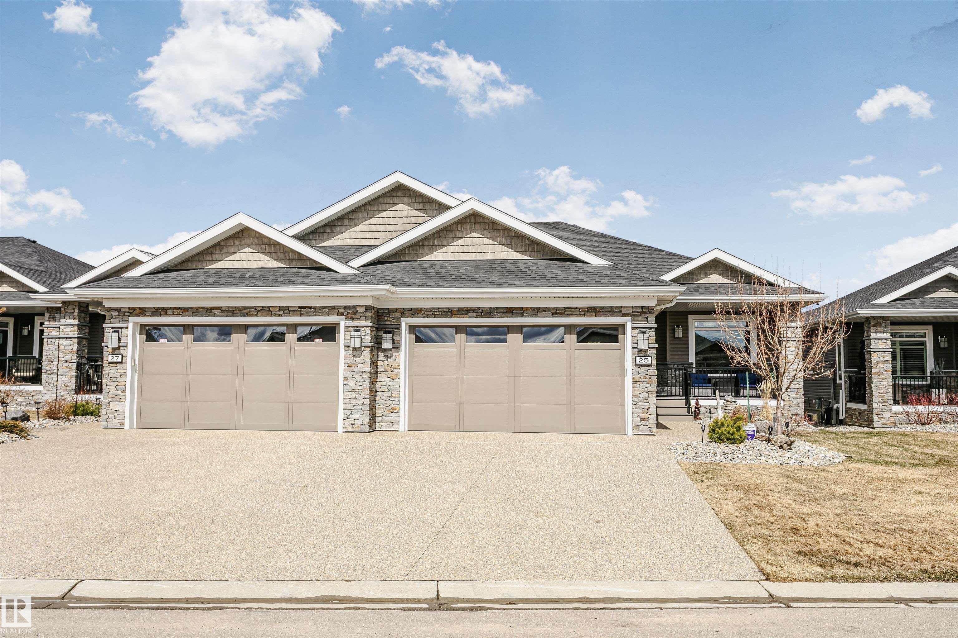 Rare 55+ bungalow duplex in a quiet cul-de-sac at Waters Edge Villas, backing onto the serene Atim Creek natural area. This elegant home offers an open-concept design with soaring ceilings, sun-filled spaces, & 2 cozy fireplaces. The upscale kitchen features rich maple cabinetry, quartz countertops, abundant storage, & a massive island?perfect for entertaining. Main floor showcases engineered hardwood & marble-inspired porcelain tile flooring, with floor-to-ceiling windows framing peaceful views. The king-sized primary retreat boasts a luxurious 5-piece ensuite. A second bedroom/office, 2-pc bath, & convenient laundry complete the main level. The fully developed basement offers a spacious family/games room with fireplace, wet bar, third bedroom, 4-pc bath, great storage area & large windows for natural light. Double attached finished garage (20x26) with 220V. Enjoy the covered deck, composite veranda, & low-maintenance living with HOA lawn care & snow removal. You won?t be disappointed!
