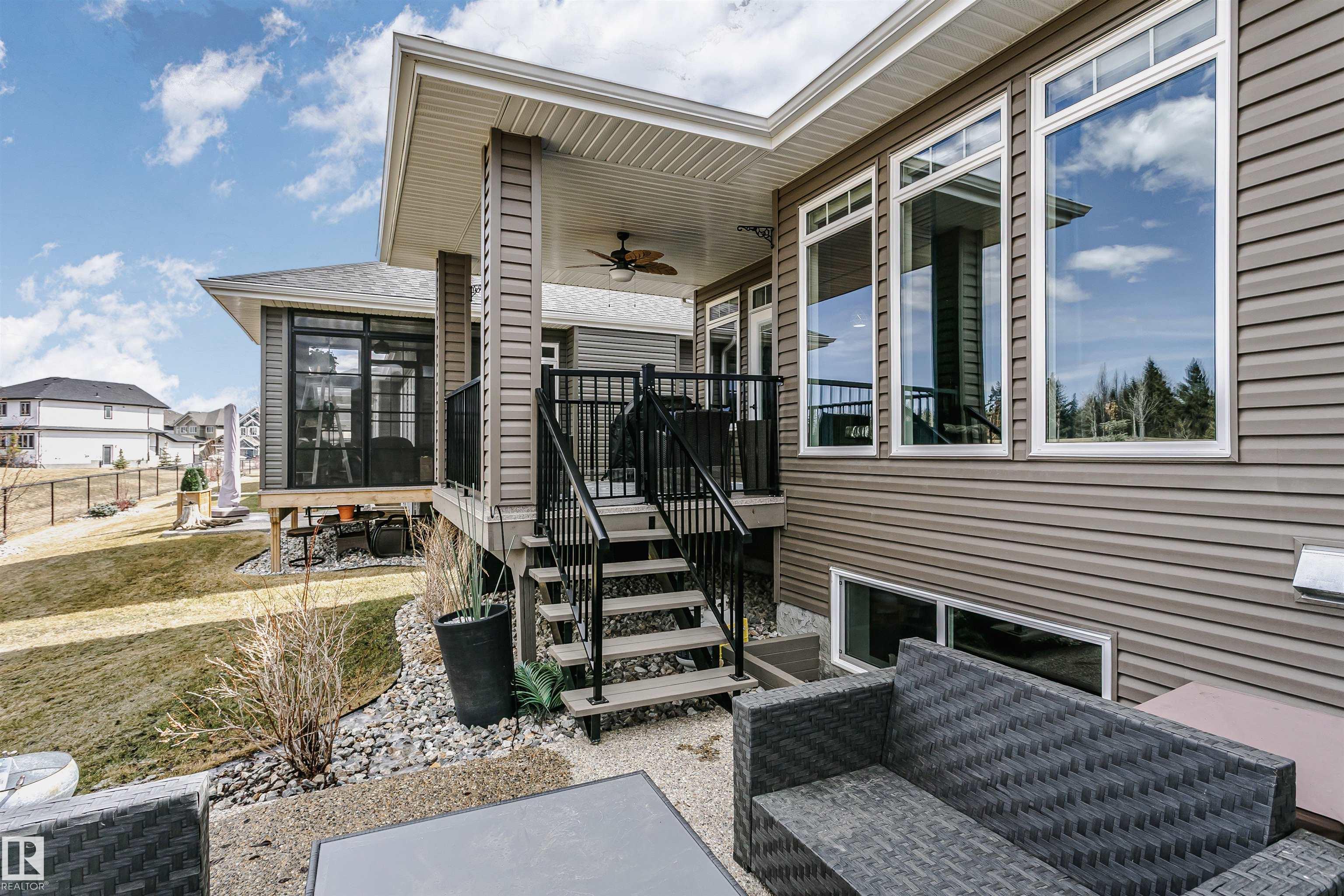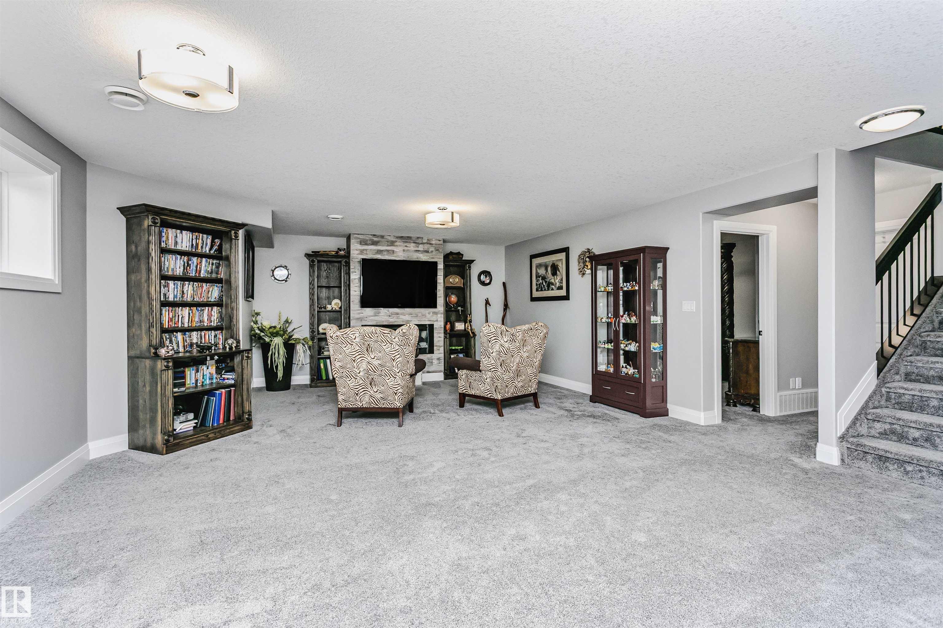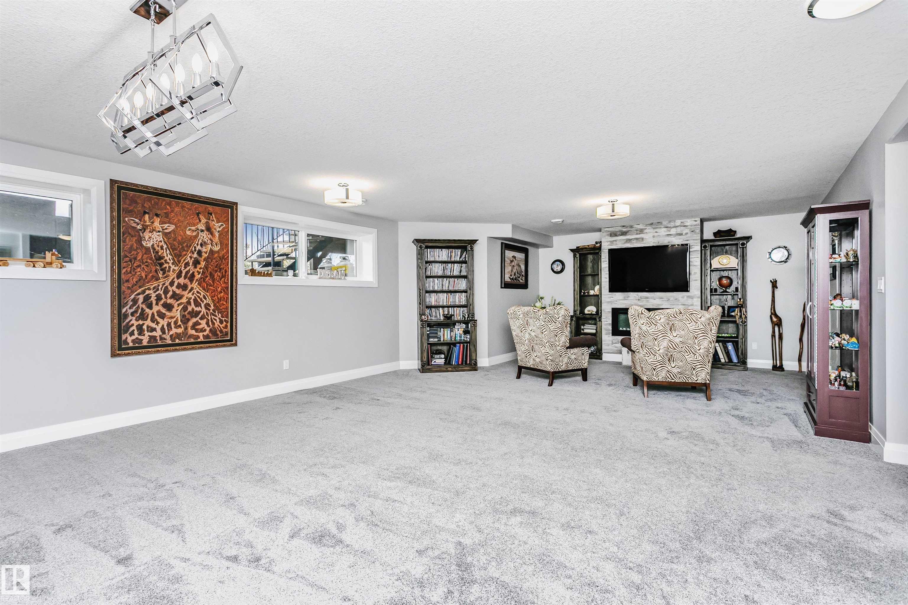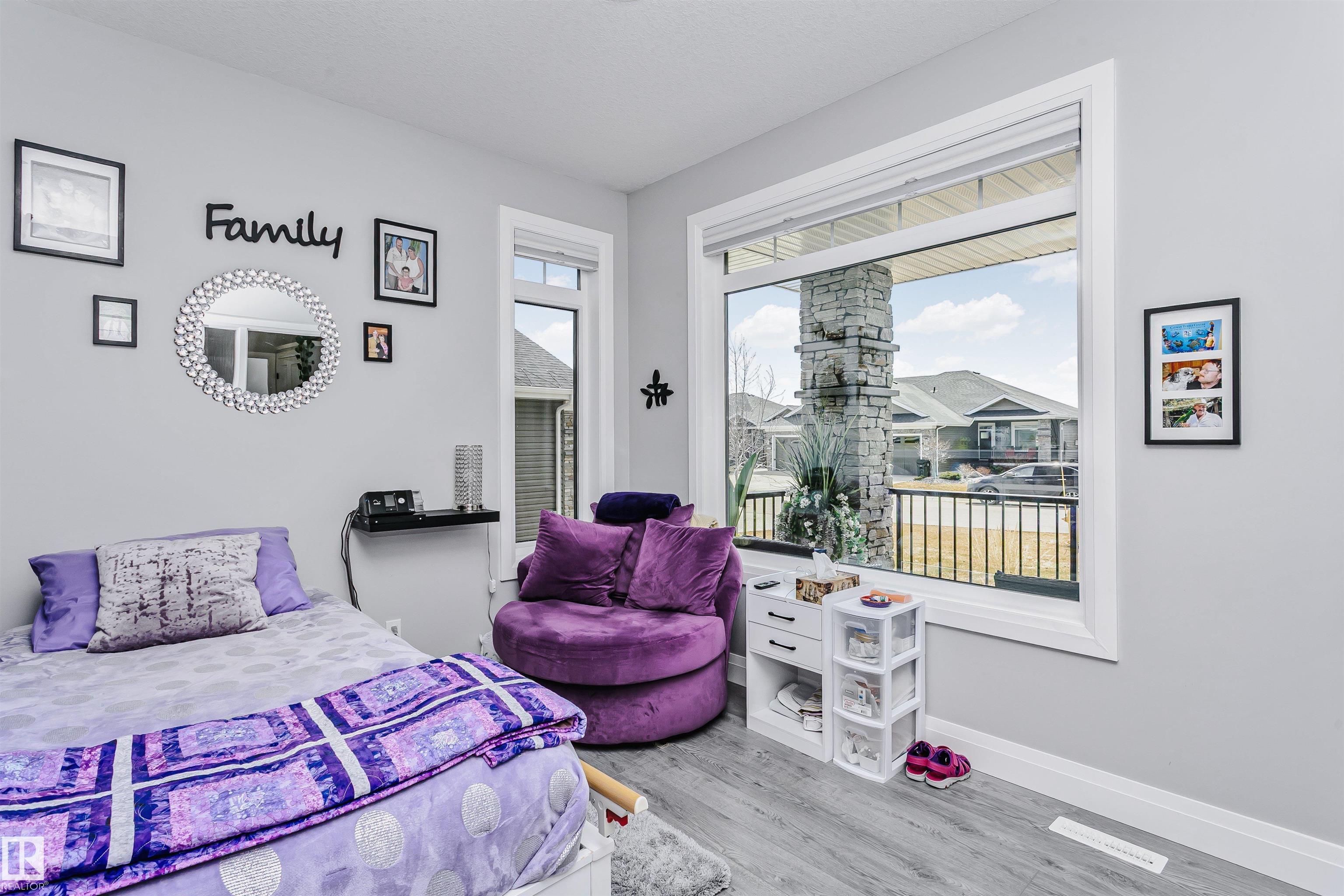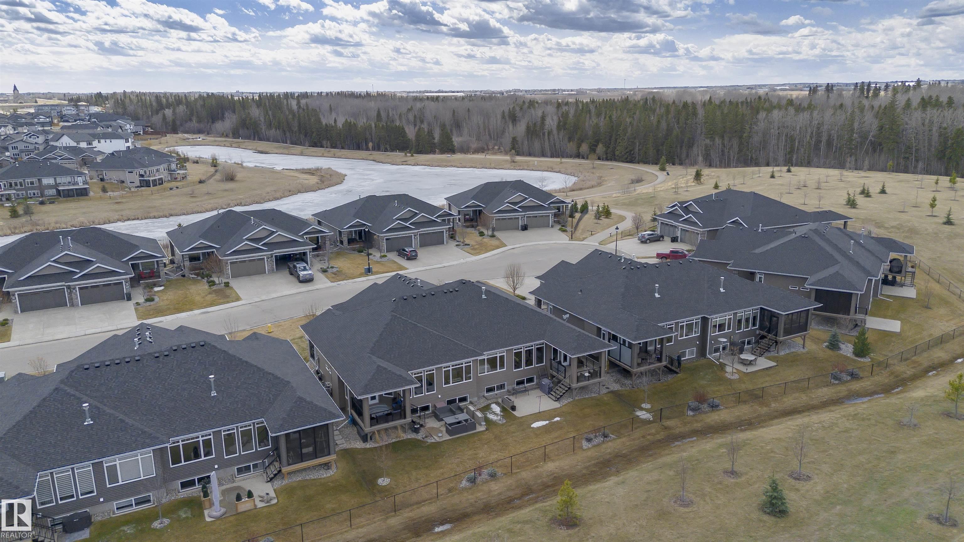 Rare 55+ bungalow duplex in a quiet cul-de-sac at Waters Edge Villas, backing onto the serene Atim Creek natural area. This elegant home offers an open-concept design with soaring ceilings, sun-filled spaces, & 2 cozy fireplaces. The upscale kitchen features rich maple cabinetry, quartz countertops, abundant storage, & a massive island?perfect for entertaining. Main floor showcases engineered hardwood & marble-inspired porcelain tile flooring, with floor-to-ceiling windows framing peaceful views. The king-sized primary retreat boasts a luxurious 5-piece ensuite. A second bedroom/office, 2-pc bath, & convenient laundry complete the main level. The fully developed basement offers a spacious family/games room with fireplace, wet bar, third bedroom, 4-pc bath, great storage area & large windows for natural light. Double attached finished garage (20x26) with 220V. Enjoy the covered deck, composite veranda, & low-maintenance living with HOA lawn care & snow removal. You won?t be disappointed!