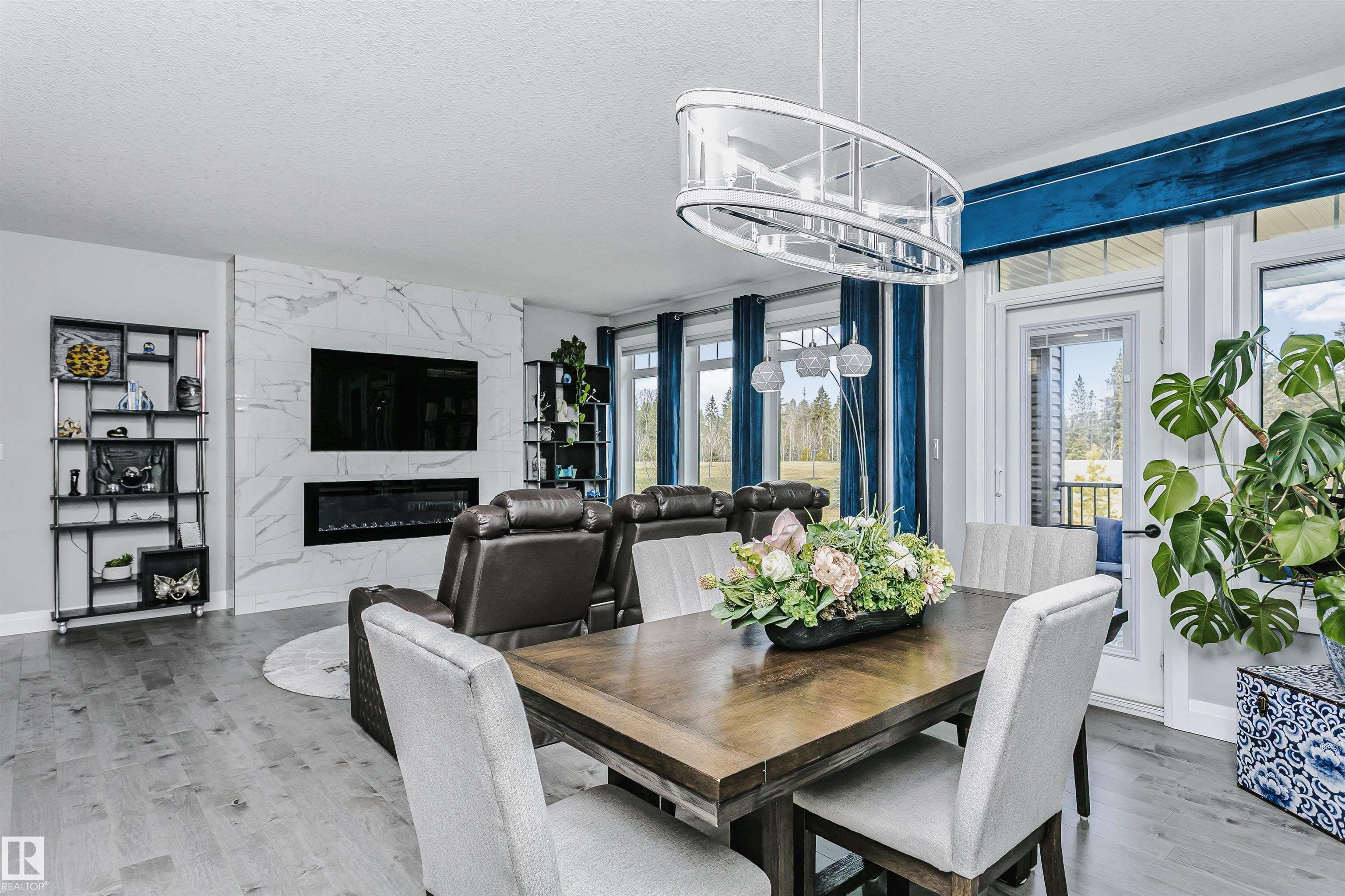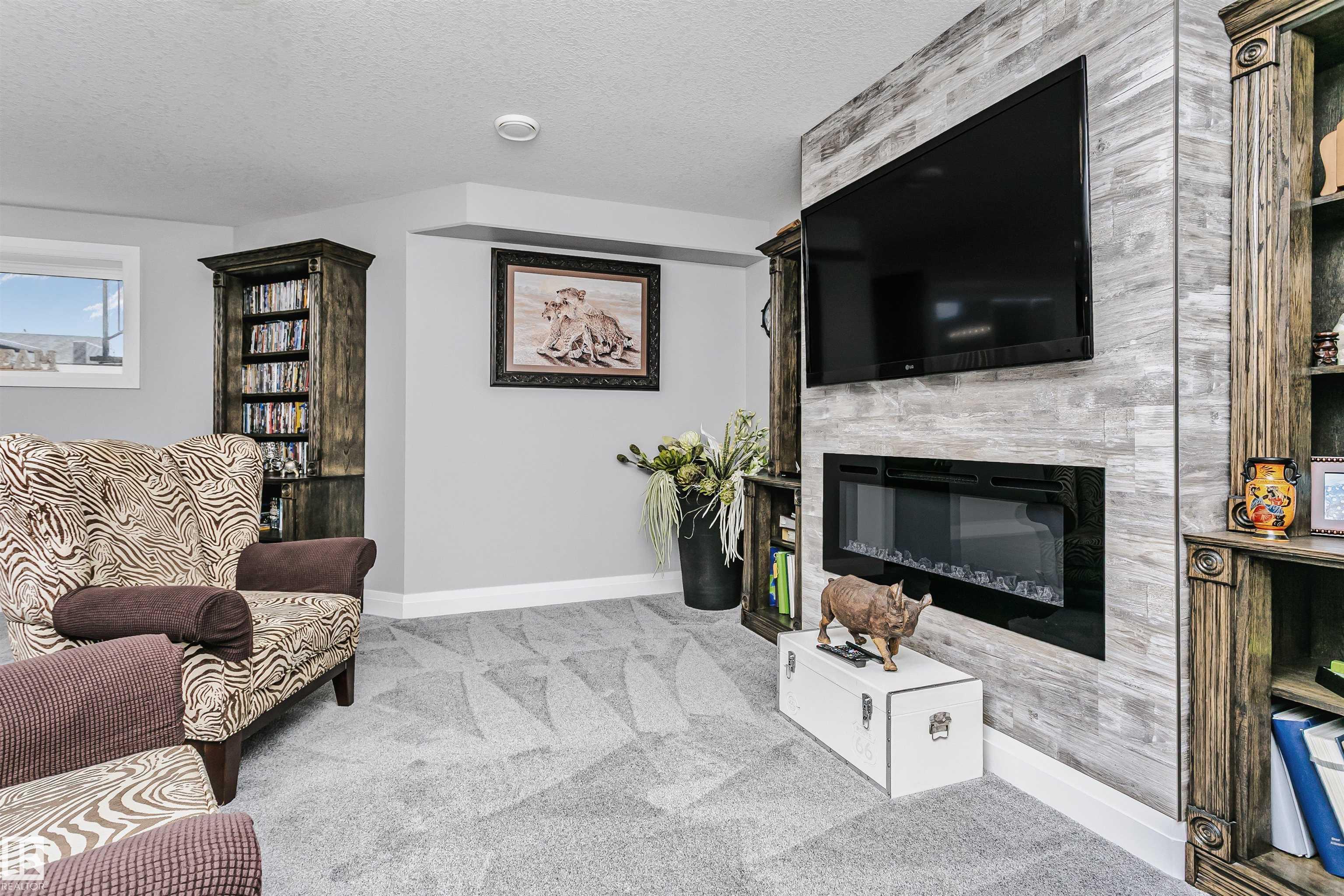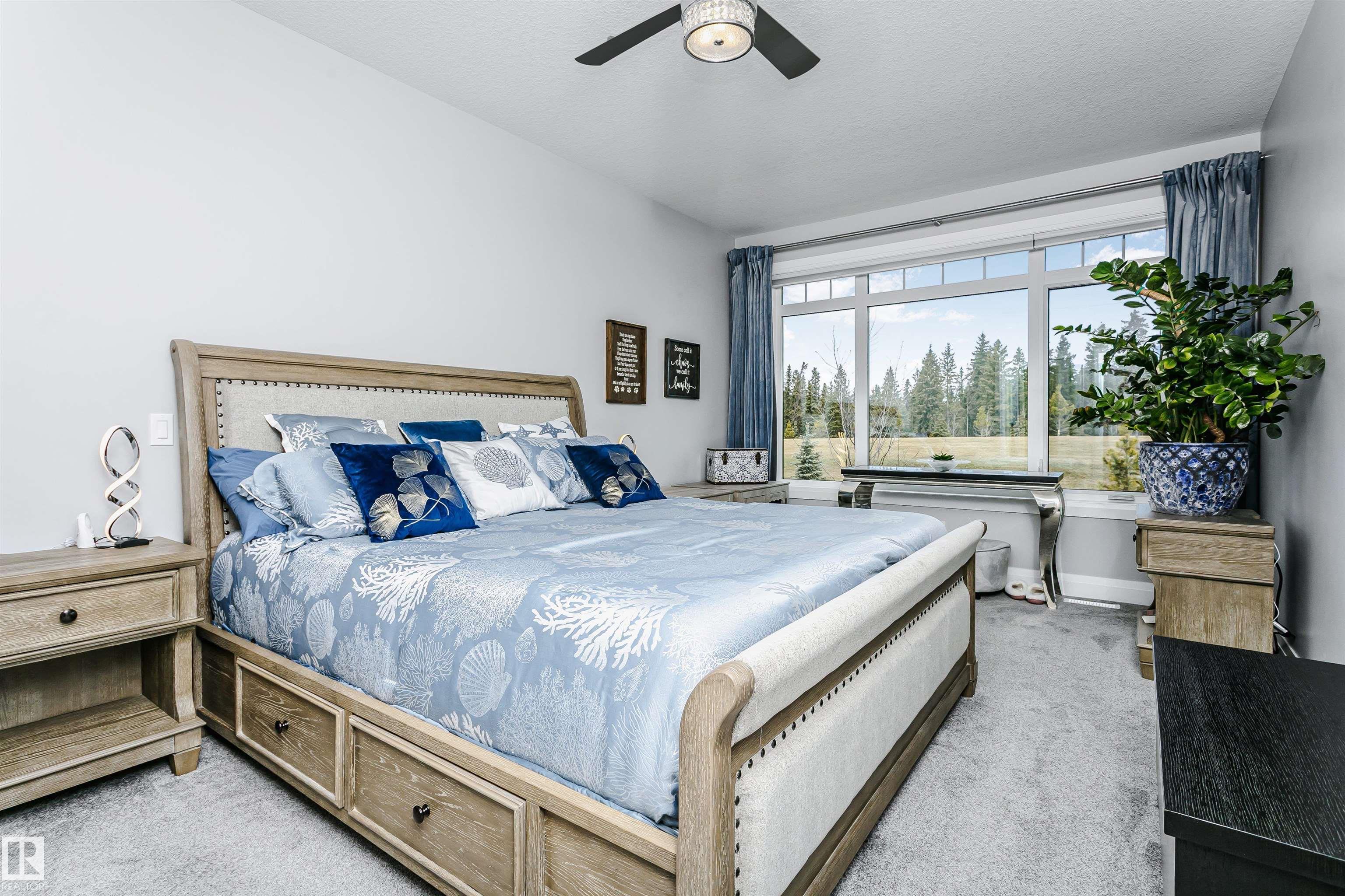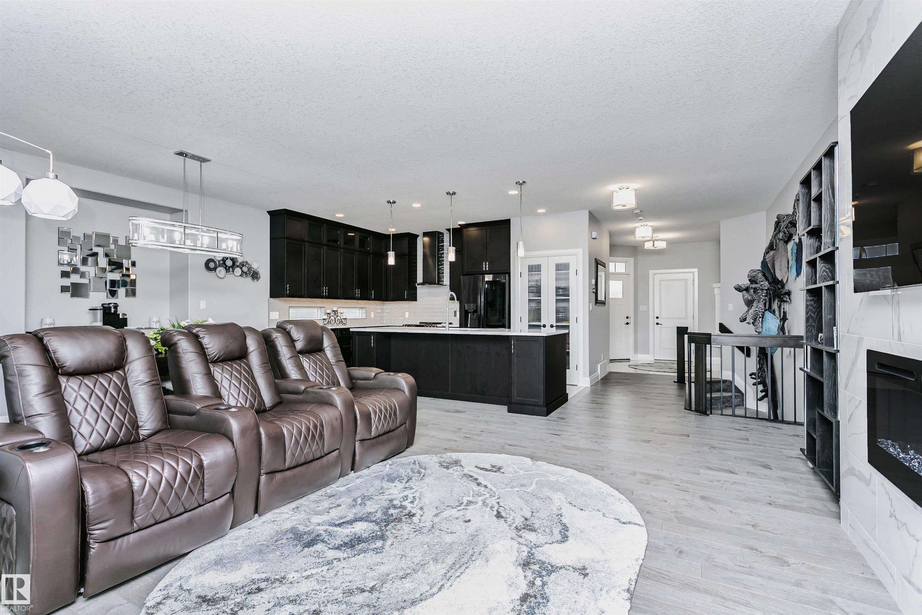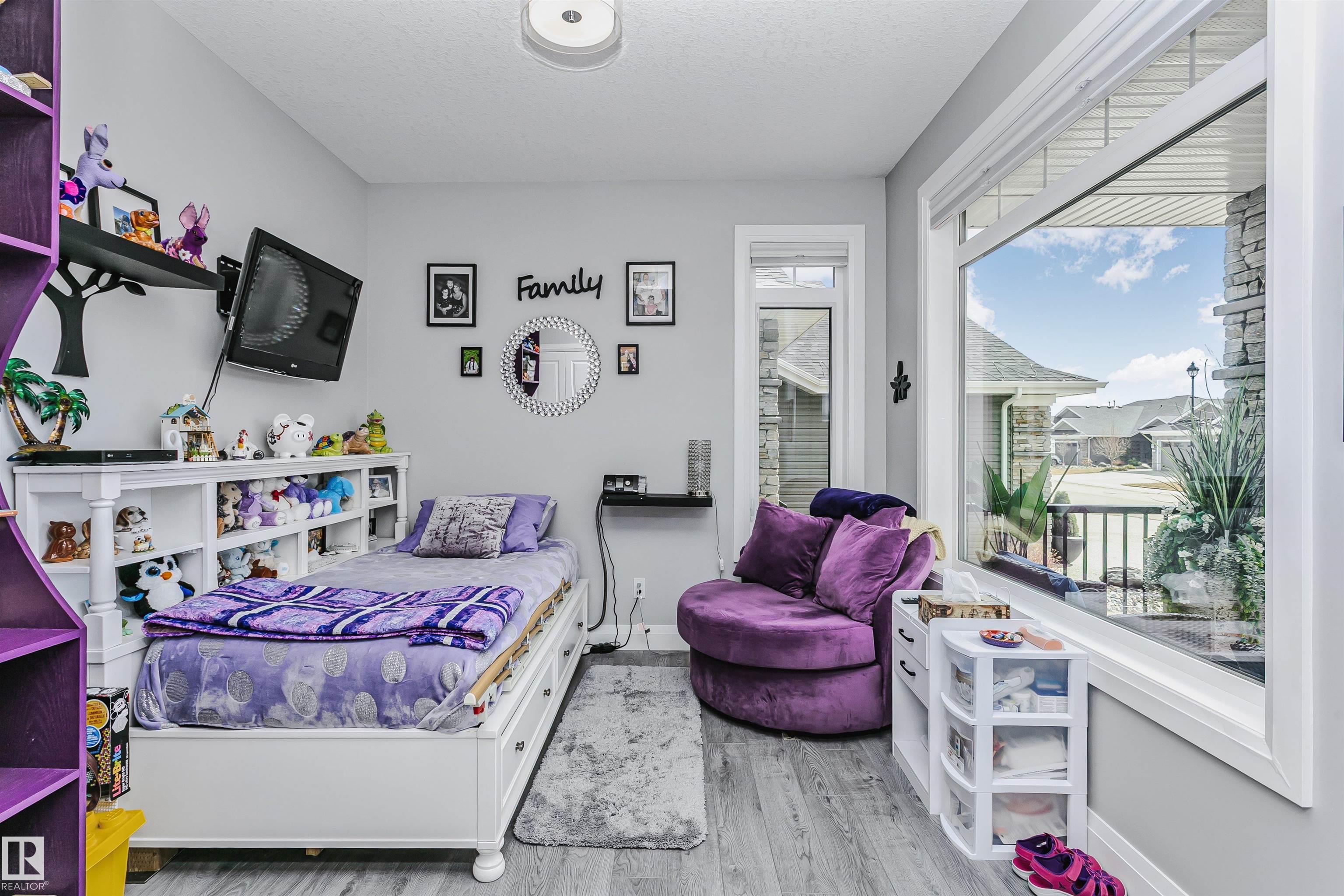 Rare 55+ bungalow duplex in a quiet cul-de-sac at Waters Edge Villas, backing onto the serene Atim Creek natural area. This elegant home offers an open-concept design with soaring ceilings, sun-filled spaces, & 2 cozy fireplaces. The upscale kitchen features rich maple cabinetry, quartz countertops, abundant storage, & a massive island?perfect for entertaining. Main floor showcases engineered hardwood & marble-inspired porcelain tile flooring, with floor-to-ceiling windows framing peaceful views. The king-sized primary retreat boasts a luxurious 5-piece ensuite. A second bedroom/office, 2-pc bath, & convenient laundry complete the main level. The fully developed basement offers a spacious family/games room with fireplace, wet bar, third bedroom, 4-pc bath, great storage area & large windows for natural light. Double attached finished garage (20x26) with 220V. Enjoy the covered deck, composite veranda, & low-maintenance living with HOA lawn care & snow removal. You won?t be disappointed!