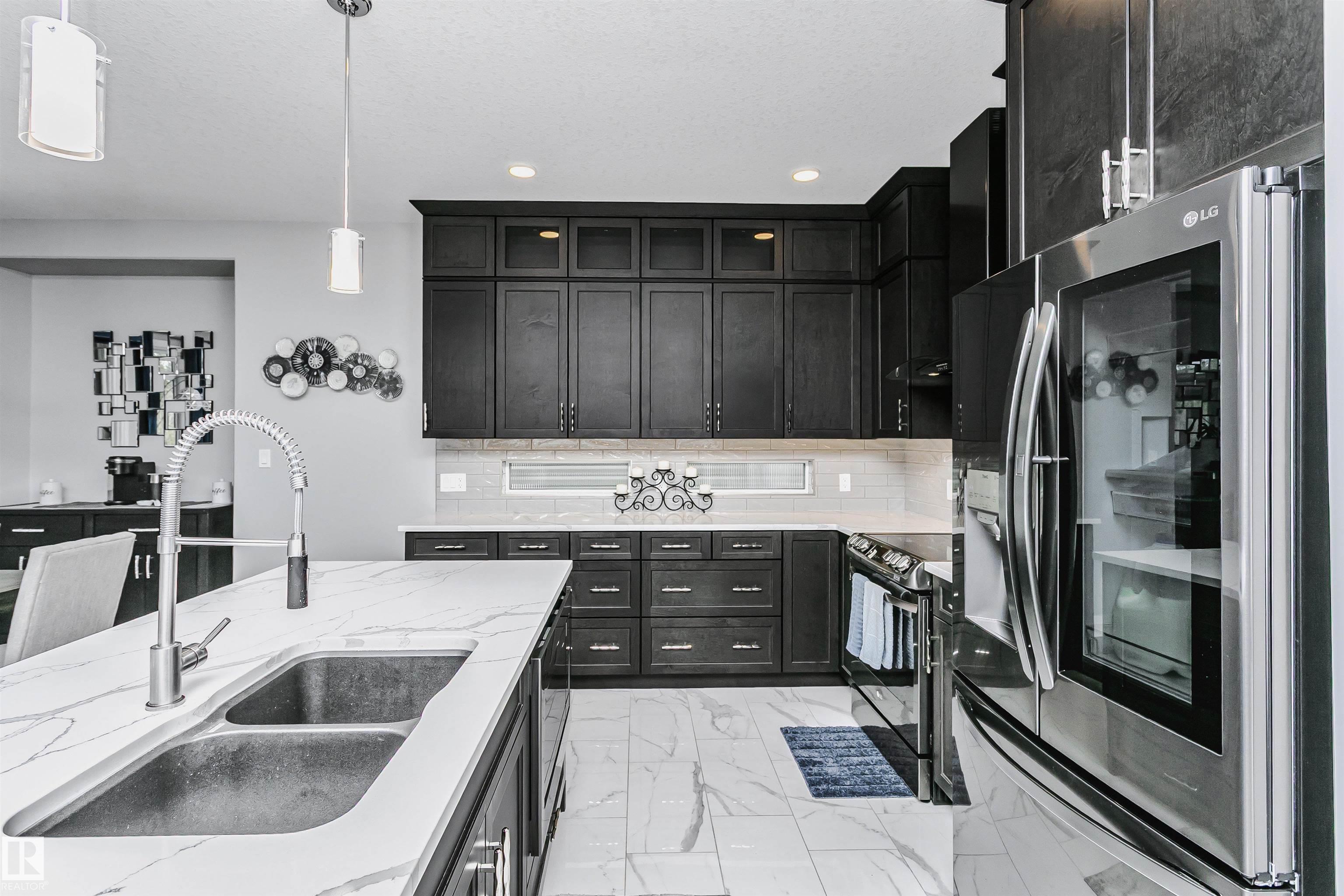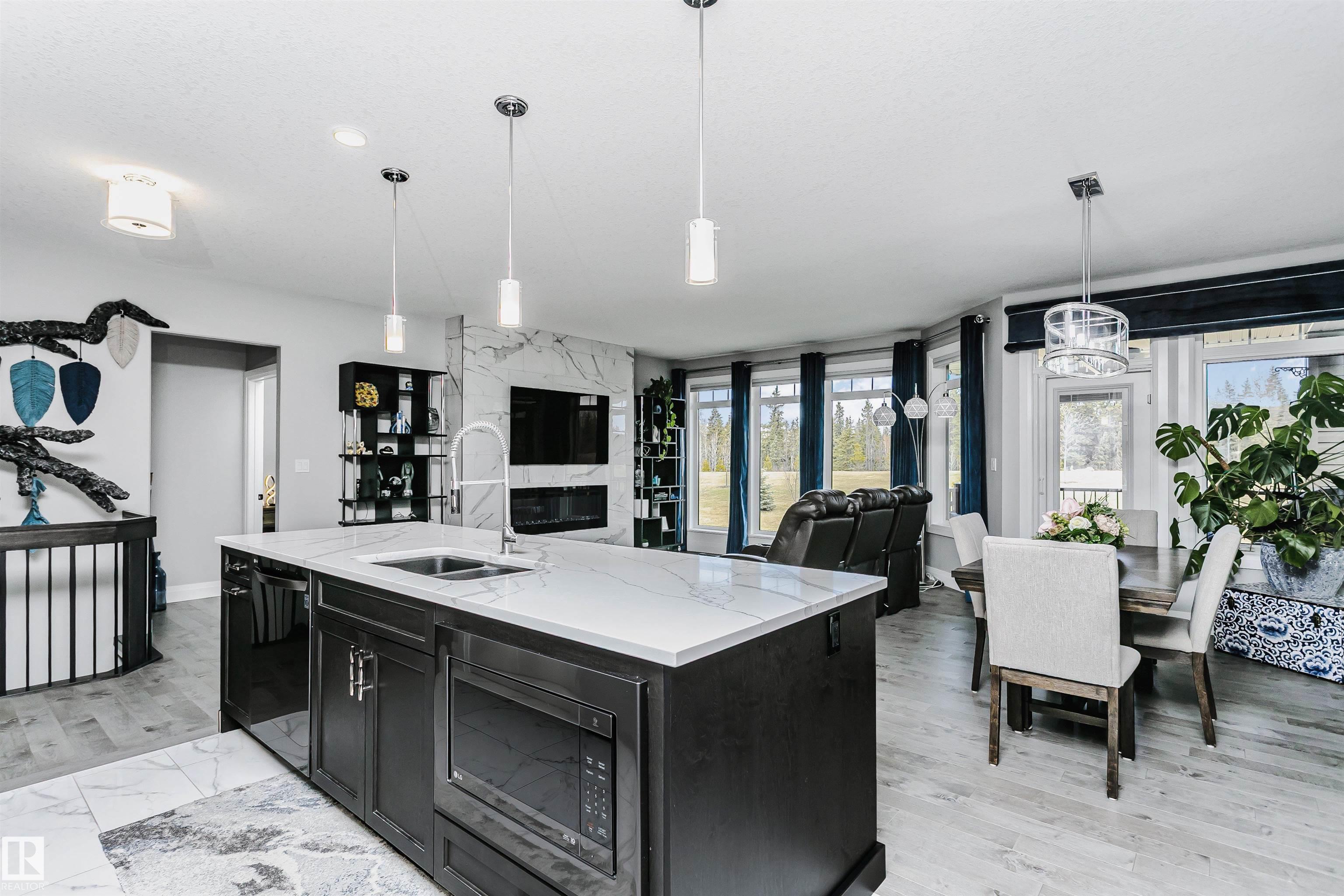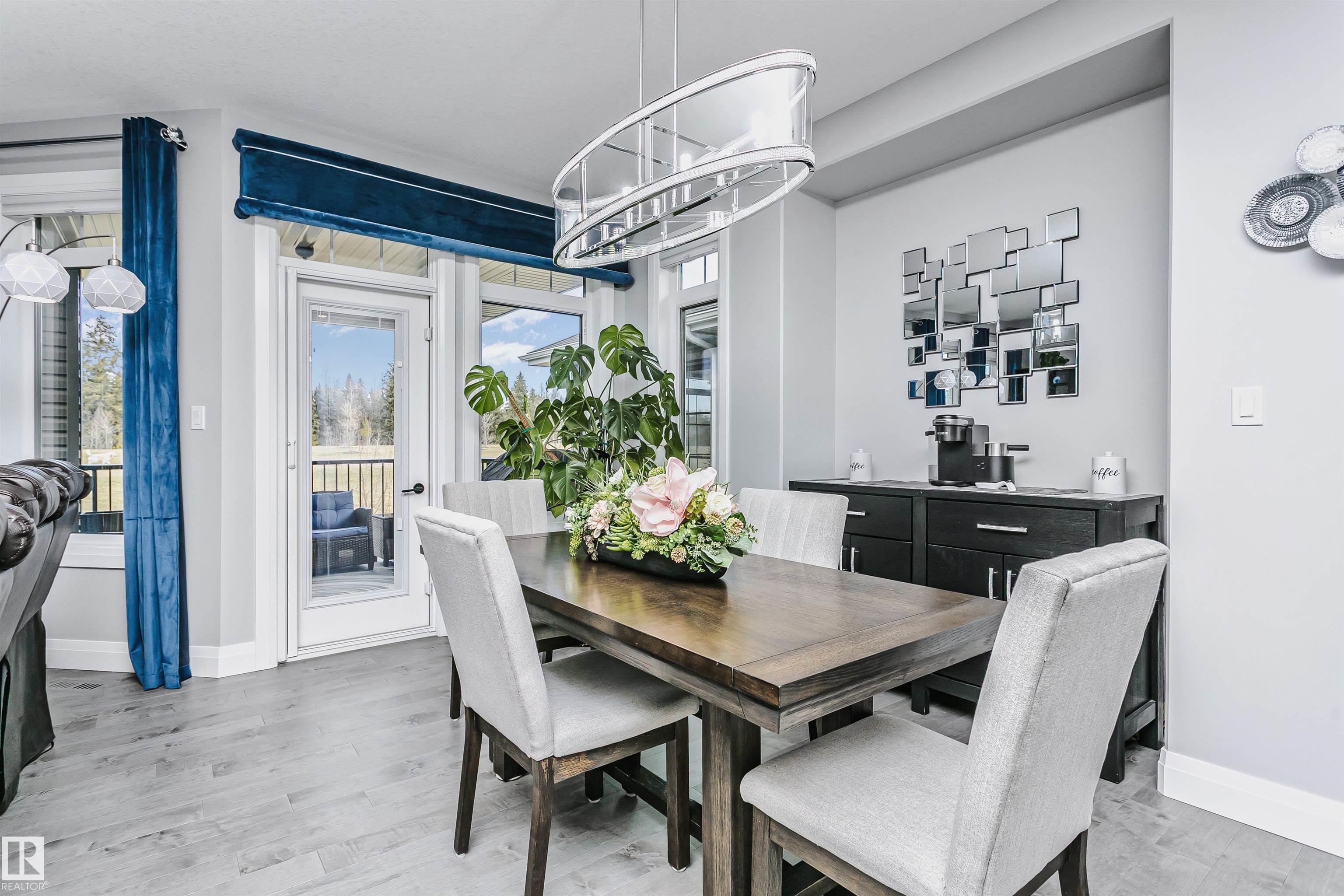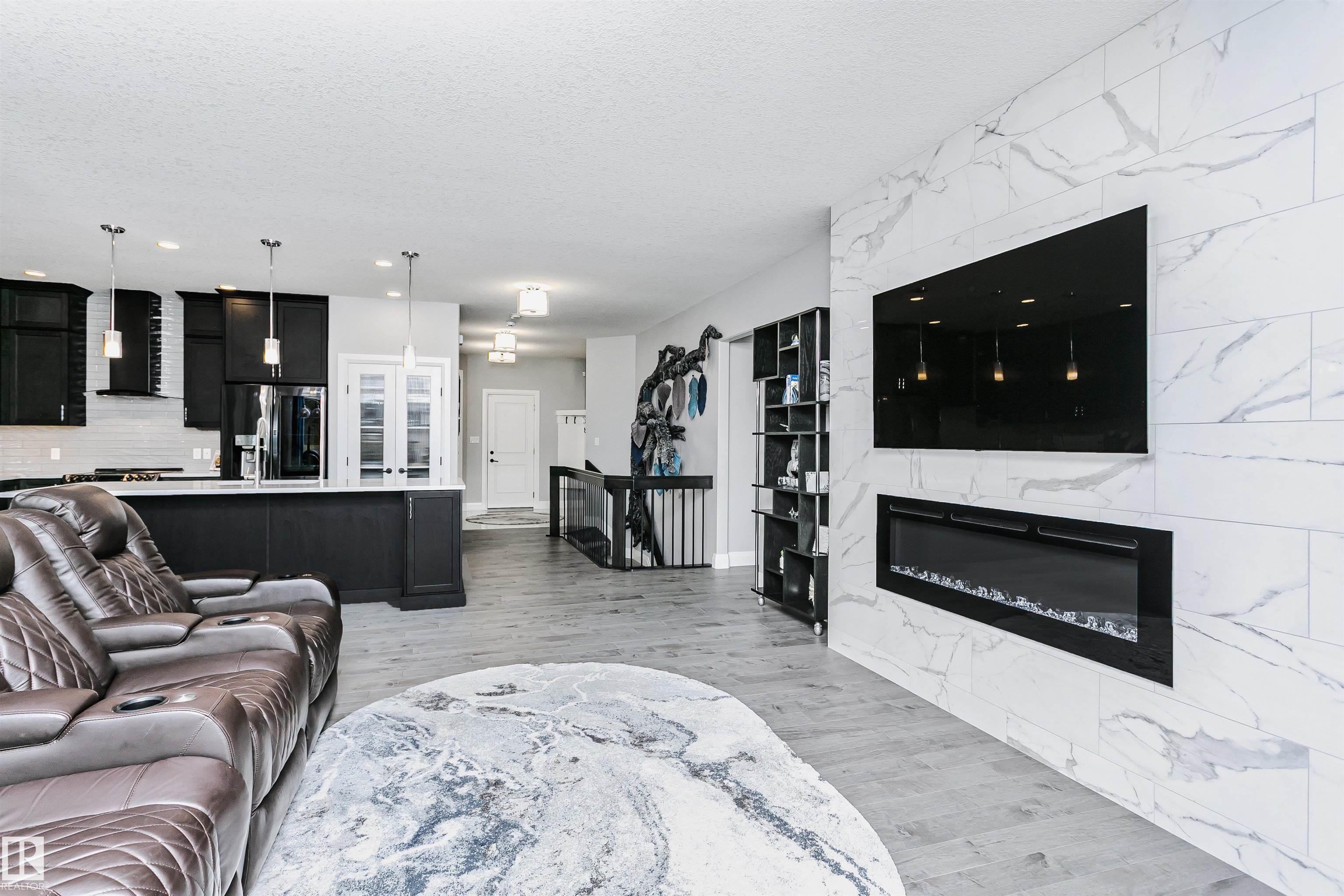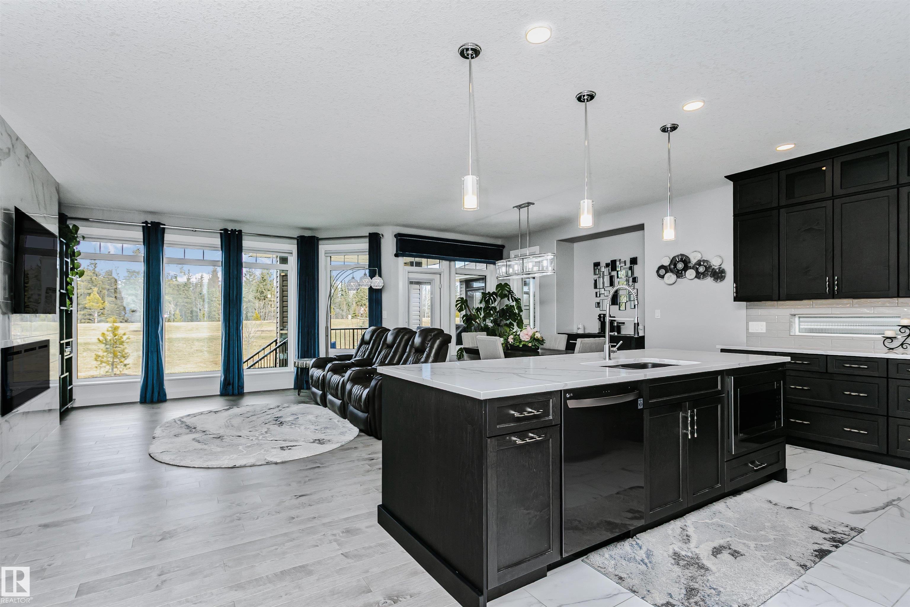 Rare 55+ bungalow duplex in a quiet cul-de-sac at Waters Edge Villas, backing onto the serene Atim Creek natural area. This elegant home offers an open-concept design with soaring ceilings, sun-filled spaces, & 2 cozy fireplaces. The upscale kitchen features rich maple cabinetry, quartz countertops, abundant storage, & a massive island?perfect for entertaining. Main floor showcases engineered hardwood & marble-inspired porcelain tile flooring, with floor-to-ceiling windows framing peaceful views. The king-sized primary retreat boasts a luxurious 5-piece ensuite. A second bedroom/office, 2-pc bath, & convenient laundry complete the main level. The fully developed basement offers a spacious family/games room with fireplace, wet bar, third bedroom, 4-pc bath, great storage area & large windows for natural light. Double attached finished garage (20x26) with 220V. Enjoy the covered deck, composite veranda, & low-maintenance living with HOA lawn care & snow removal. You won?t be disappointed!