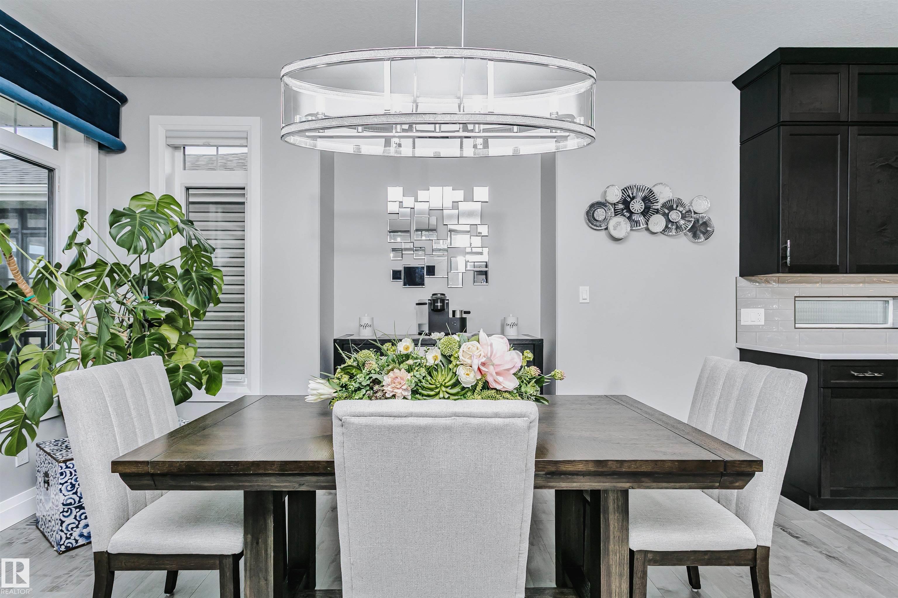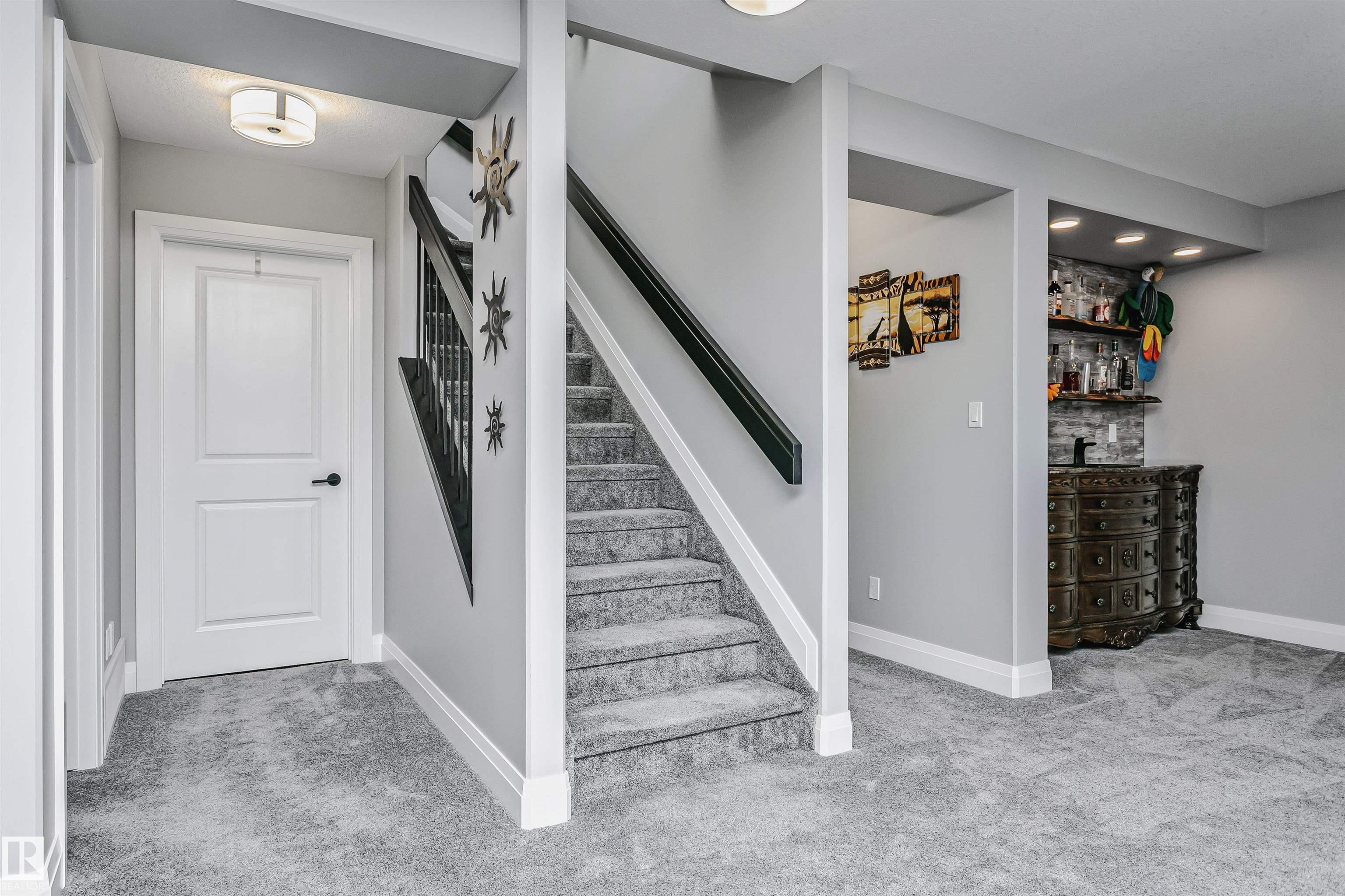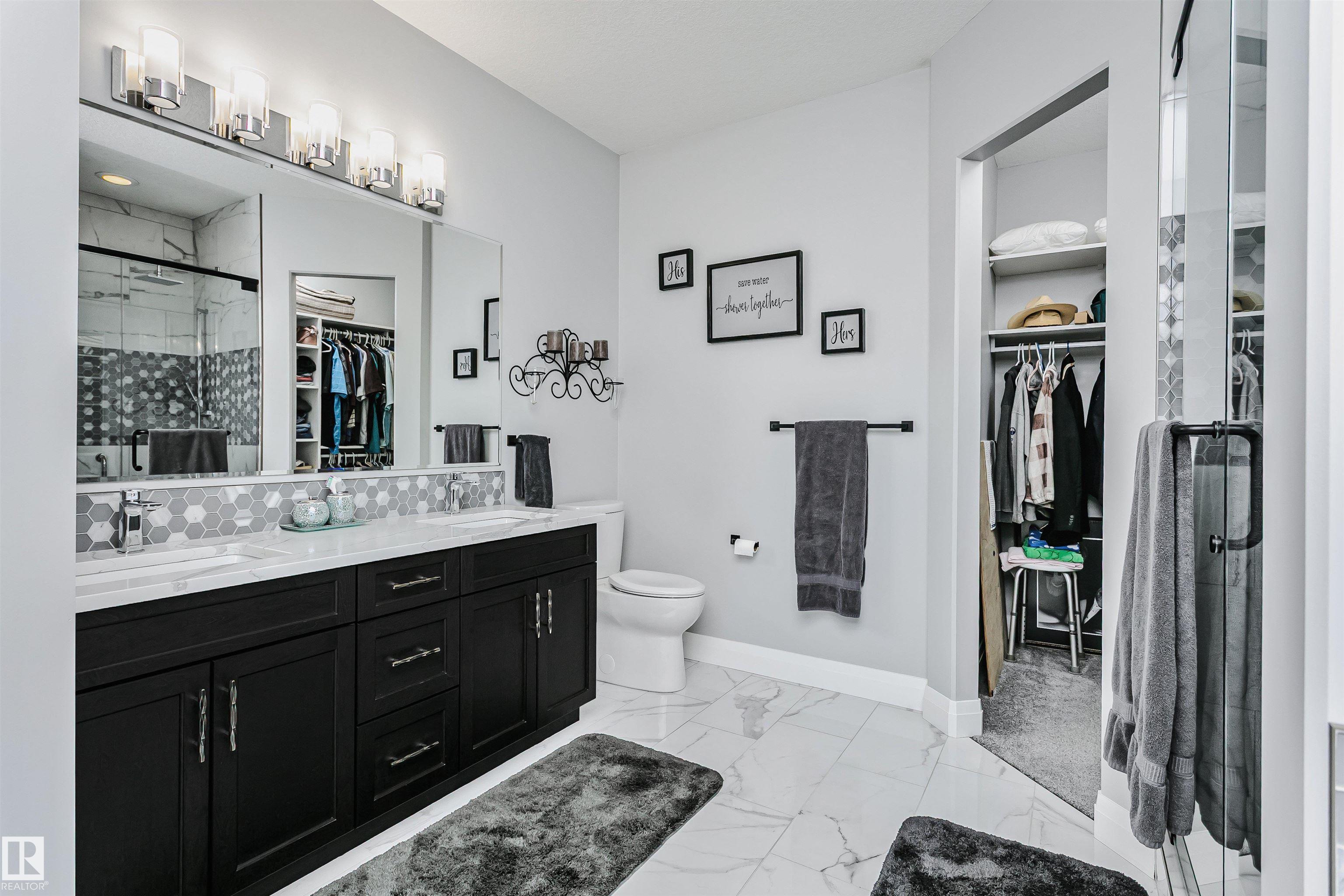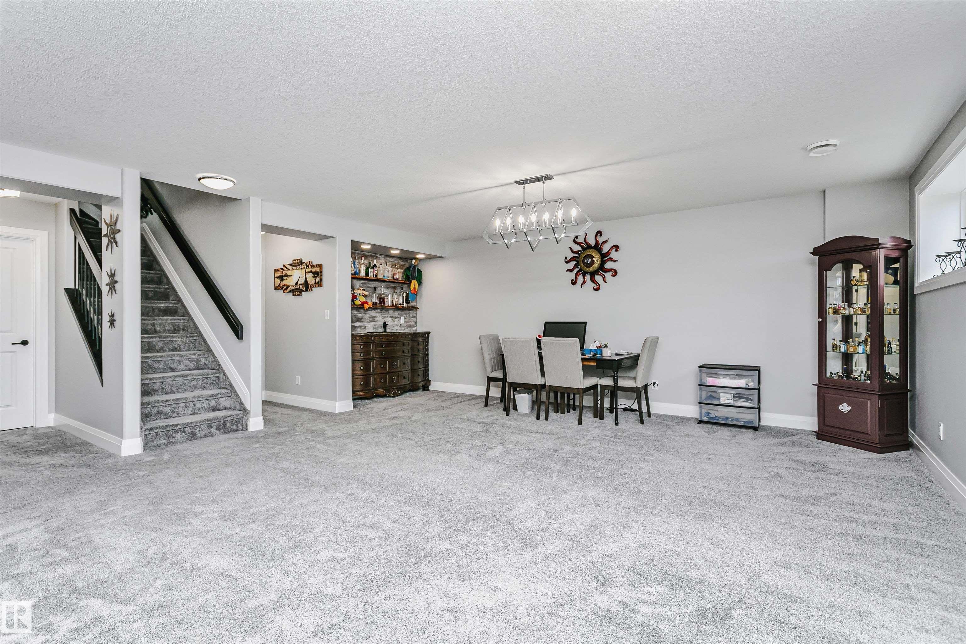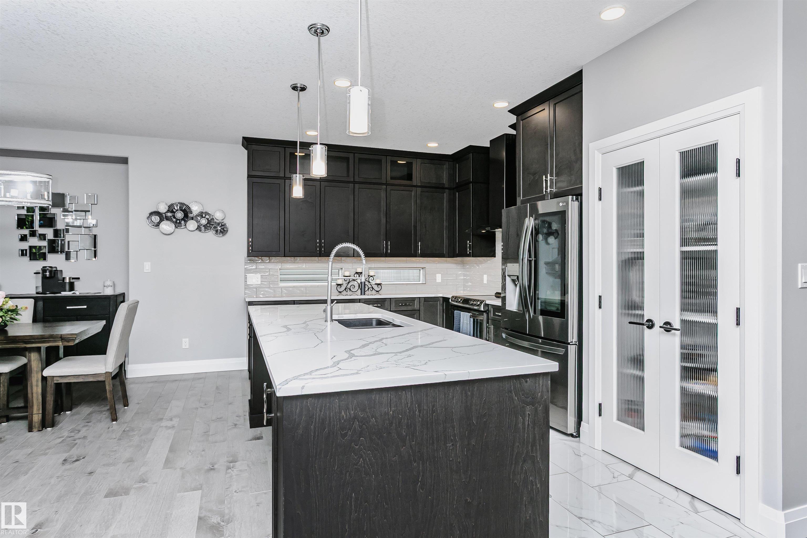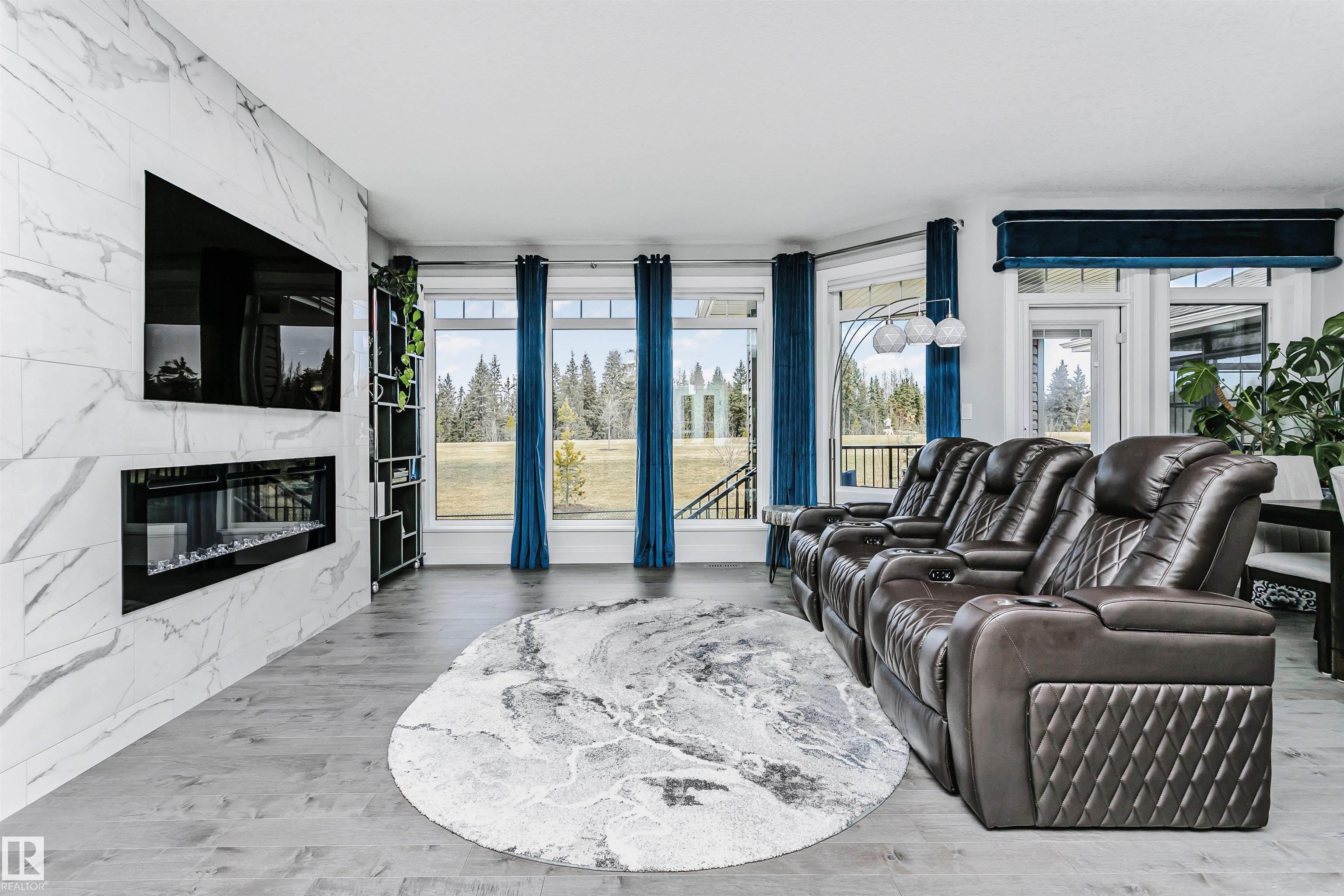 Rare 55+ bungalow duplex in a quiet cul-de-sac at Waters Edge Villas, backing onto the serene Atim Creek natural area. This elegant home offers an open-concept design with soaring ceilings, sun-filled spaces, & 2 cozy fireplaces. The upscale kitchen features rich maple cabinetry, quartz countertops, abundant storage, & a massive island?perfect for entertaining. Main floor showcases engineered hardwood & marble-inspired porcelain tile flooring, with floor-to-ceiling windows framing peaceful views. The king-sized primary retreat boasts a luxurious 5-piece ensuite. A second bedroom/office, 2-pc bath, & convenient laundry complete the main level. The fully developed basement offers a spacious family/games room with fireplace, wet bar, third bedroom, 4-pc bath, great storage area & large windows for natural light. Double attached finished garage (20x26) with 220V. Enjoy the covered deck, composite veranda, & low-maintenance living with HOA lawn care & snow removal. You won?t be disappointed!