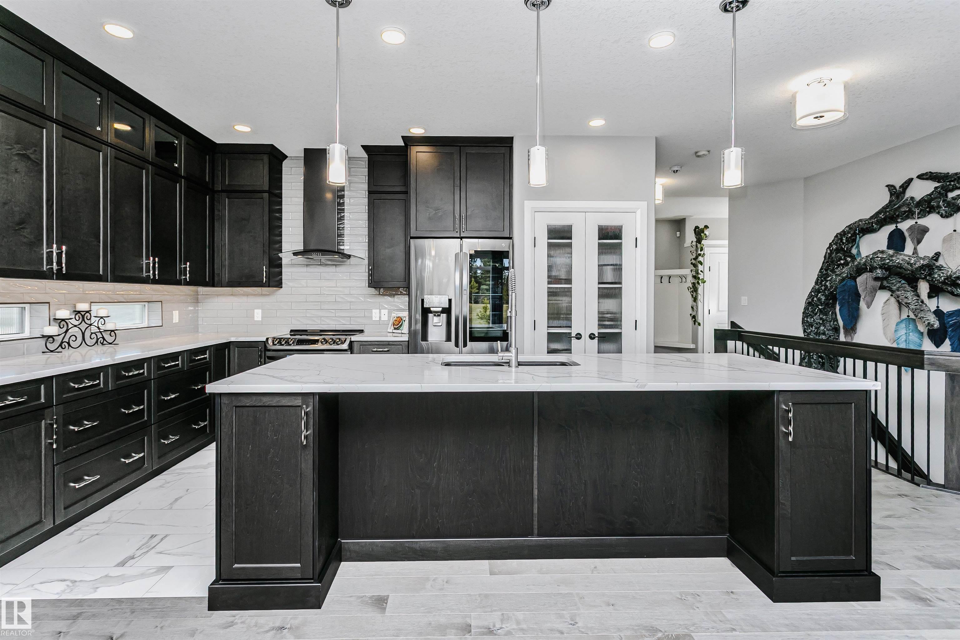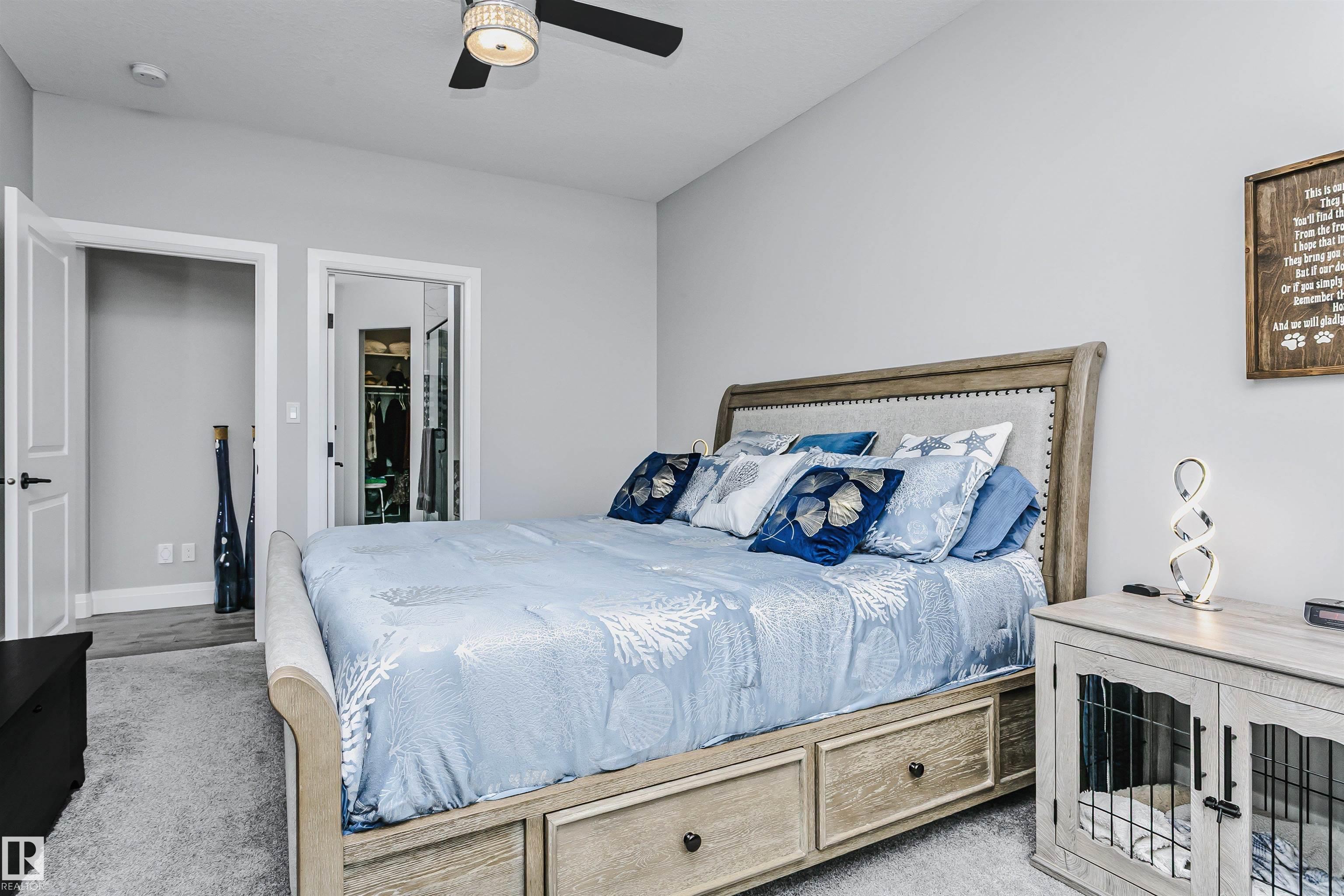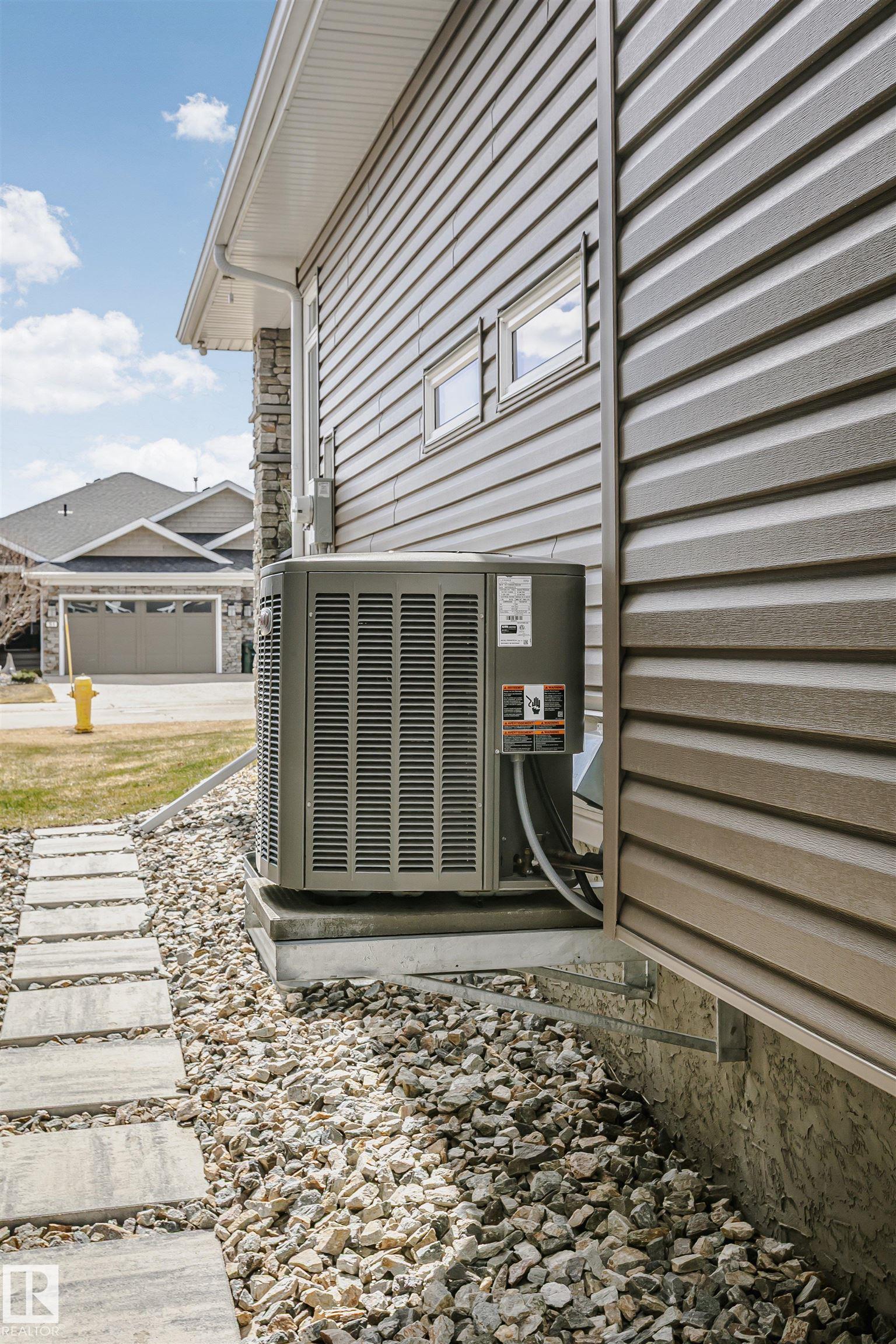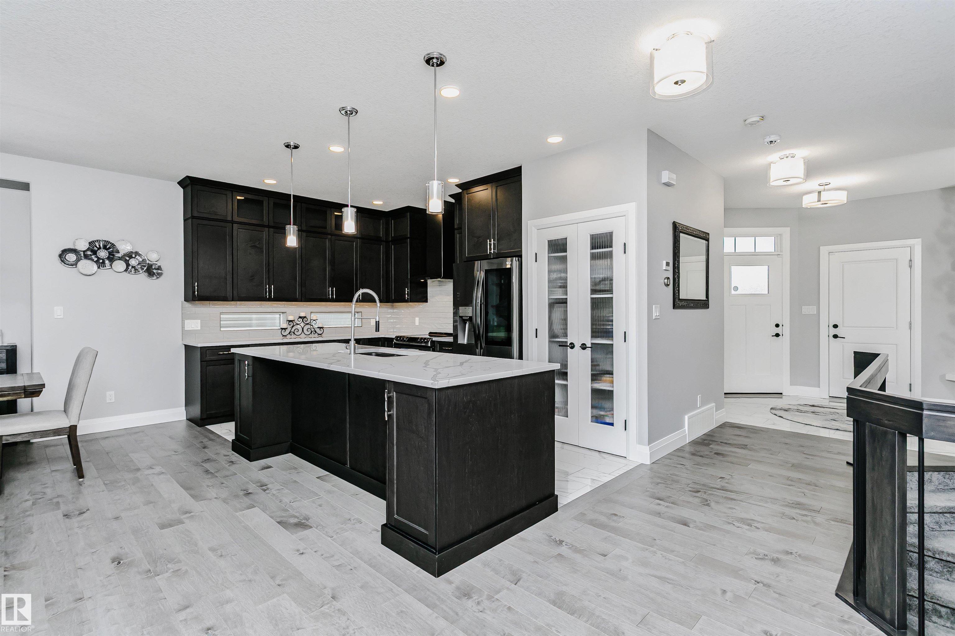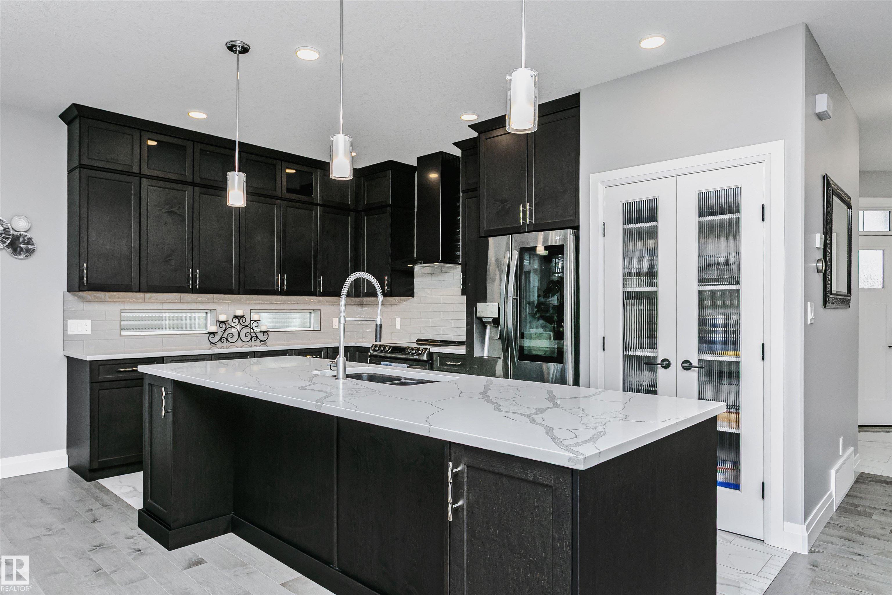 Rare 55+ bungalow duplex in a quiet cul-de-sac at Waters Edge Villas, backing onto the serene Atim Creek natural area. This elegant home offers an open-concept design with soaring ceilings, sun-filled spaces, & 2 cozy fireplaces. The upscale kitchen features rich maple cabinetry, quartz countertops, abundant storage, & a massive island?perfect for entertaining. Main floor showcases engineered hardwood & marble-inspired porcelain tile flooring, with floor-to-ceiling windows framing peaceful views. The king-sized primary retreat boasts a luxurious 5-piece ensuite. A second bedroom/office, 2-pc bath, & convenient laundry complete the main level. The fully developed basement offers a spacious family/games room with fireplace, wet bar, third bedroom, 4-pc bath, great storage area & large windows for natural light. Double attached finished garage (20x26) with 220V. Enjoy the covered deck, composite veranda, & low-maintenance living with HOA lawn care & snow removal. You won?t be disappointed!