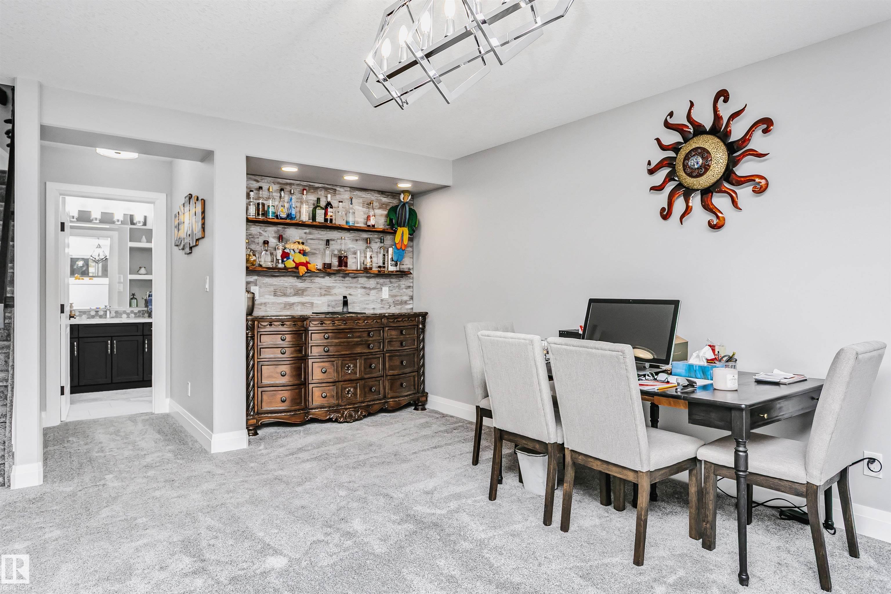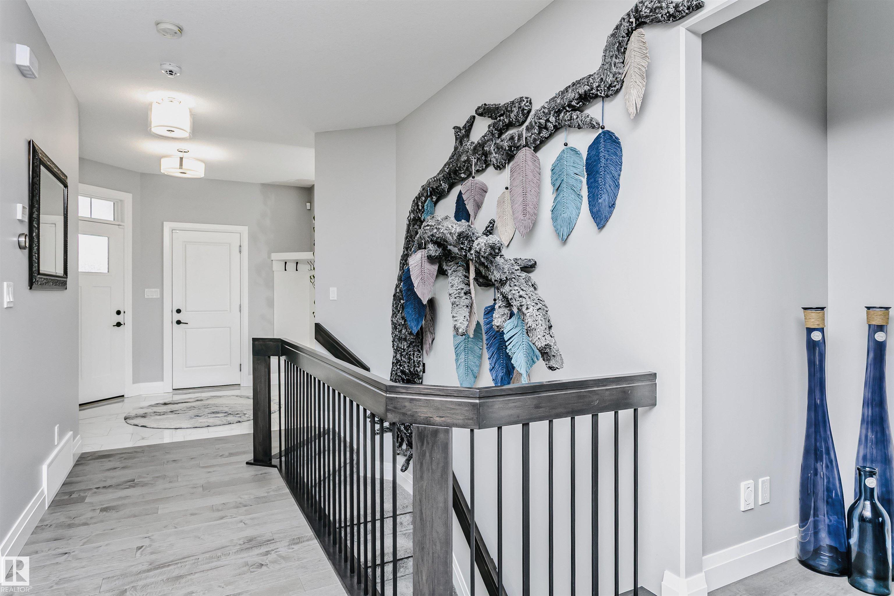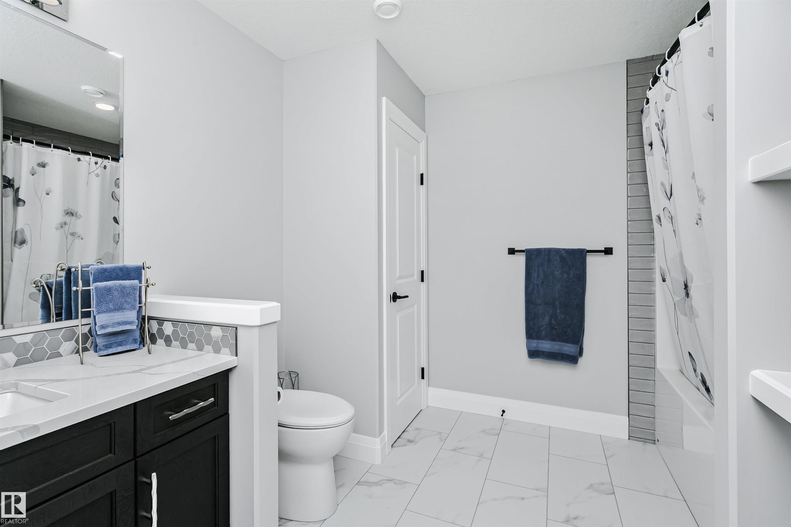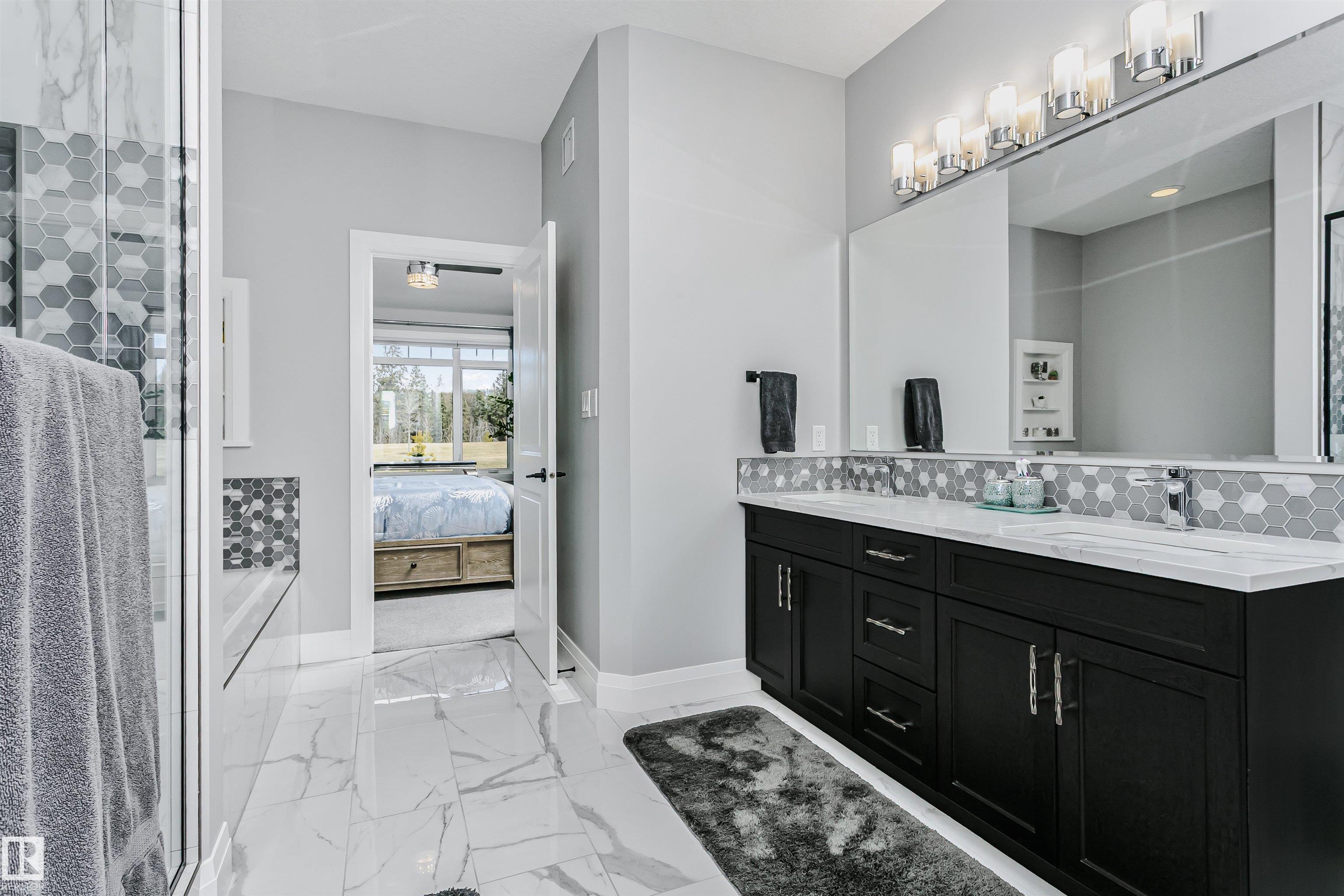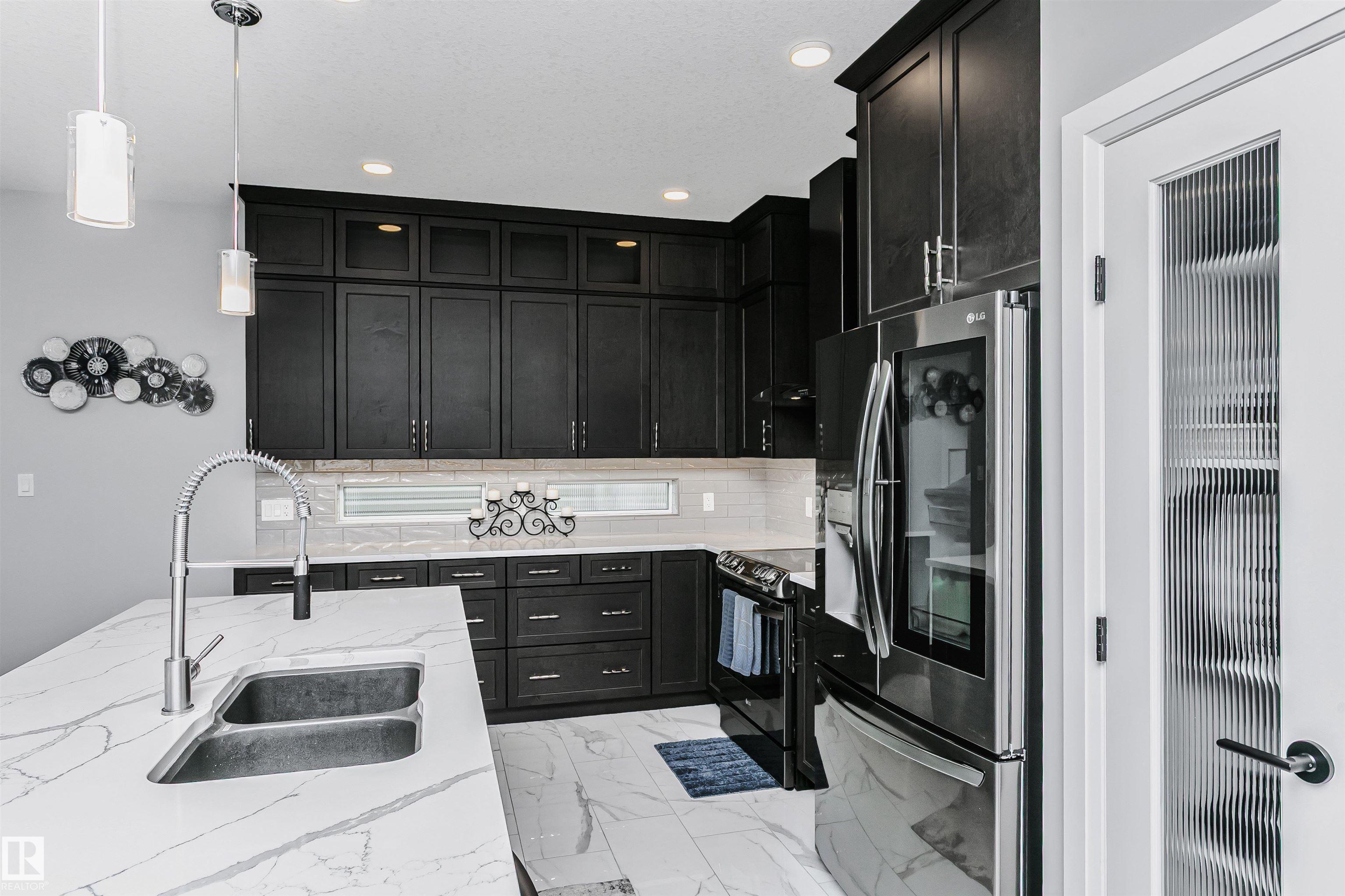 Rare 55+ bungalow duplex in a quiet cul-de-sac at Waters Edge Villas, backing onto the serene Atim Creek natural area. This elegant home offers an open-concept design with soaring ceilings, sun-filled spaces, & 2 cozy fireplaces. The upscale kitchen features rich maple cabinetry, quartz countertops, abundant storage, & a massive island?perfect for entertaining. Main floor showcases engineered hardwood & marble-inspired porcelain tile flooring, with floor-to-ceiling windows framing peaceful views. The king-sized primary retreat boasts a luxurious 5-piece ensuite. A second bedroom/office, 2-pc bath, & convenient laundry complete the main level. The fully developed basement offers a spacious family/games room with fireplace, wet bar, third bedroom, 4-pc bath, great storage area & large windows for natural light. Double attached finished garage (20x26) with 220V. Enjoy the covered deck, composite veranda, & low-maintenance living with HOA lawn care & snow removal. You won?t be disappointed!