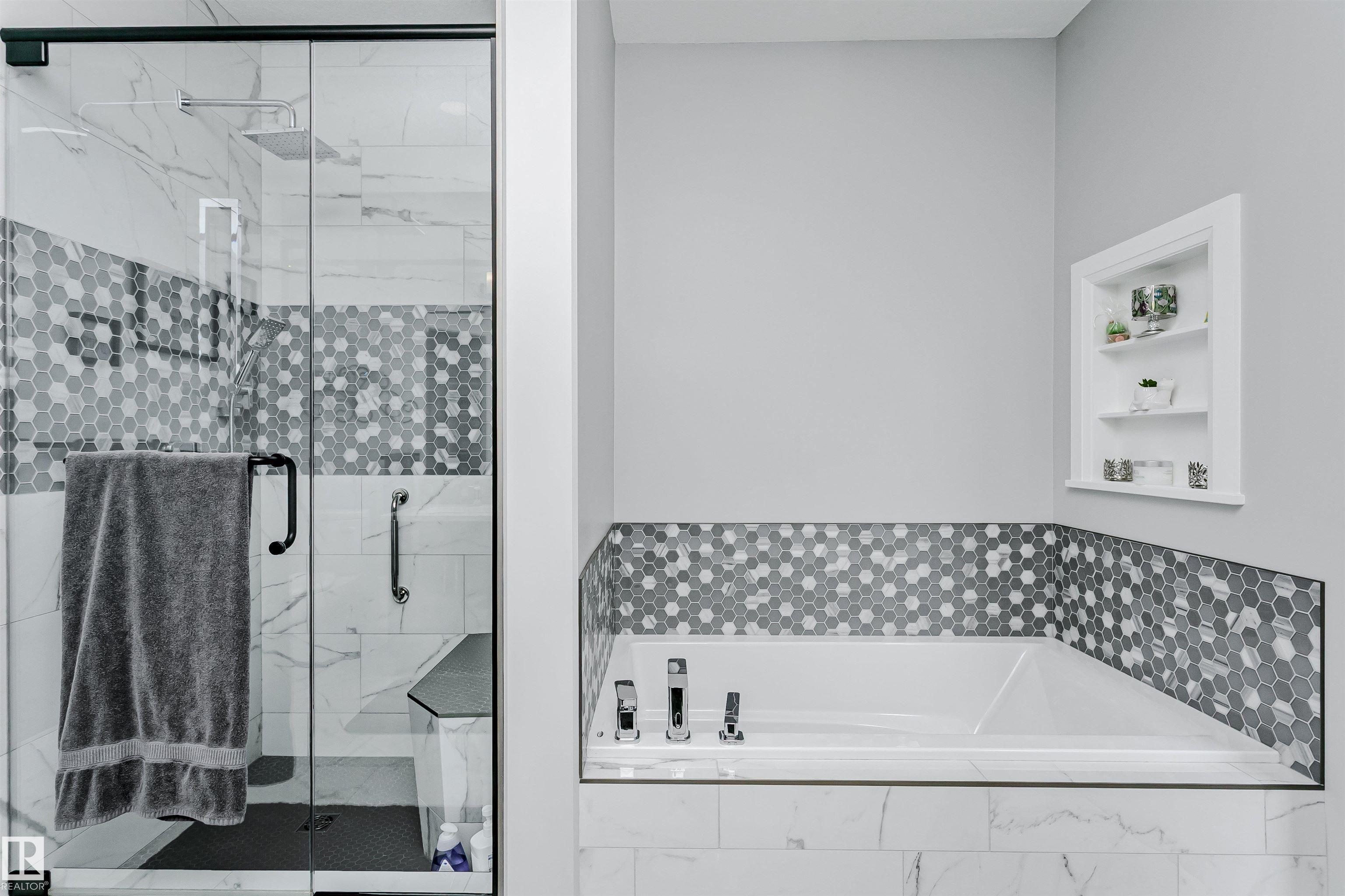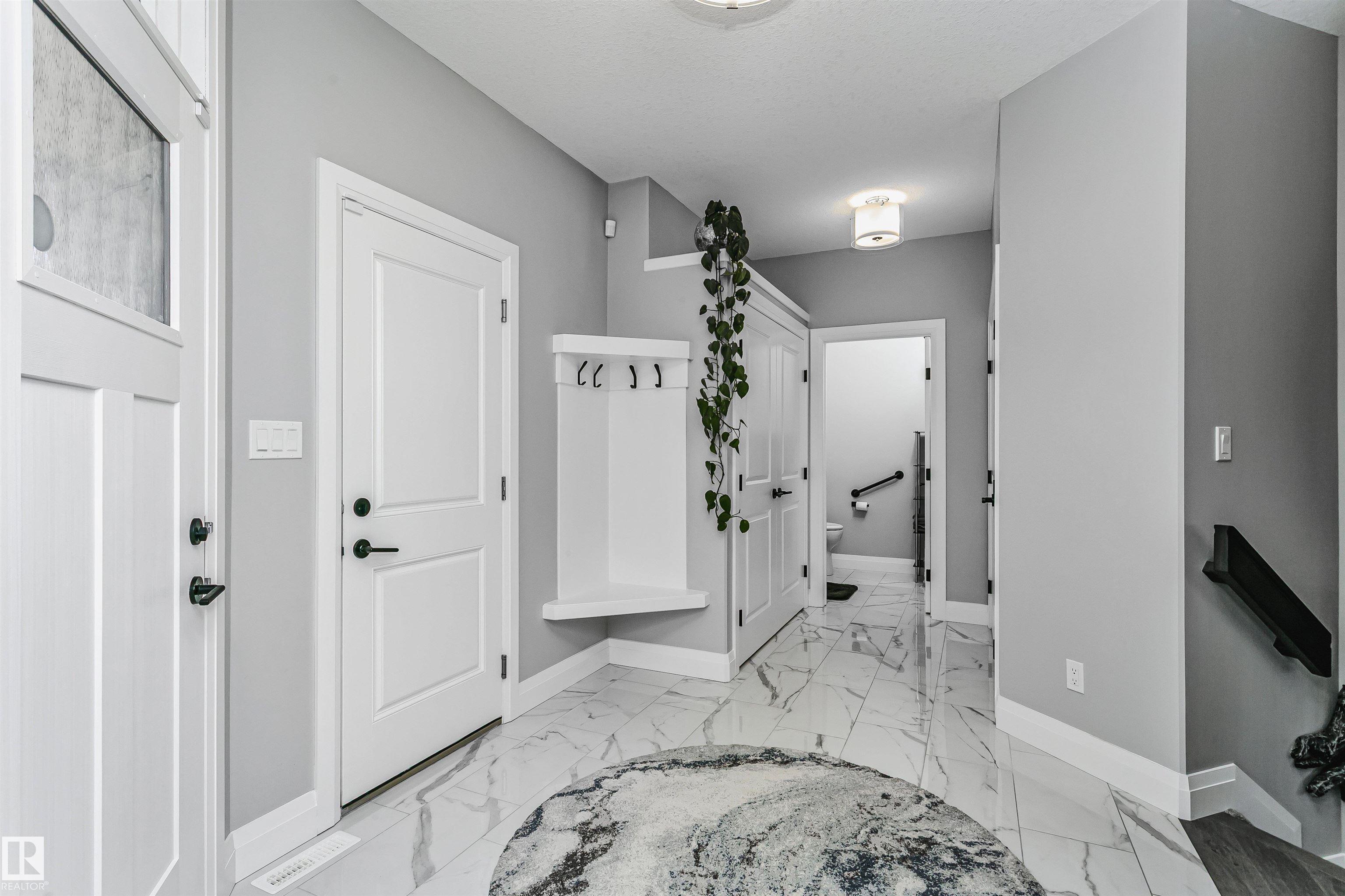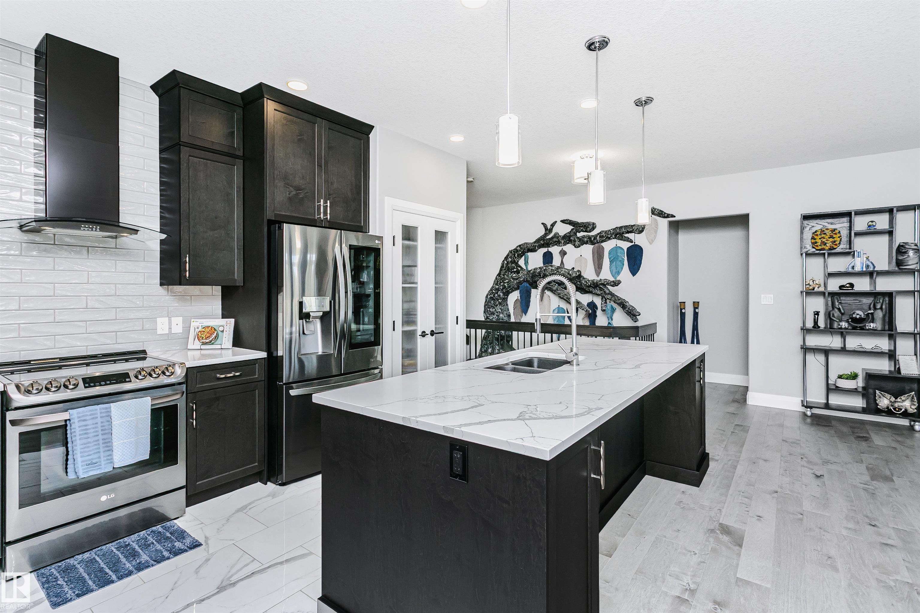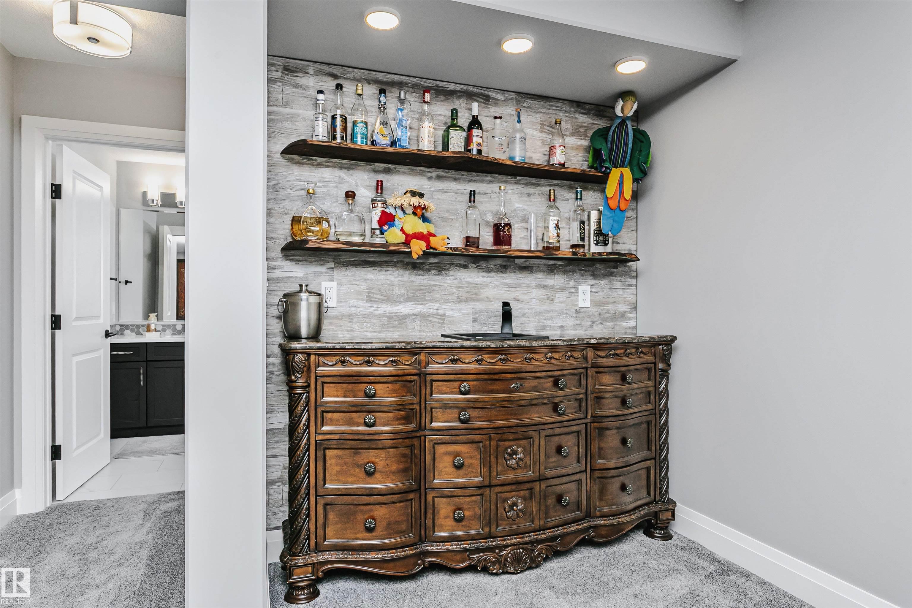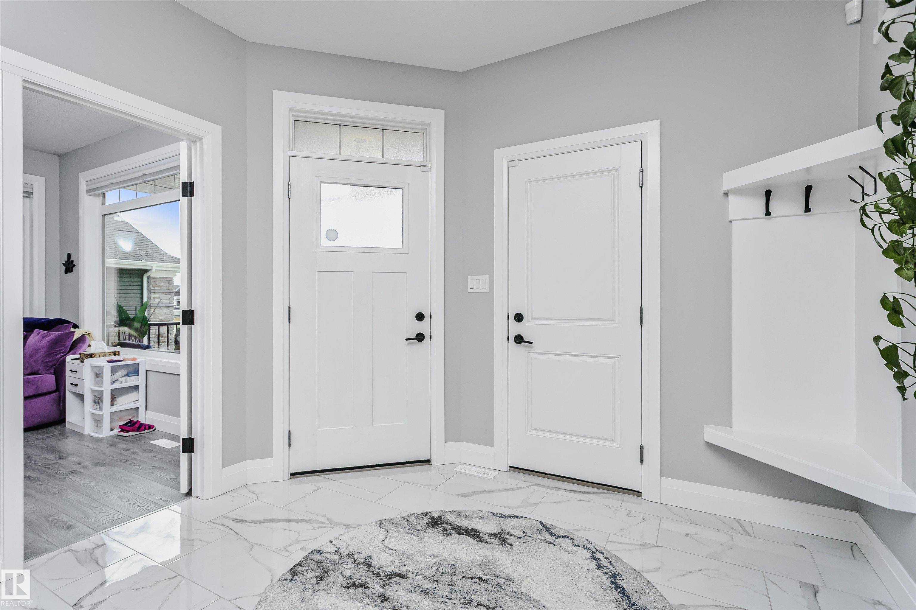 Rare 55+ bungalow duplex in a quiet cul-de-sac at Waters Edge Villas, backing onto the serene Atim Creek natural area. This elegant home offers an open-concept design with soaring ceilings, sun-filled spaces, & 2 cozy fireplaces. The upscale kitchen features rich maple cabinetry, quartz countertops, abundant storage, & a massive island?perfect for entertaining. Main floor showcases engineered hardwood & marble-inspired porcelain tile flooring, with floor-to-ceiling windows framing peaceful views. The king-sized primary retreat boasts a luxurious 5-piece ensuite. A second bedroom/office, 2-pc bath, & convenient laundry complete the main level. The fully developed basement offers a spacious family/games room with fireplace, wet bar, third bedroom, 4-pc bath, great storage area & large windows for natural light. Double attached finished garage (20x26) with 220V. Enjoy the covered deck, composite veranda, & low-maintenance living with HOA lawn care & snow removal. You won?t be disappointed!