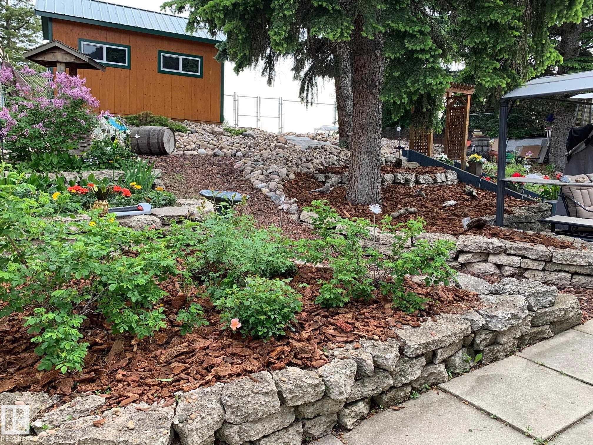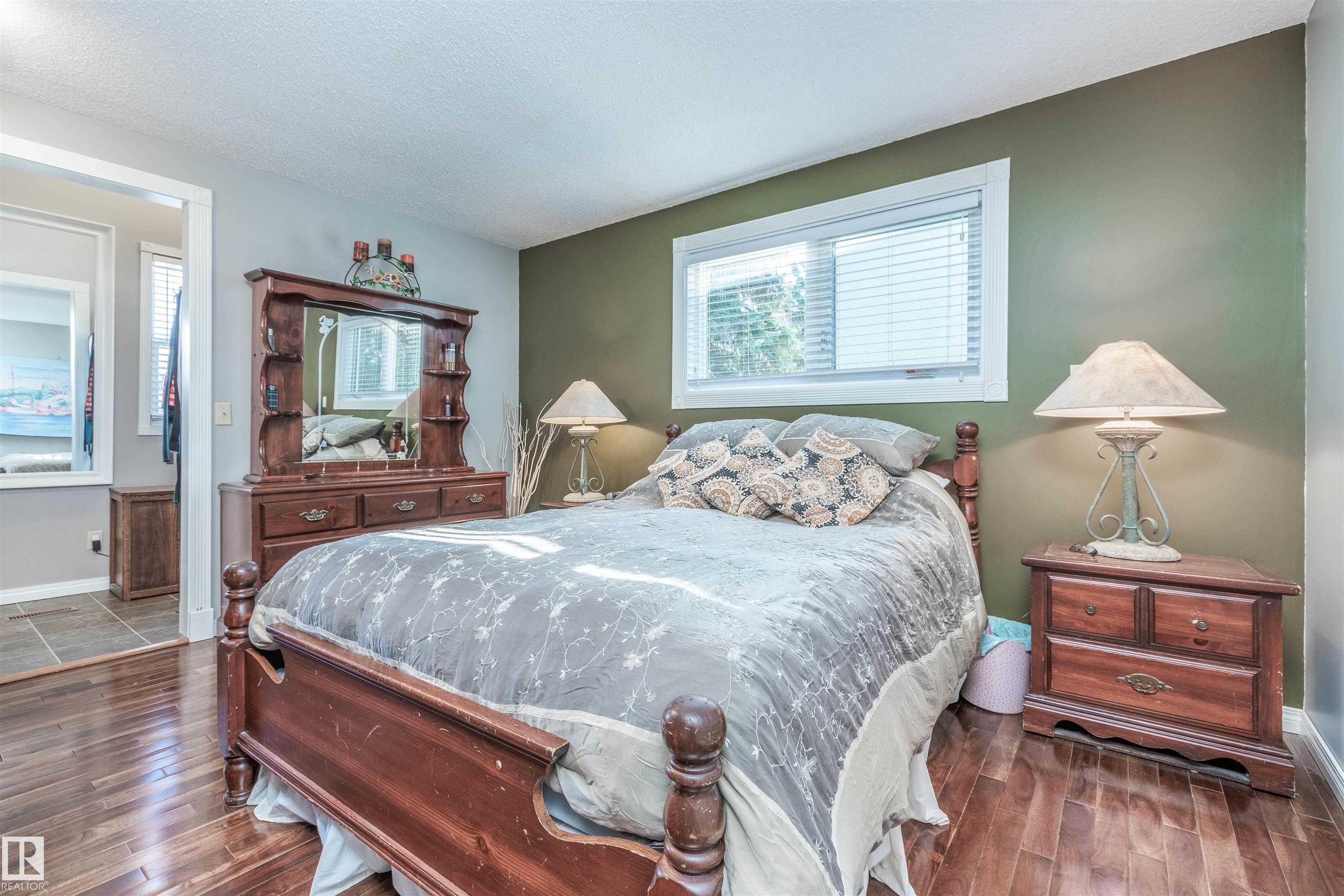 Warm, inviting this well cared for 3 bdrm bungalow offers comfortable living space inside and out. A large walk in closet at entrance, bright living room with rich hardwood floors, large windows and a brick facing fireplace that creates a cozy focal point. The dining area offers great space for family meals and entertaining, while the functional kitchen includes ample cabinetry & island workspace. The primary bedroom is spacious and inviting with hardwood flooring and generous natural light with 2 pc ensuite and large walk in closet with 3 windows. Downstairs, the finished basement adds excellent flexibility with a large rec room, wet bar, built-in shelving and plenty of room for games, movie nights or hobbies with 2nd wood Fireplace. 3 pc bath, You will also appreciate the heated garage/workshop space with storage and room for projects. BACKS onto Granville Park connecting 2 elementary schools. New Roof, New concrete, newer siding & windows, Furnace and HW tank 10 years old. A Real GEM
