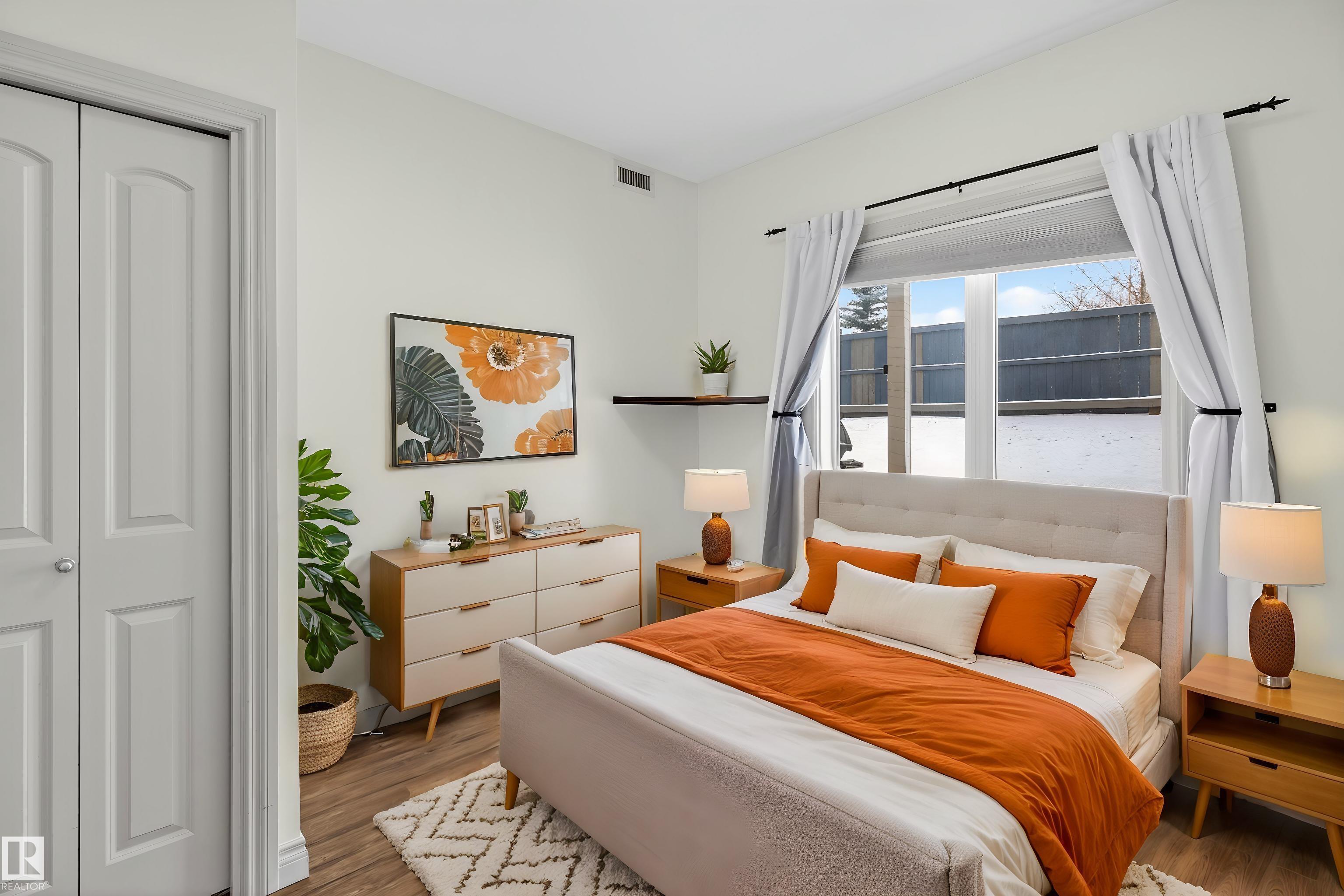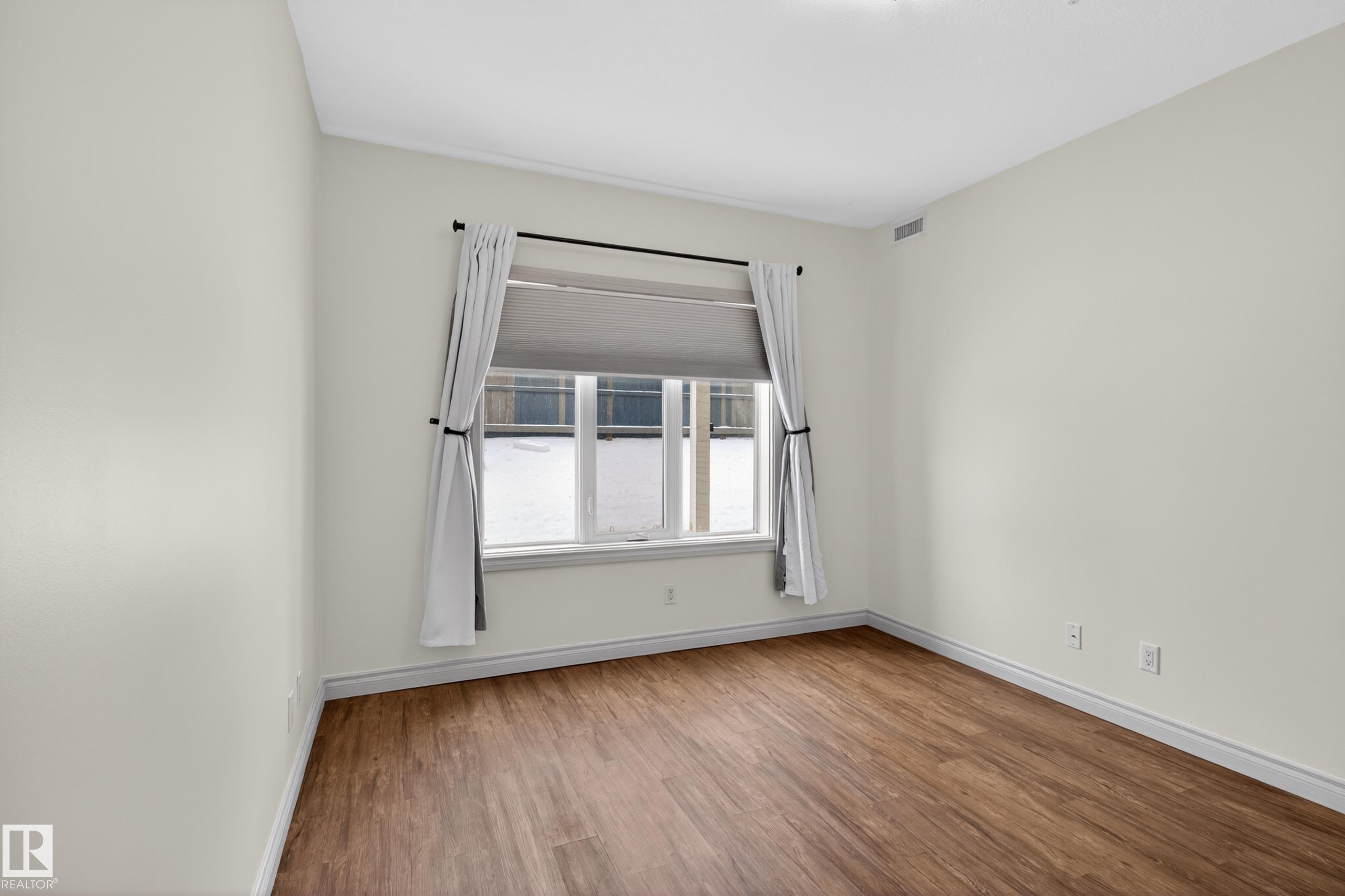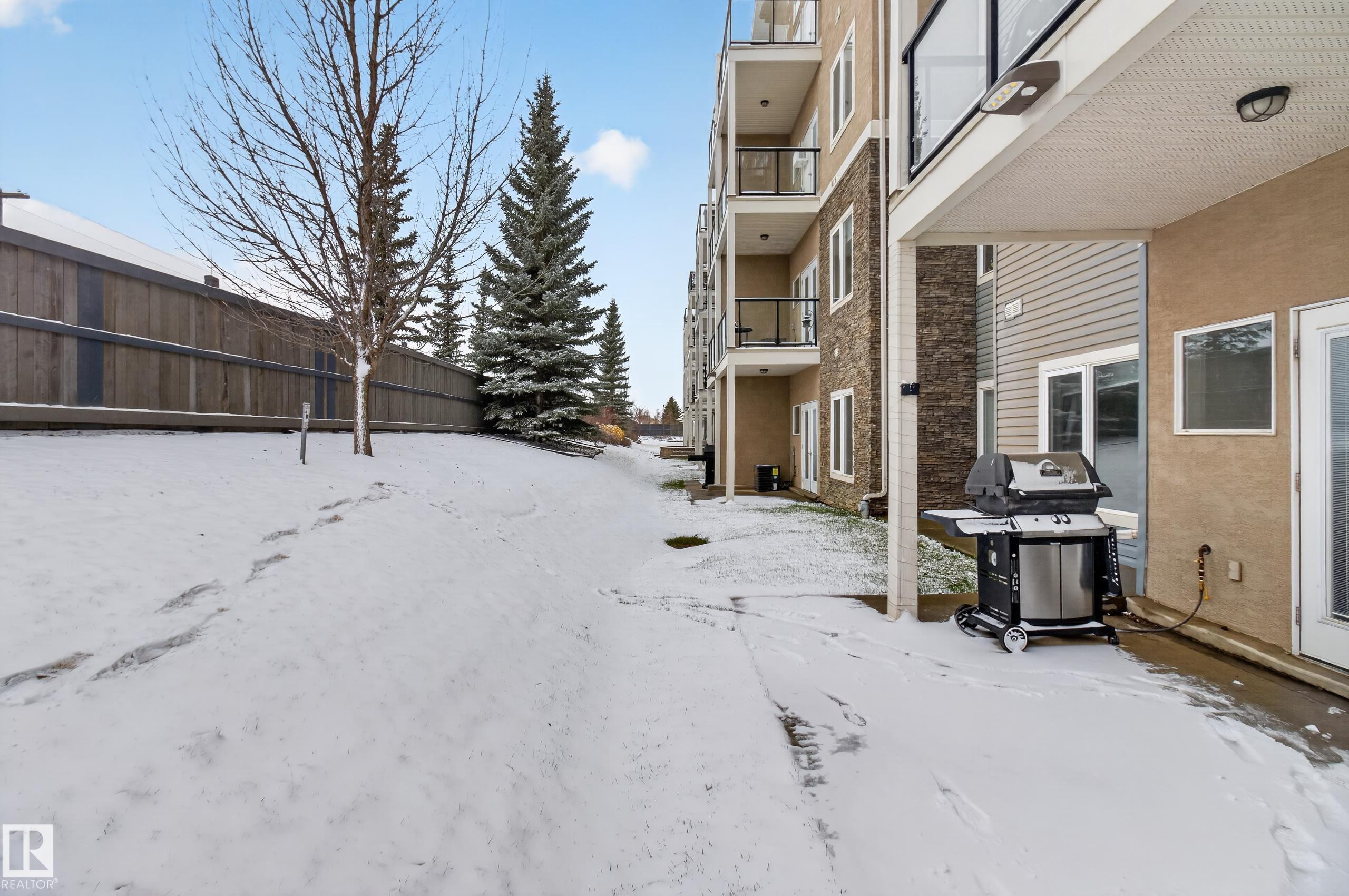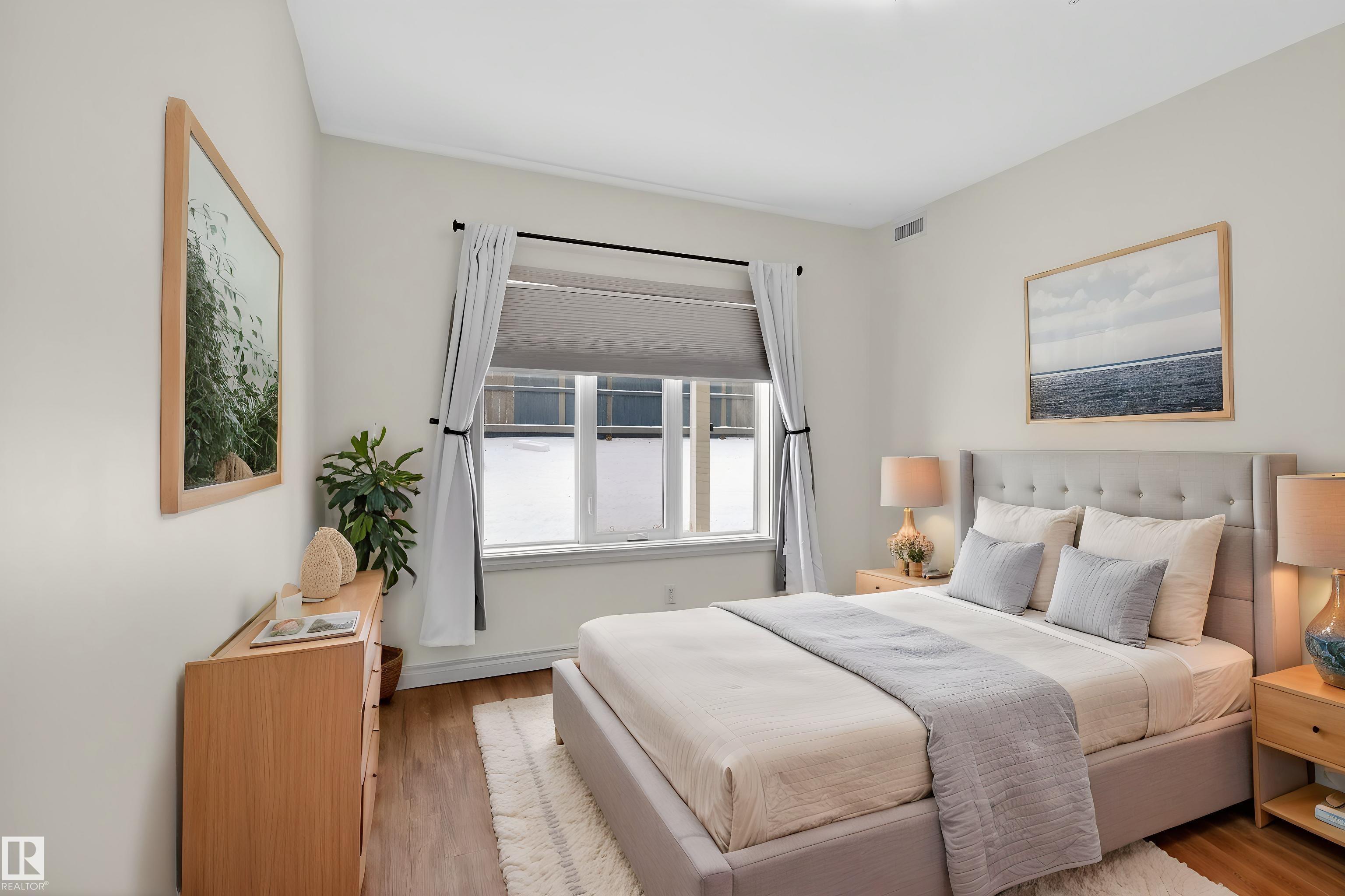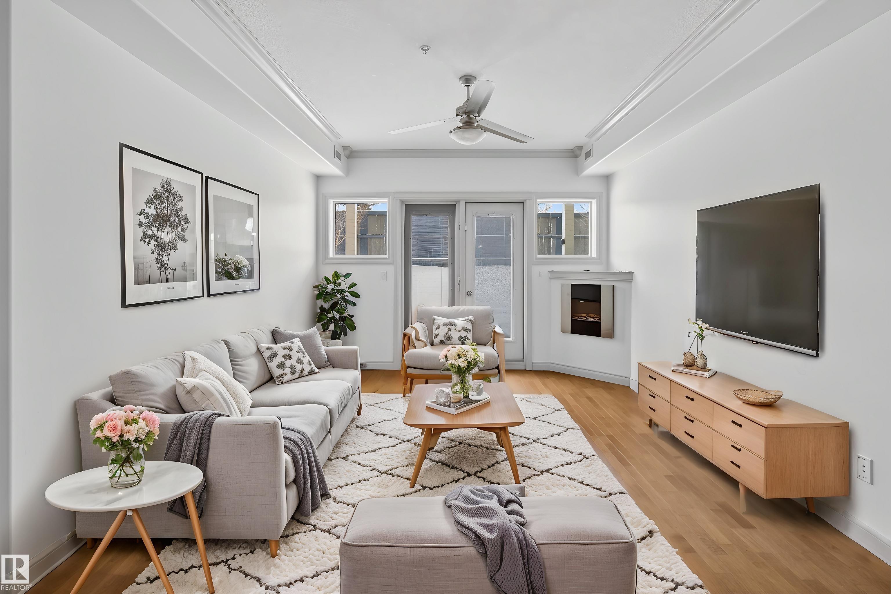 Bright, spacious, and one of the LARGEST layouts in Scona Gardens?this updated 2 BED/2 BATH condo offers exceptional value in a location that puts you right in the centre of it all. Freshly painted w/ hardwood floors through the main living areas and vinyl plank in the bedrooms, the open-concept design features a corner electric fireplace and a comfortable flow to your SOUTH-FACING PATIO backing a gated residents-only green space with natural gas BBQ hookup. The kitchen includes stainless steel appliances and ample counter space, while the primary bedroom offers a walk-in closet and full ensuite. Notable updates include a newer furnace (2026), stove (2025), washer & dryer (2025), microwave (2025), plus central A/C. Underground parking, in-suite laundry, and access to amenities such as a fitness room, guest suite, car wash, bike storage, and workshop add to the appeal. Steps to Whyte Avenue, the Old Strathcona Farmers? Market, the University of Alberta, 99 Street microbreweries, and Mill Creek Ravine.