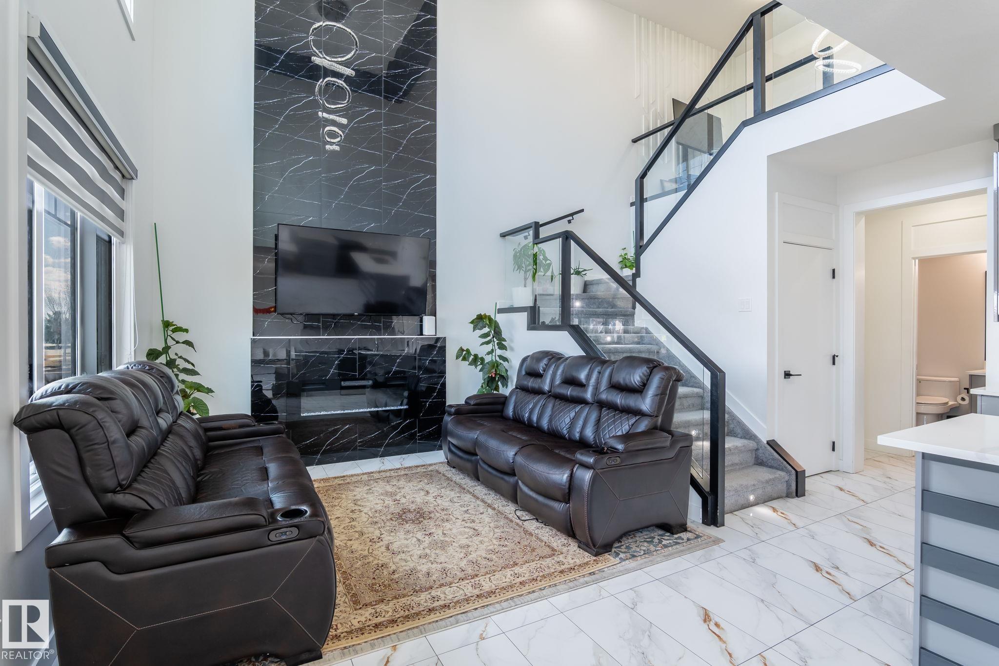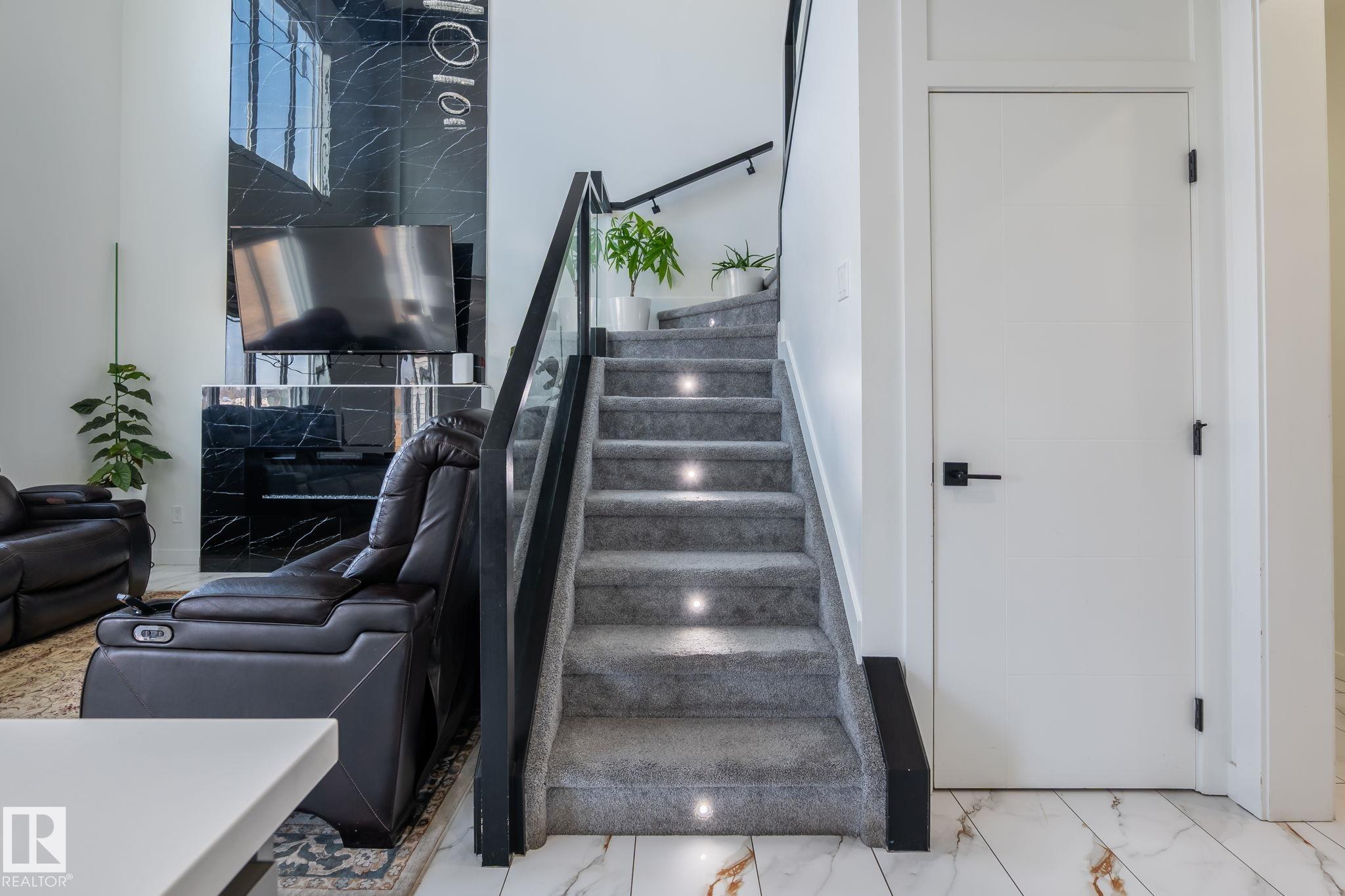 Newer neighbourhood close to established facilities as sports centre,church,parks and off leash dog park-5 BEDROOMS+4 BATHROOMS Fully Upgraded half duplex has main floor bedroom,3 piece bathroom, a modern kitchen with stainless steel appliances,bright cabinets,quartz counter tops,pantry and ofcourse a stunning open-to-below living area with featurewall/ electric fireplace.Spotless tiled floor to give stunning always clean look.Upstairs include a bonus room with feature wall and LED lighting, a stylish primary bedroom with 5 piece bathroom /soaker tub,dual sink,walk in closet, two additional bedrooms, full bath, and convenient upstairs laundry,metal railing.Fully finished basement has a SEPRATE ENTRY ,Huge living area with open kitchen,one spacious bedroom and seprate laundry room for future additional laundry.All 3 floors are 9ft high,Closet organizers,Double Front HEATED garage ,too many features to count and YES easy accessible to EIA,NISKU,50 ST & SOUTH COMMON